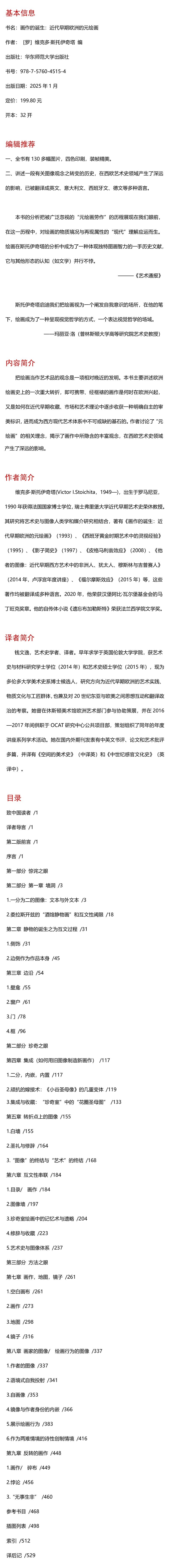 把绘画当作艺术品的观念是一项相对晚近的发明。本书主要讲述欧洲绘画目前的一次重大转折,即可携带、经框裱的画作是何时在欧洲兴起,又是如何在近代早期收藏、市场和艺术理论中逐步收获一种明确自主的审美标识,进而成为西方现代艺术体系中不可或缺的基石的。作者讨论了“元绘画”的相关理念,揭示了画作中所隐含的丰富观念,在西欧艺术史领域产生了深远的影响。