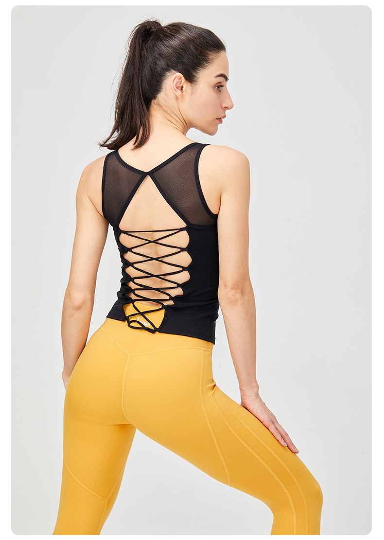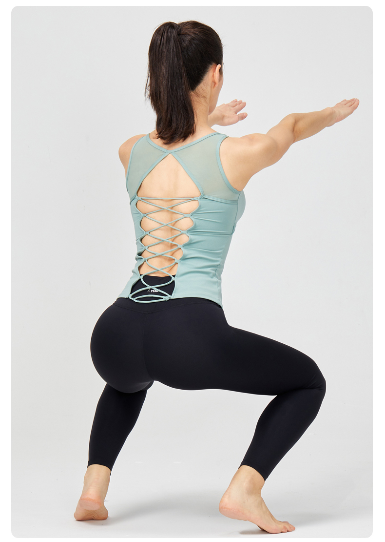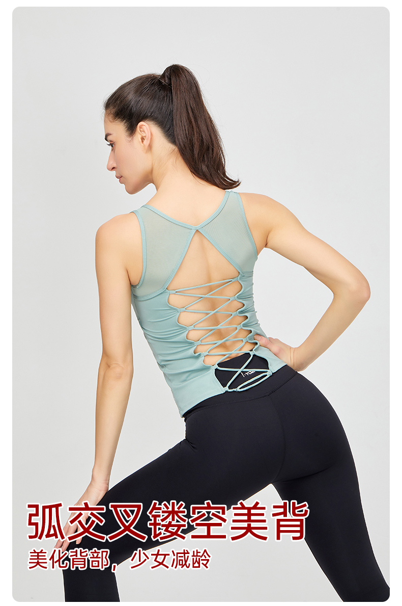 IYOGA瑜伽背心夏女士时尚交叉绑带美背外穿小码透气 亲肤莱卡B051