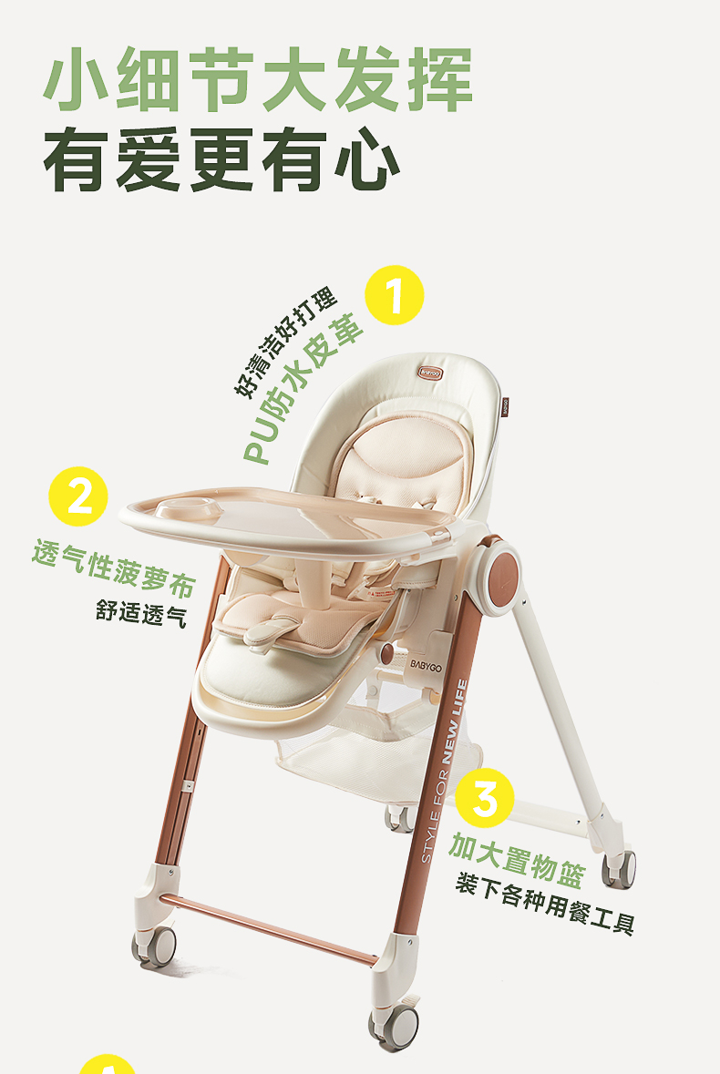 BABYGO果壳餐椅宝宝吃饭餐桌椅婴儿家用可坐躺便携多功能学坐椅