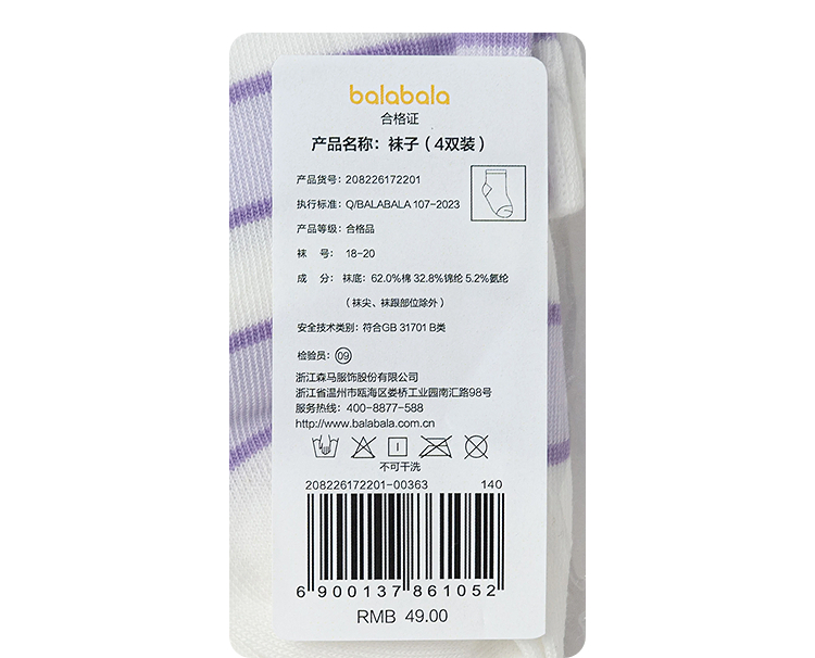 巴拉巴拉儿童袜子夏季新款网眼透气男女童短袜柔软棉弹舒适四双装