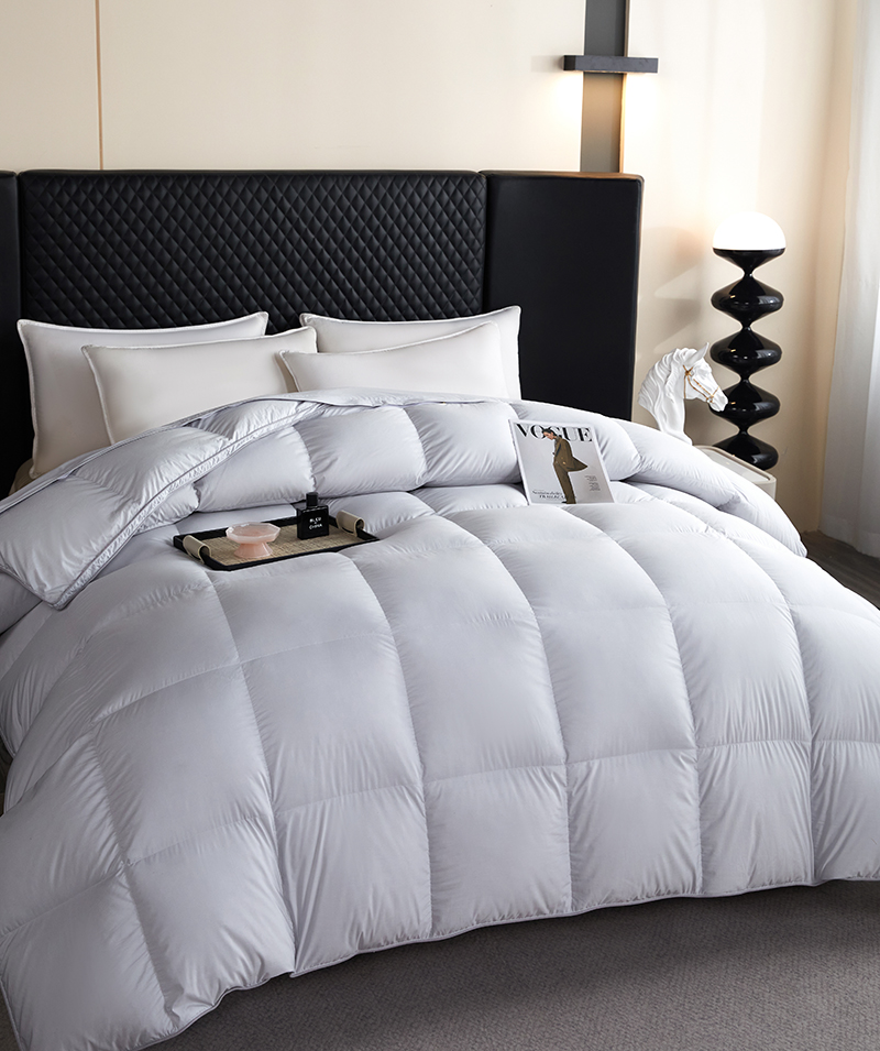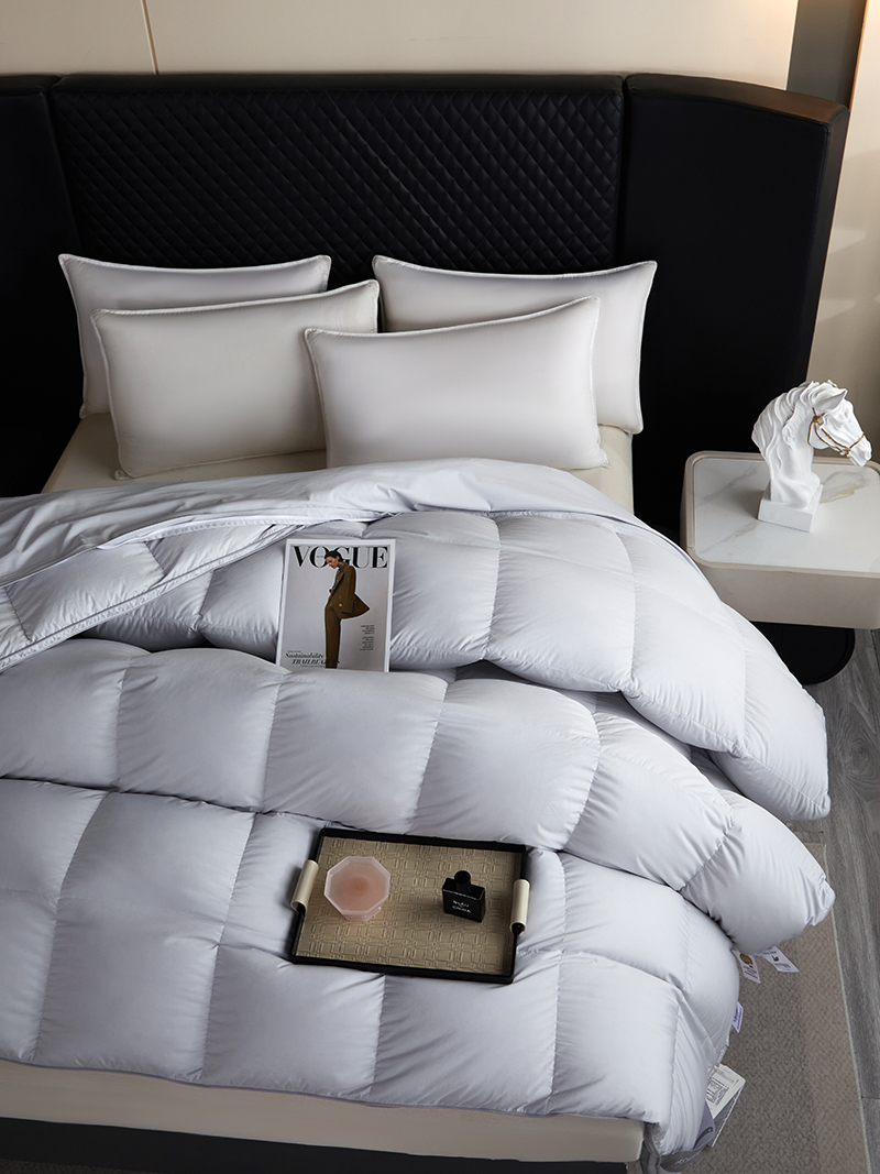 羽绒被质轻、柔软、舒适度高,贴合性好,使身体感觉更加温暖和舒适。羽绒被缝制为独立方格,不是传统絮片,所以感觉身体与被子融为一体,生活品质息:贴身性最佳。大提升啦!