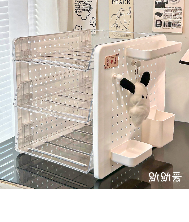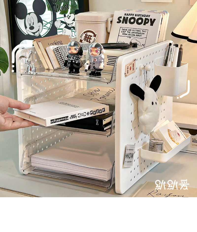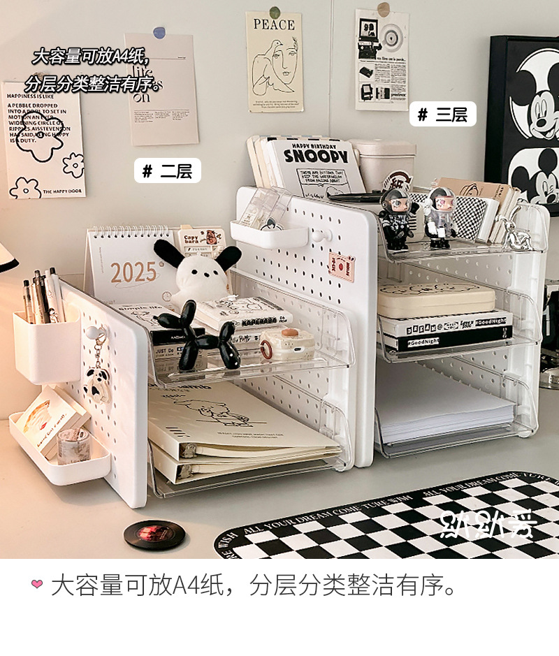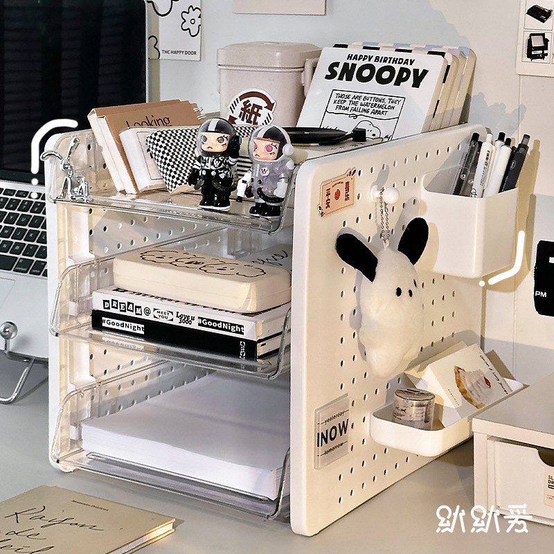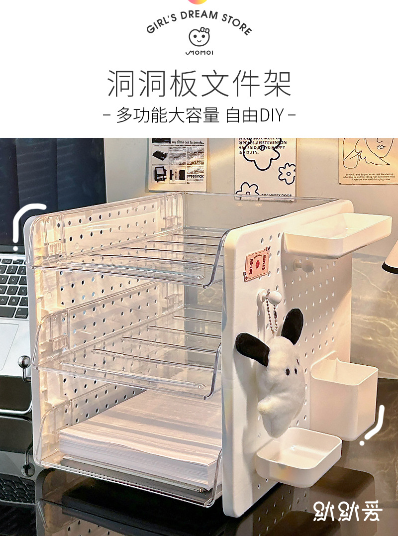 【多功能大容量!洞洞板文件架】桌面收纳架女生工位改造神器文具A4纸办公桌文件多层置物架。ry