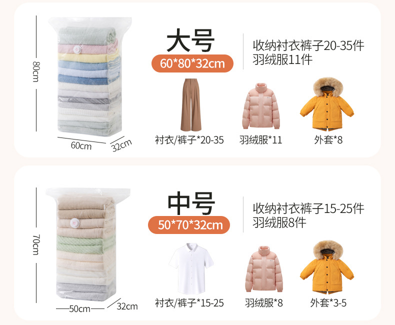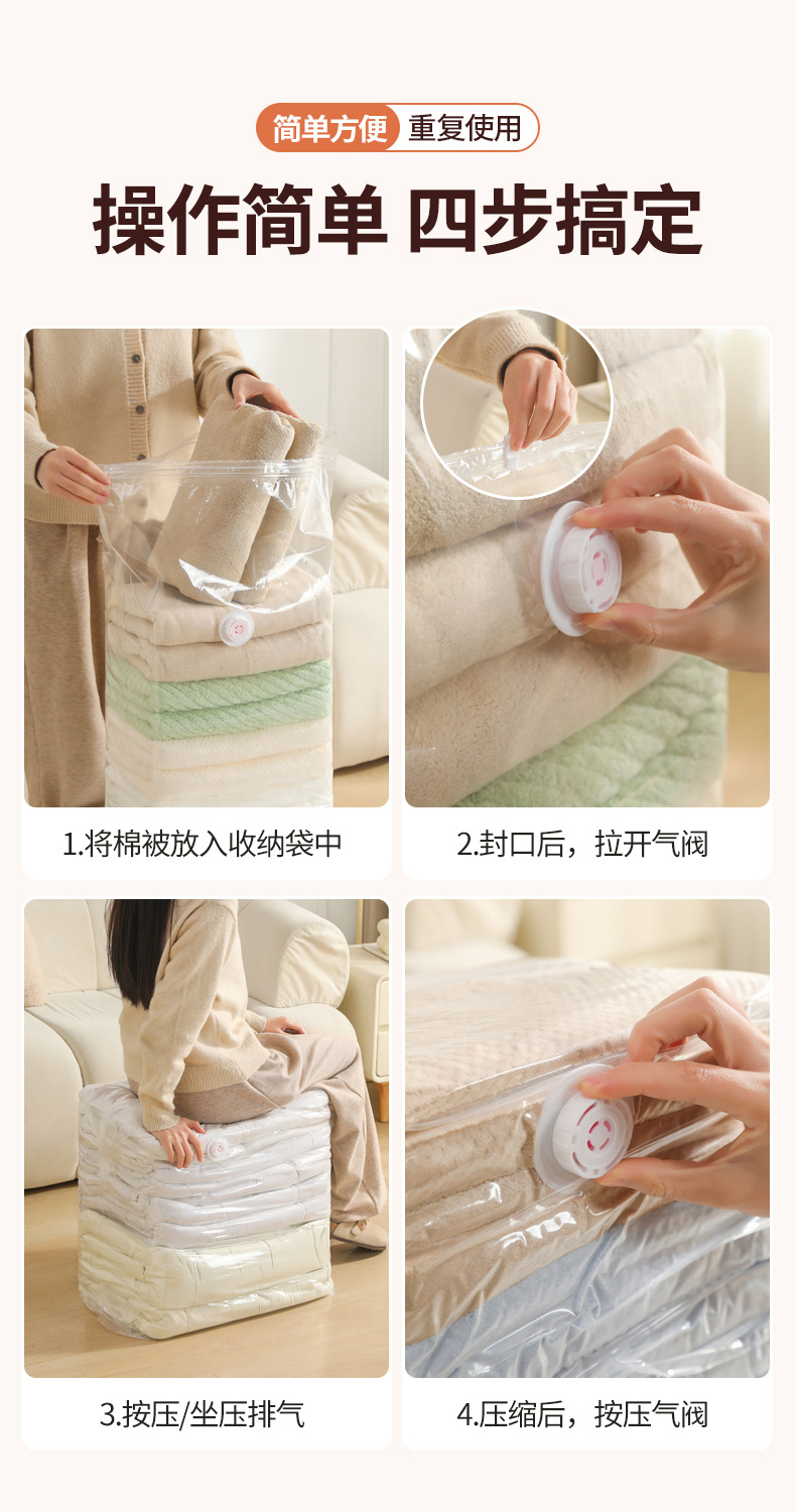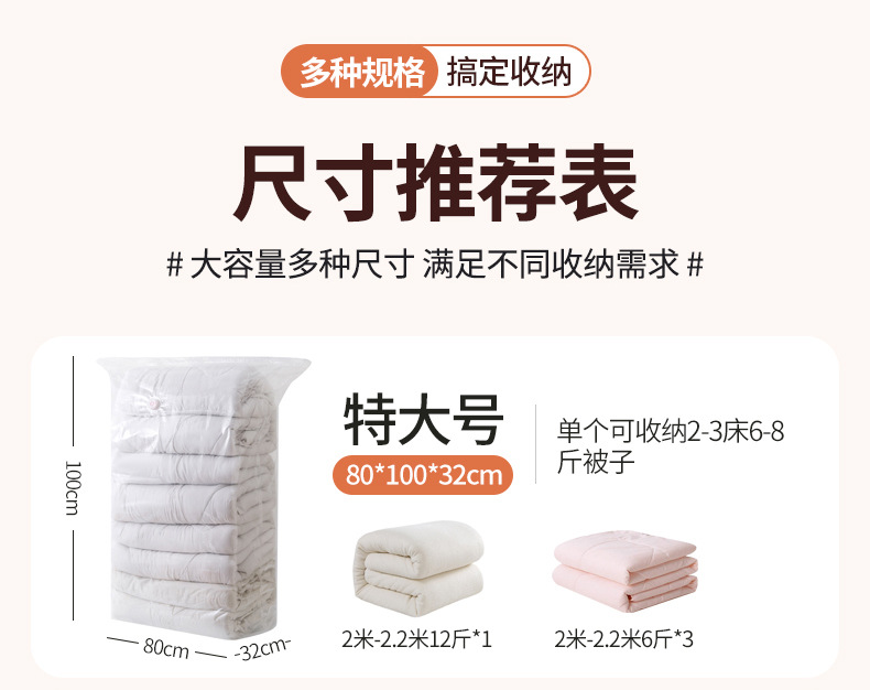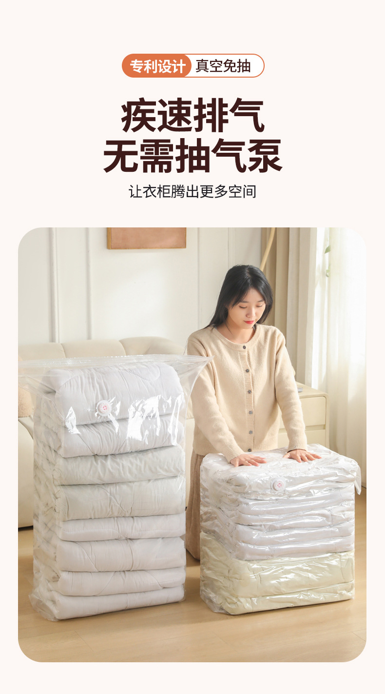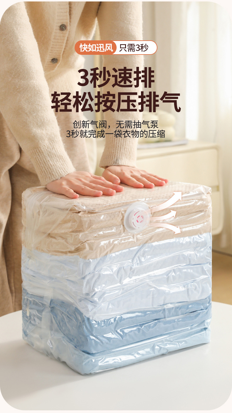 【立体式按压免抽气】加厚免抽气立体式真空压缩袋收纳袋衣服被子羽绒服专用袋大号。rh