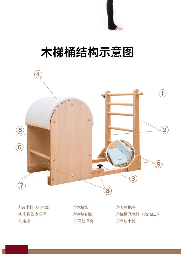 《单件免邮》一恋瑜伽普拉提梯桶矫正器【木梯桶 (PLB03)】带小板
