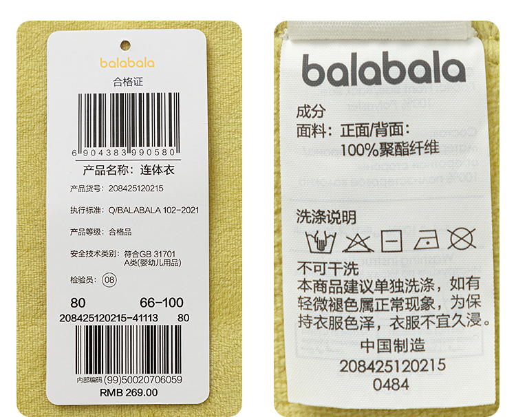 巴拉巴拉balaOne宝宝连体衣新生婴儿哈衣2025新款儿童冬装加绒萌