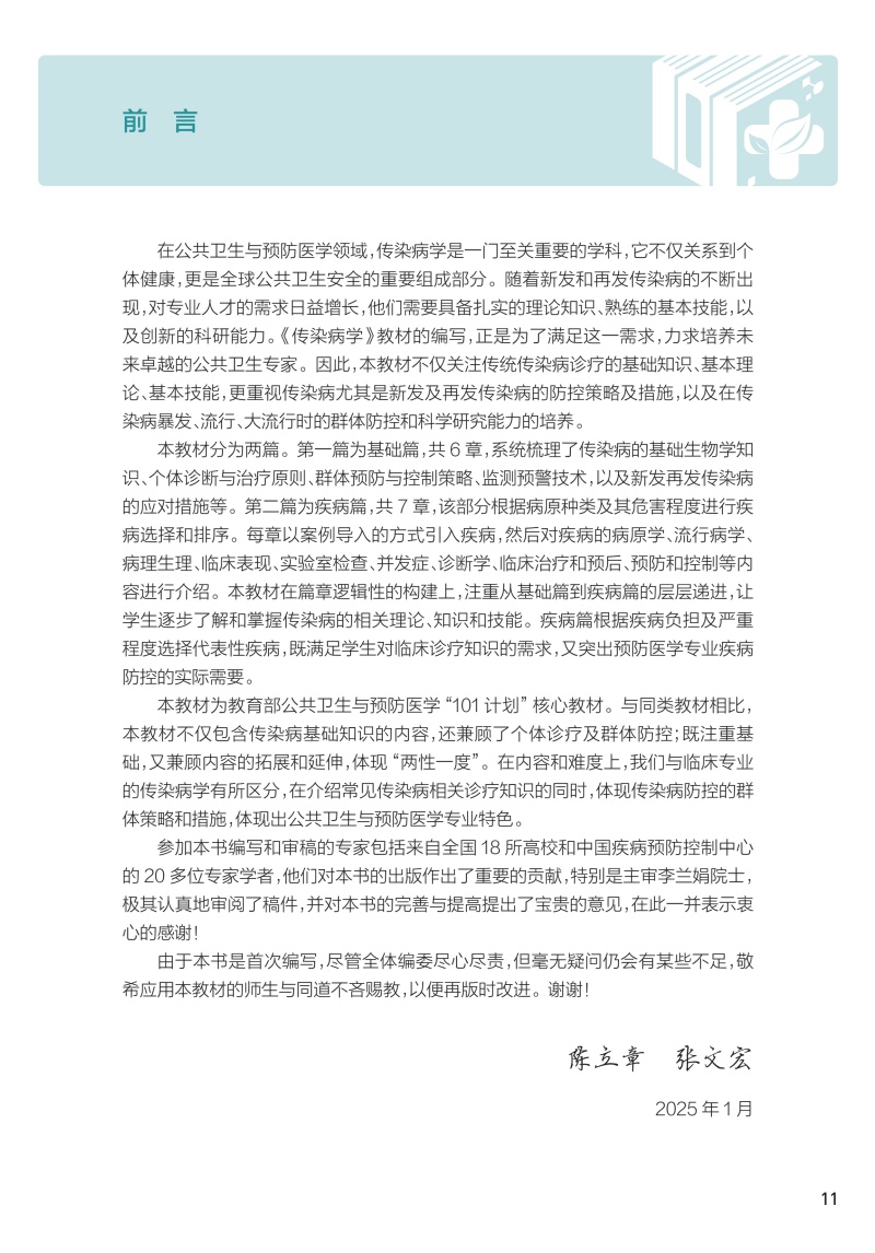 传染病学 十四五规划教材全国高等学校教材 陈立章 张文宏 主编 供预防医学类专业用 学历教育教材本科预防医学 人民卫生出版社