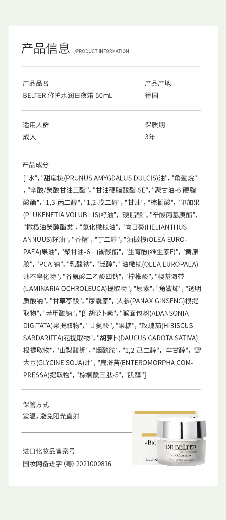 BELTER 修护水润日夜霜 50mL