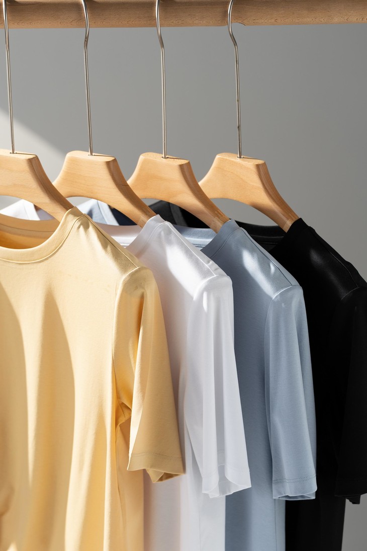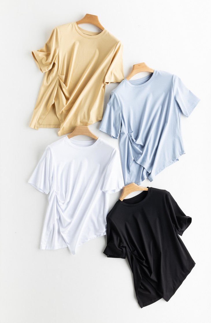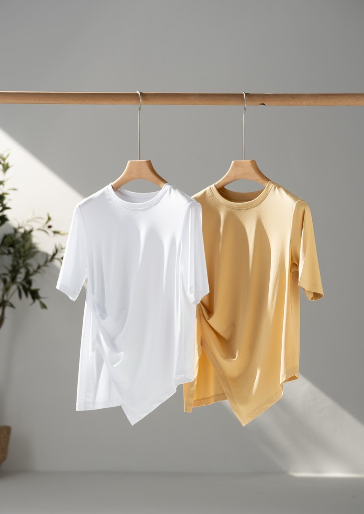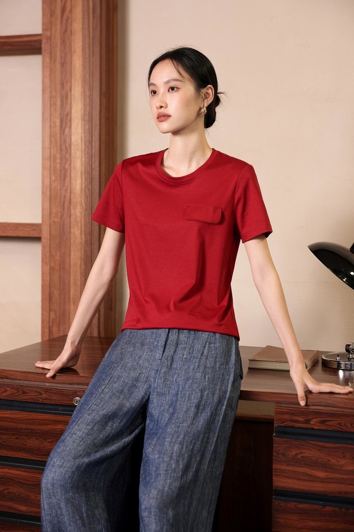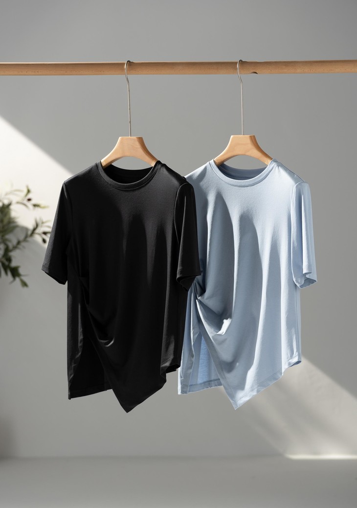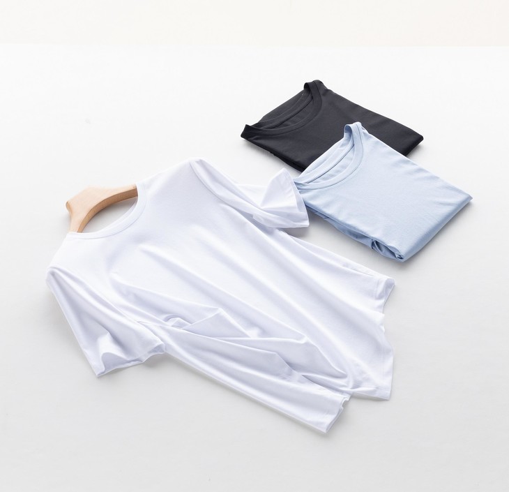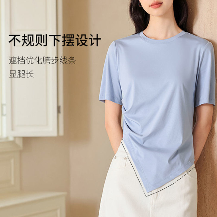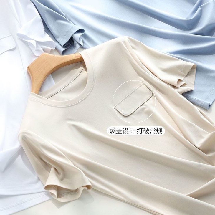普通T恤特别容易旧,而且洗几次就变得松松垮垮的。 穿起来让人显得没气质,给人一种大妈的既视感。 同样是T恤,有质感的穿起来立马就不一样↓ T恤中的桑蚕丝有多好? 它富含18种氨基酸成分,和人体肌肤有天然的亲近性,不易导致皮肤敏感。 织成的面料还自带光泽感,质感柔和,垂坠感也超好!