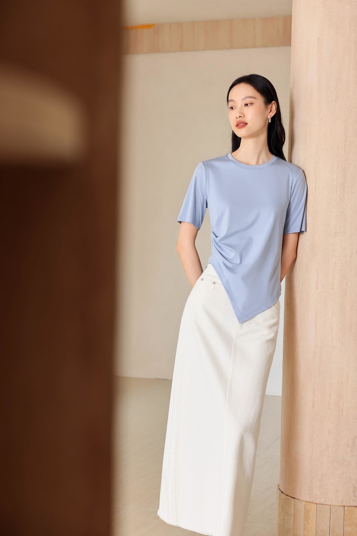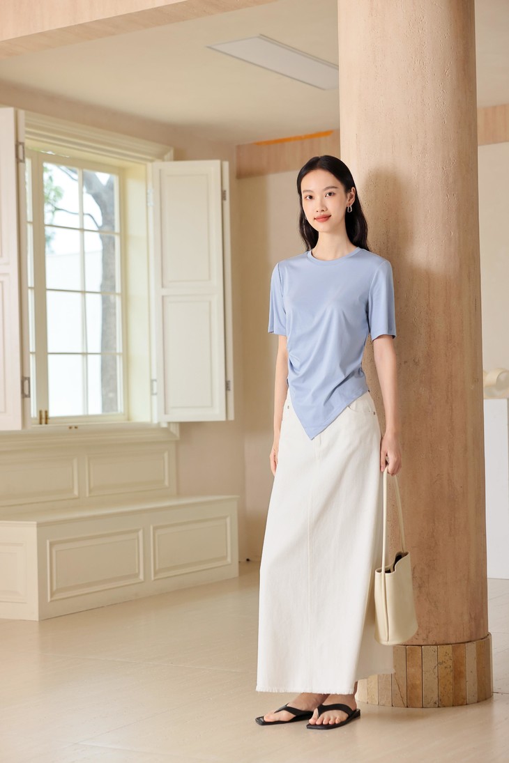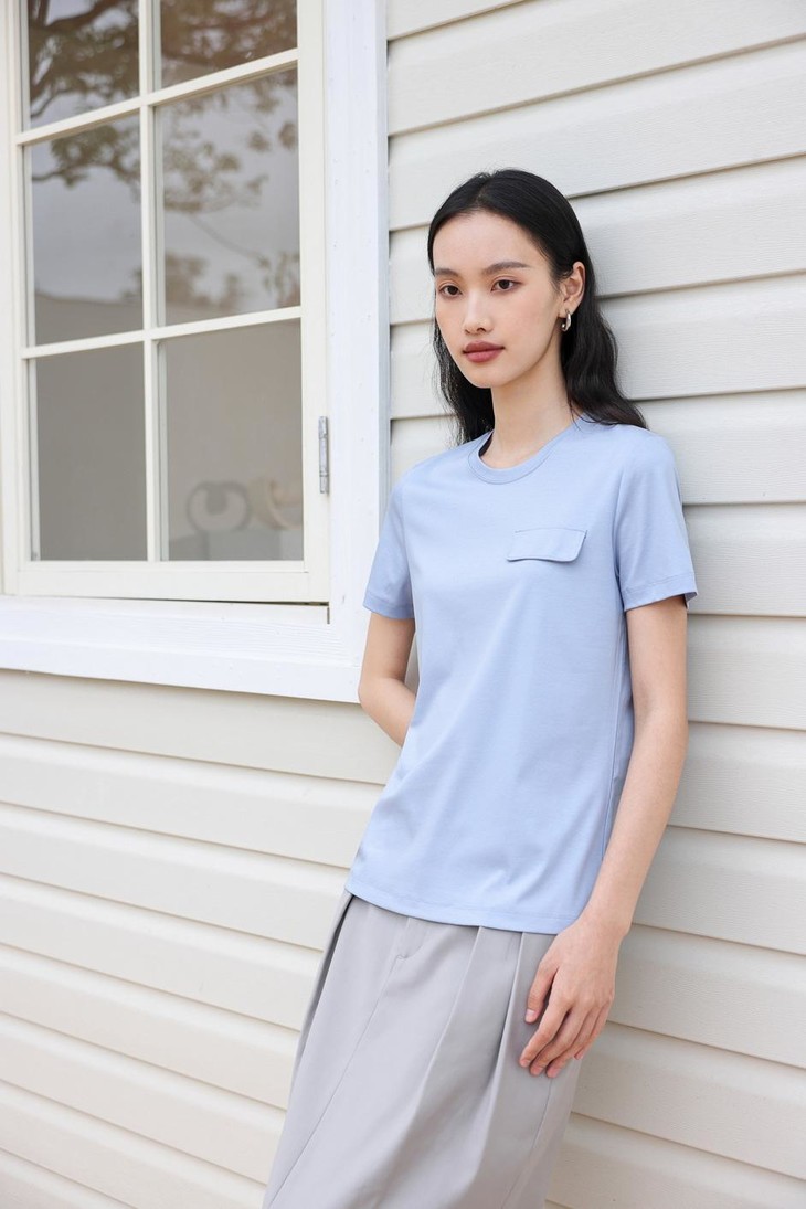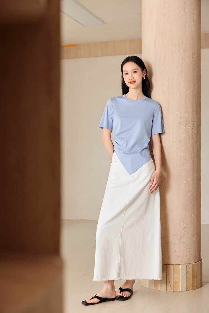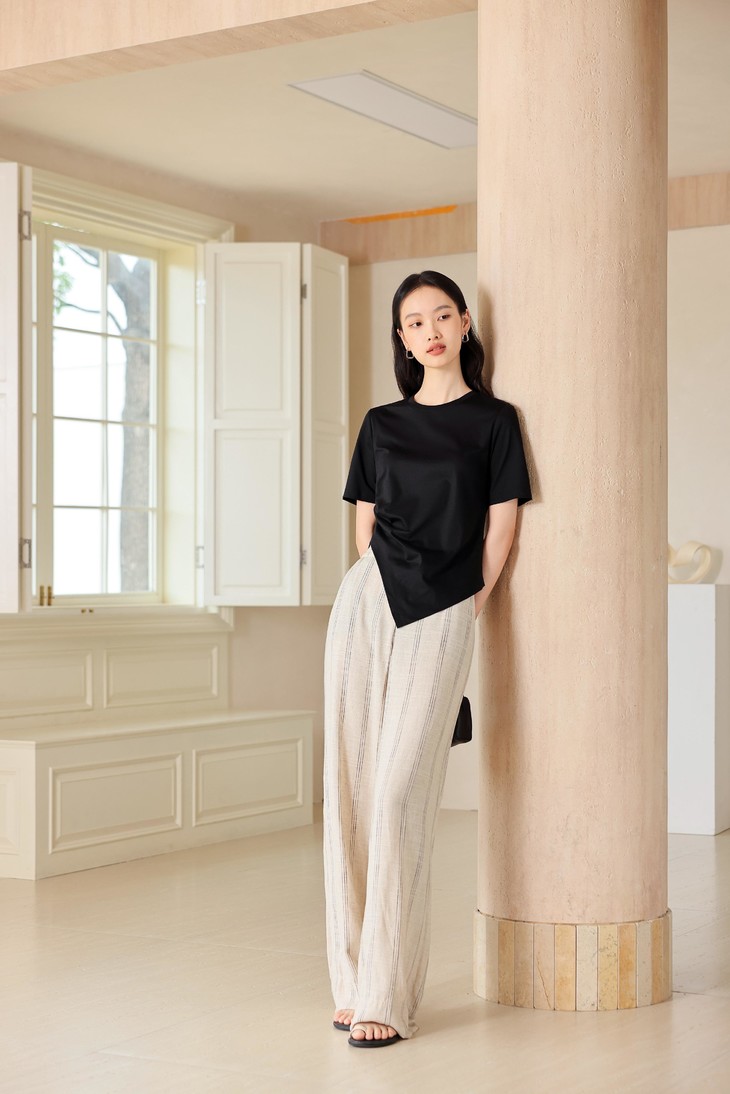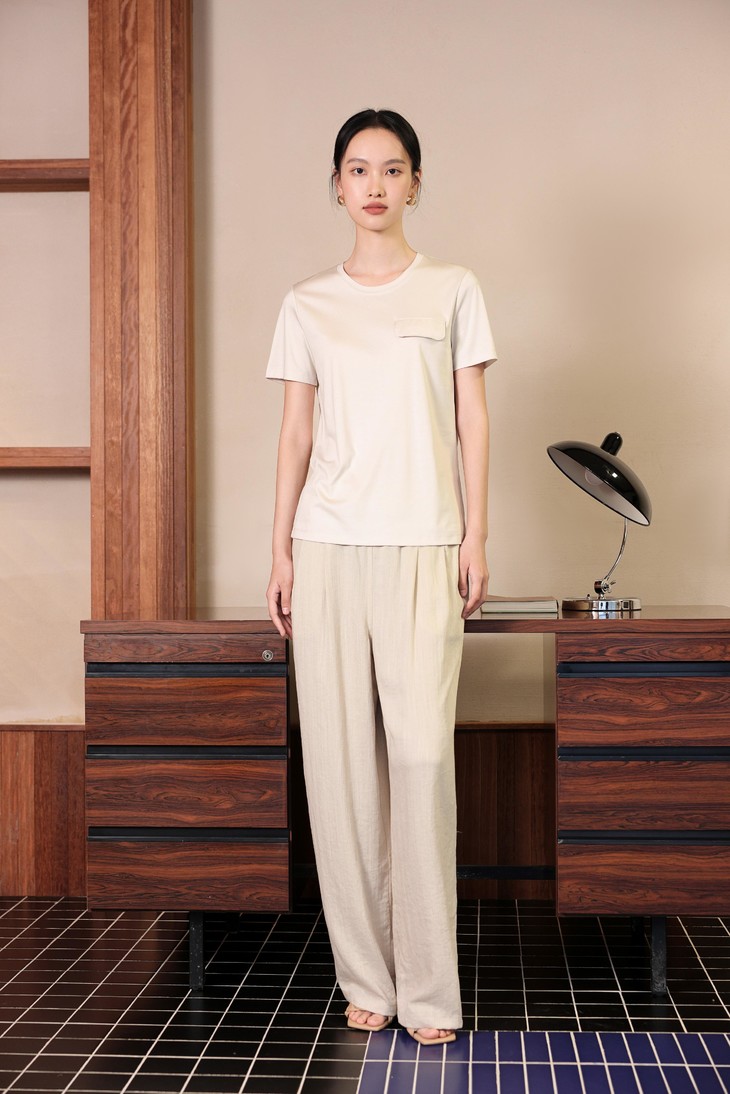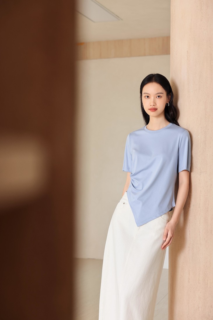 好的质感,一定是来自剪裁。 一件衣服穿上身能不能凸显人的气质,都要看剪裁。 这件桑蚕丝T恤造型挺括有型,既不会紧紧贴着身体,也不会太松垮,穿起来简约大方,清新减龄。