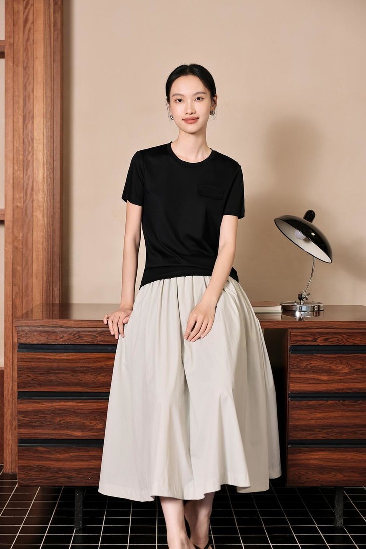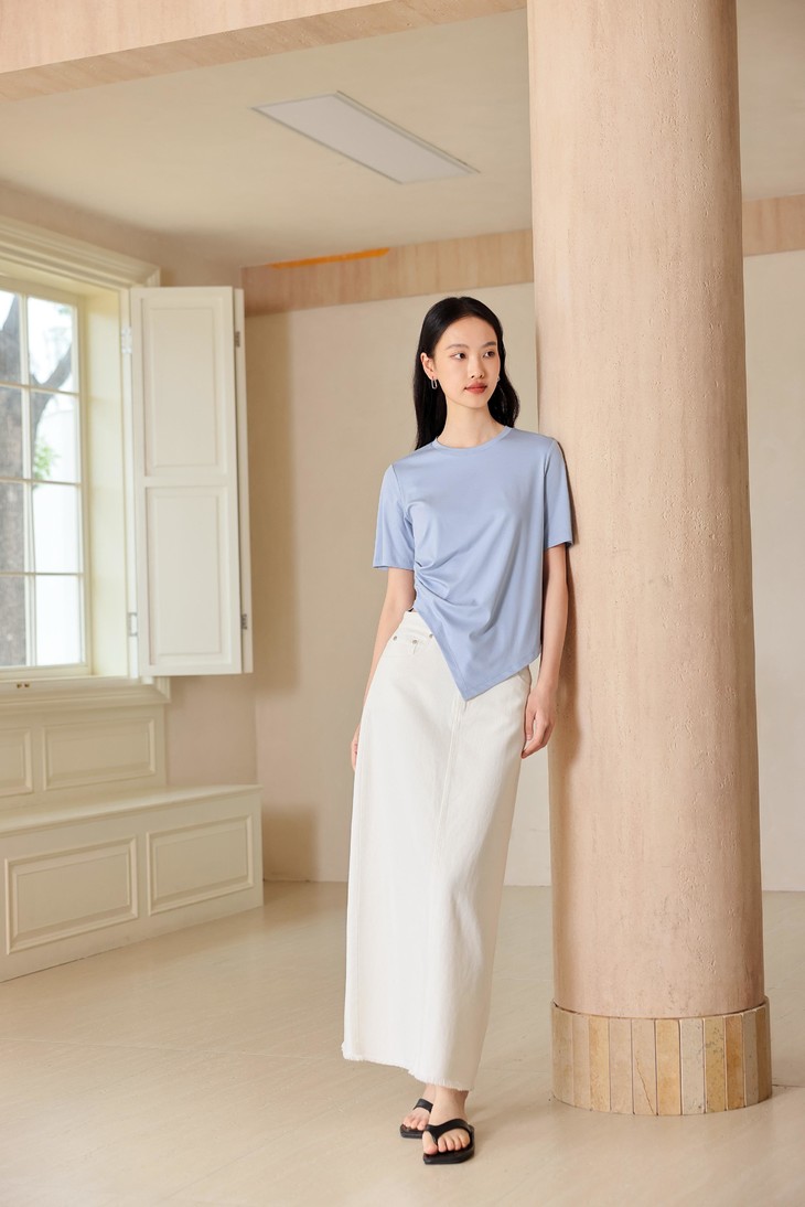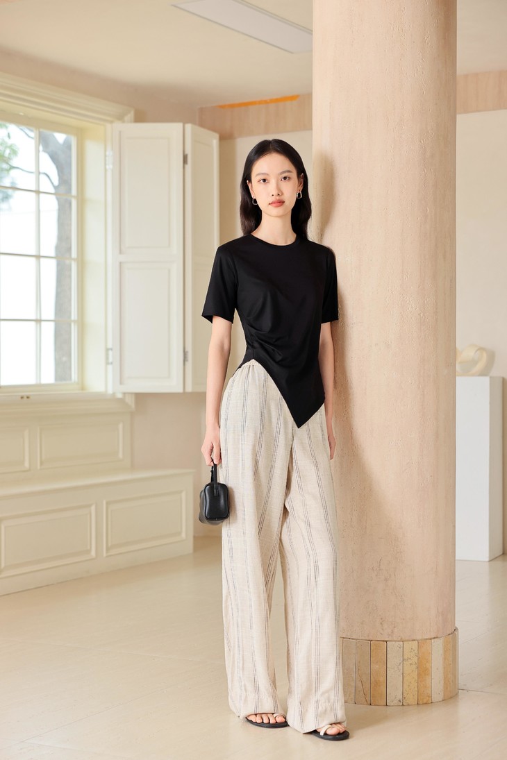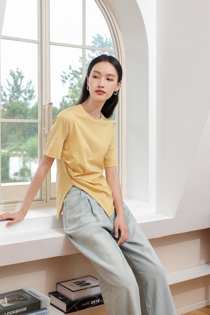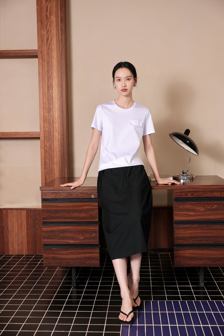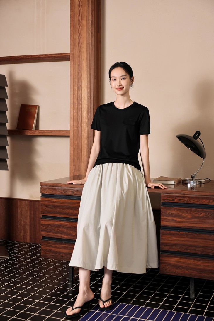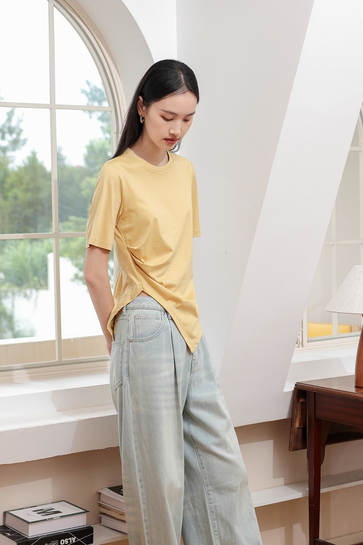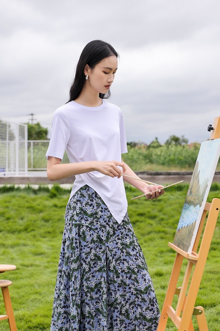 好的质感,一定是来自剪裁。 一件衣服穿上身能不能凸显人的气质,都要看剪裁。 这件桑蚕丝T恤造型挺括有型,既不会紧紧贴着身体,也不会太松垮,穿起来简约大方,清新减龄。