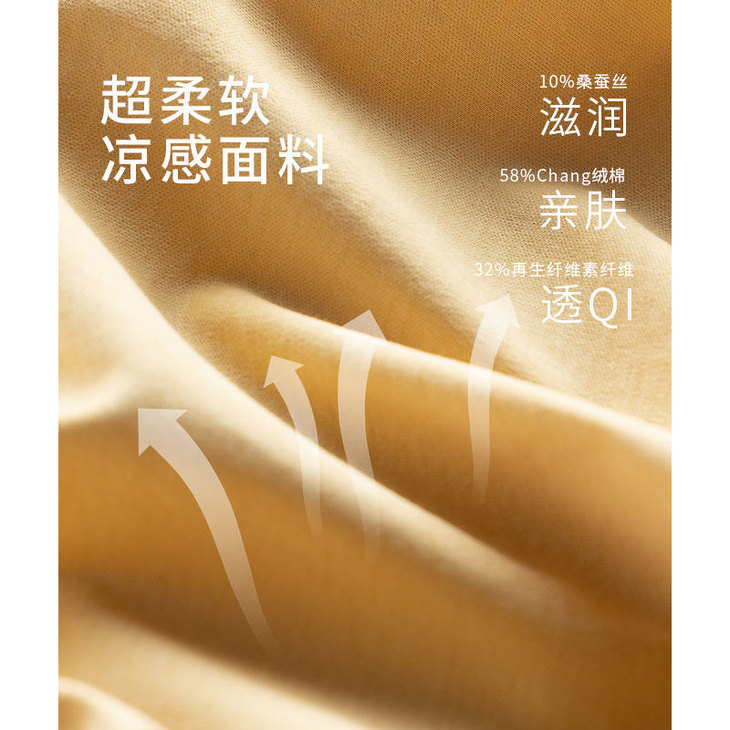 桑蚕丝优秀的天然的吸湿能力,还能淡化肤色,滋养肌肤,温柔贴近每一寸肌肤,舒服到穿上就不想脱下! 既有莫代尔的顺滑舒适感,还有运动衣的透气性,穿起来贼舒服↓