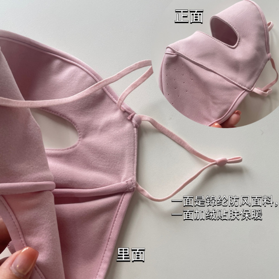 一点不担心太薄太冷冻脸的问题! 防风防冻脸而且戴上去一点也不闷 鼻子那有两排透气孔 戴眼镜的宝子们也不会担心 眼镜起雾和嘴巴那里湿哒哒的了!