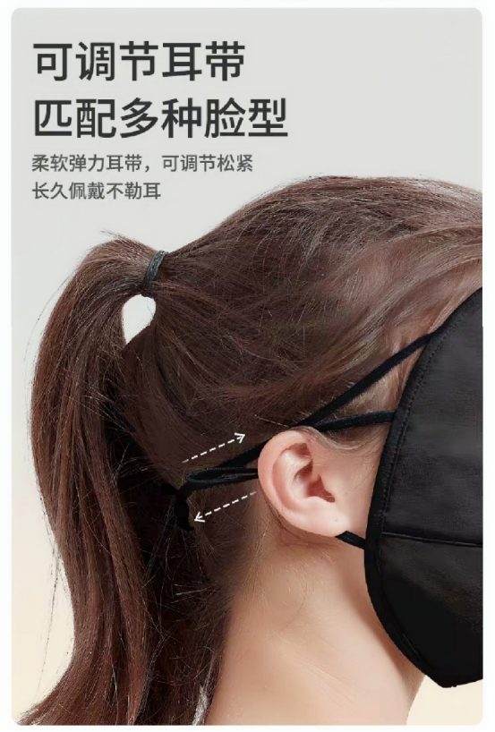 3D立体剪裁,大空间设计, 鼻下有隐形开口,不勒耳朵,不憋闷, 还带有额面软胶骨支撑, 在修饰脸型的同时还是个显脸小神器~