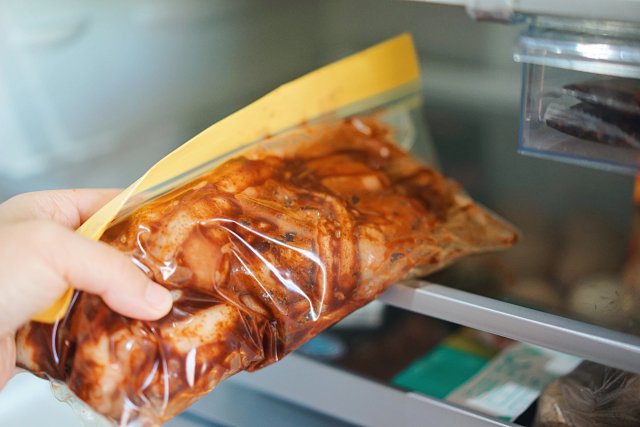 放入2勺孜然粉2勺生抽2勺料酒1勺蚝油半勺胡椒粉2勺蒜蓉辣酱能吃辣的再来2勺辣椒粉 腌制30分钟 烤箱200度,正反面各10分钟