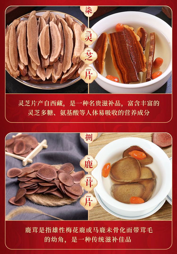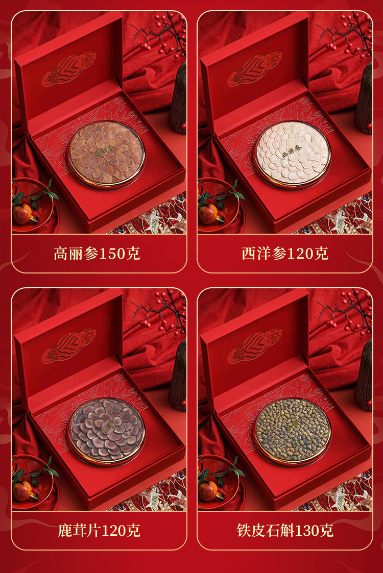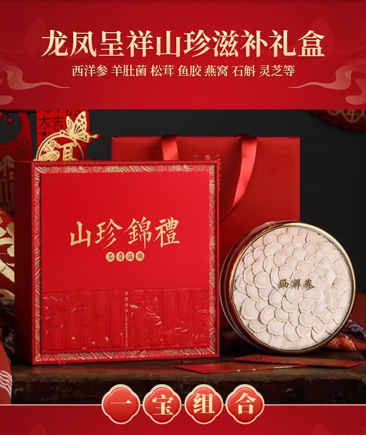 【西洋参高丽参铁皮石斛野生灵芝鹿茸礼盒】