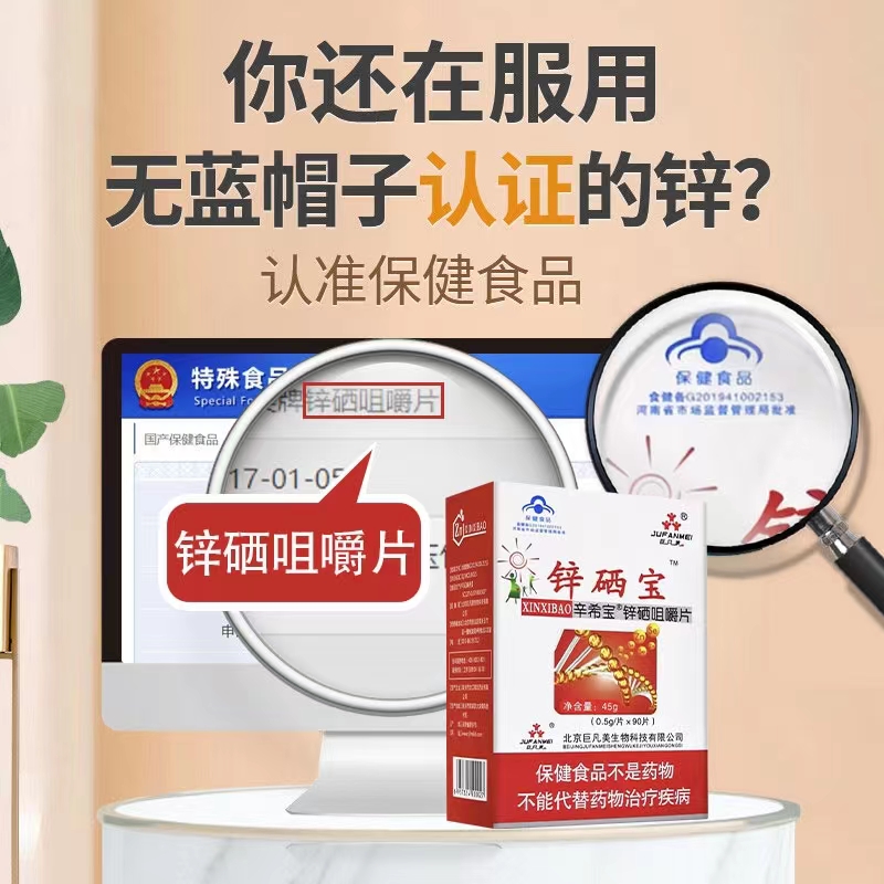 锌硒宝锌硒咀嚼片补充锌硒成人男女儿童及孕妇补锌补硒90片/盒