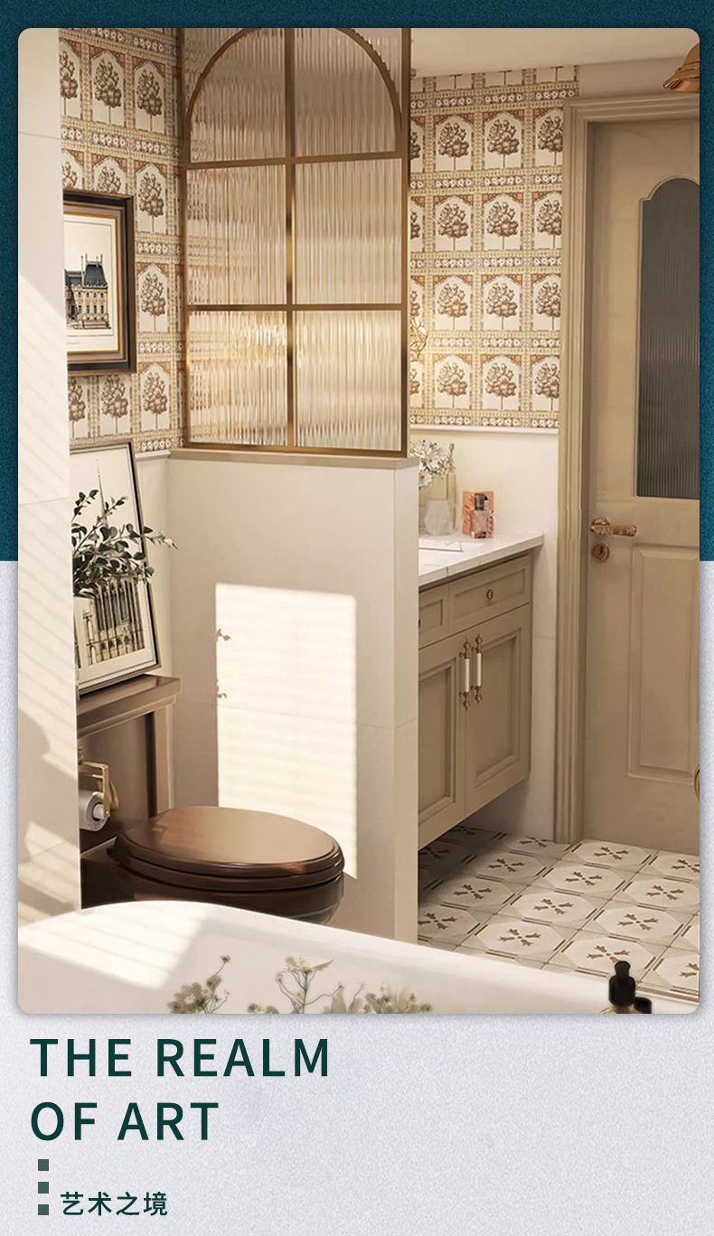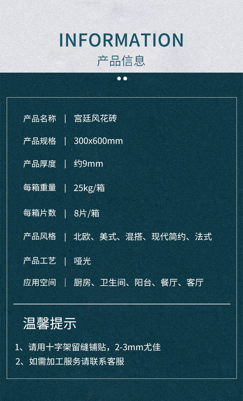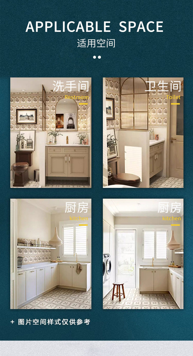小复古卫生间厨房花砖阳台赤贫墙砖风300600地砖艺术厕所瓷砖法式 商品图4