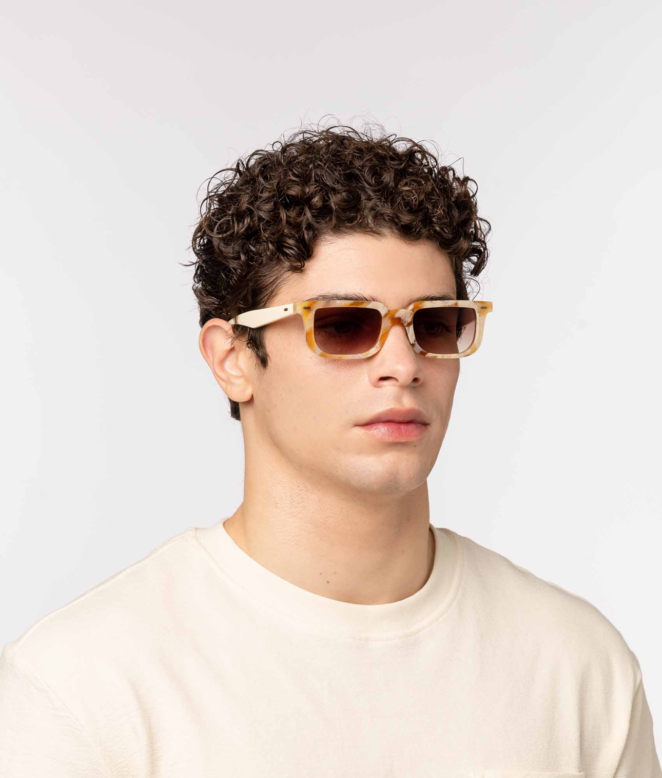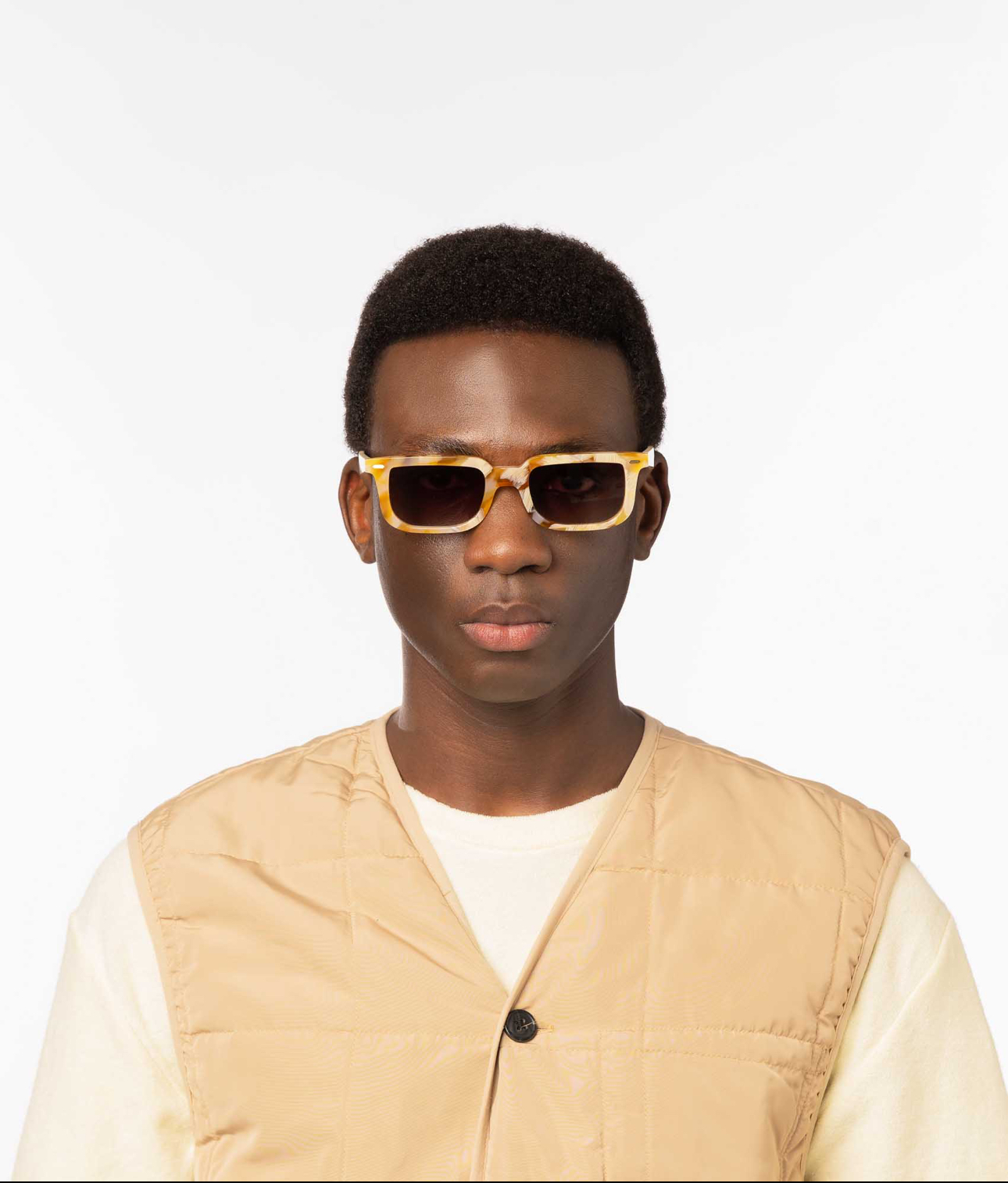 TYNVIE V领荷叶边褶皱衬衫 - 杏色