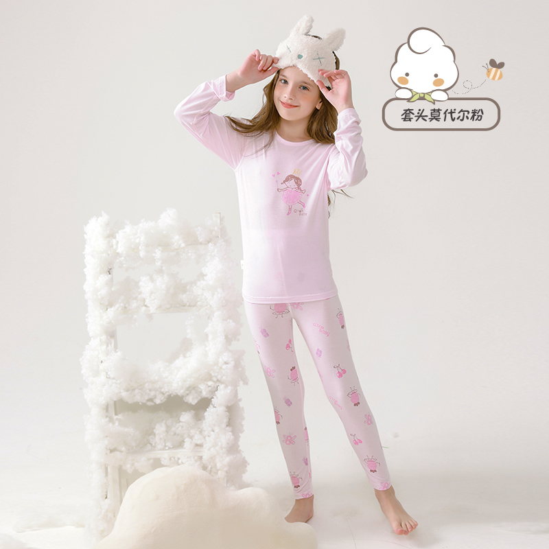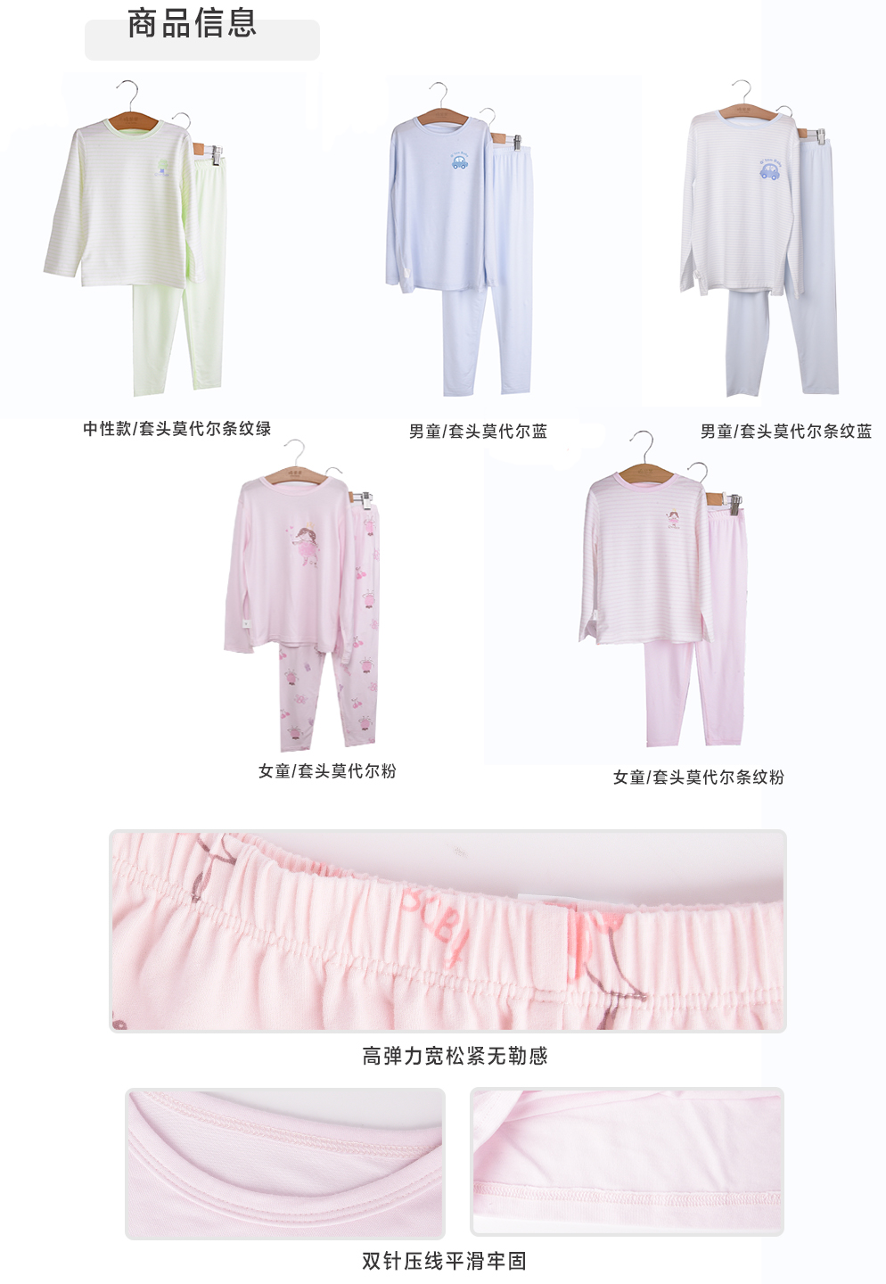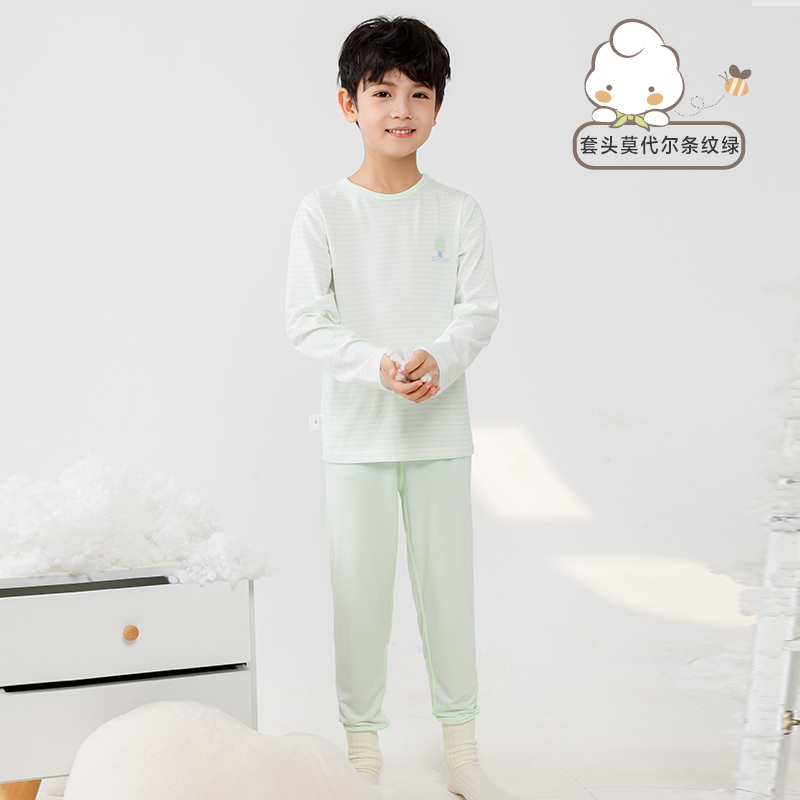 棉果果商场同款春季新品条纹兰精莫代尔套头套装140-160尺码女童内衣家居服睡衣套装2件套M121302423180