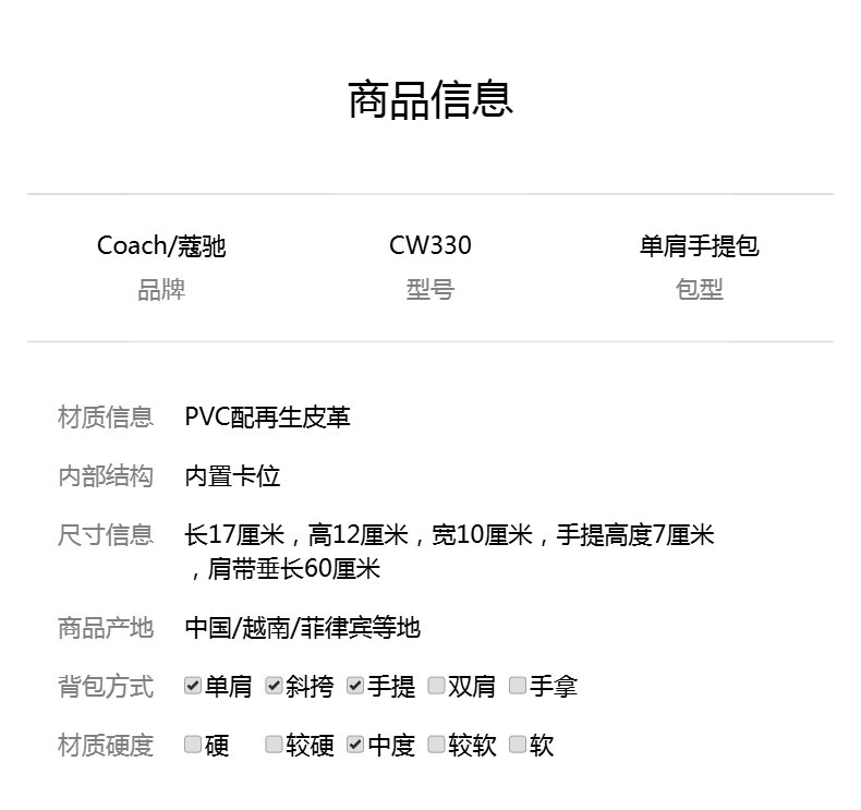 COACH 奥莱款女士PVC配皮单肩斜挎手提包CW330SVXCU