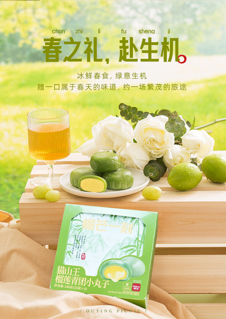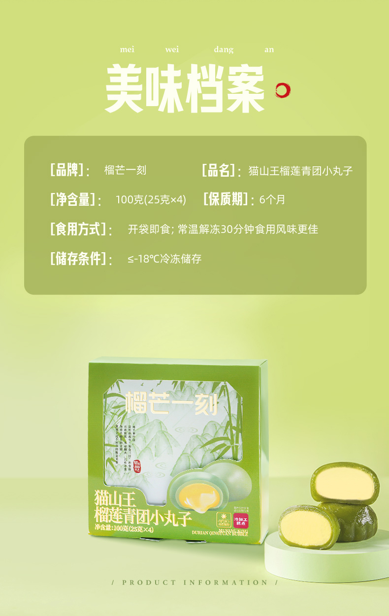 季节限定--猫山王榴莲青团小丸子一口团--100g/盒 | 榴芒一刻