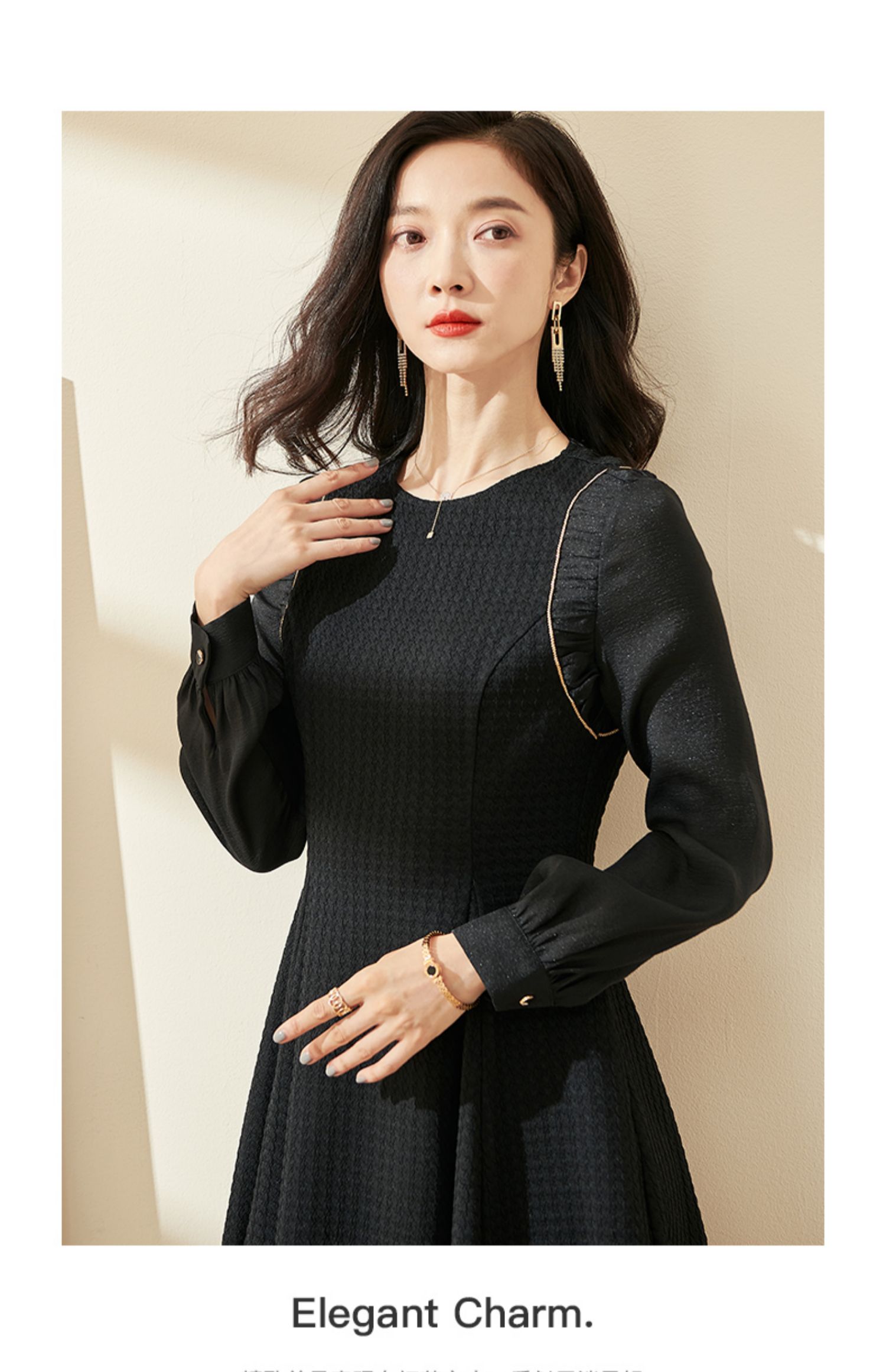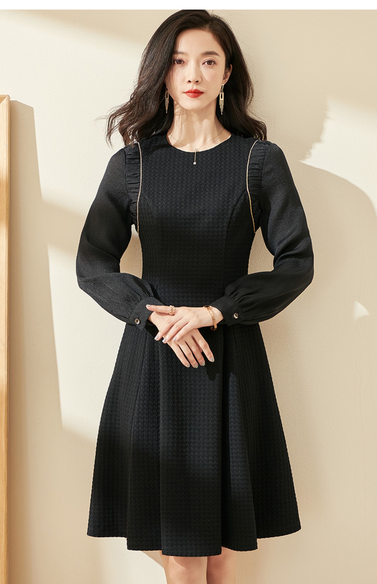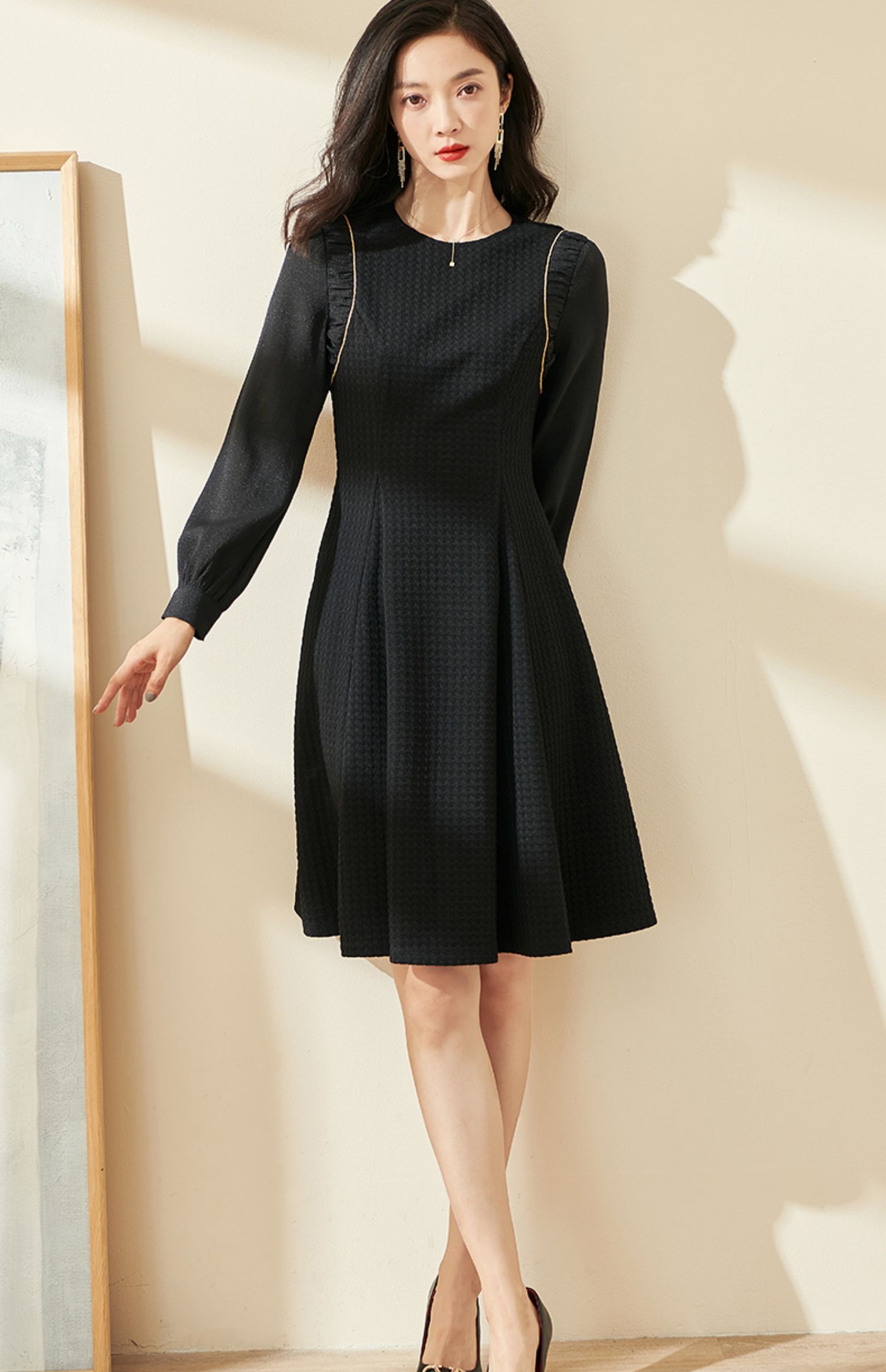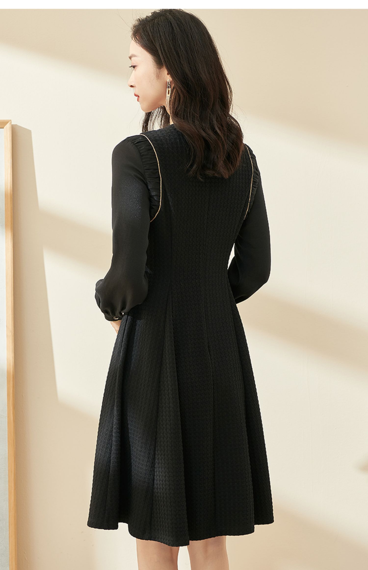 剩S/M/XL 米思阳2024秋季新款气质简约百搭黑色连衣裙高腰显瘦A字裙0037