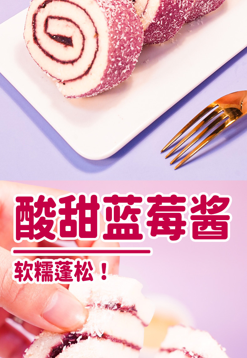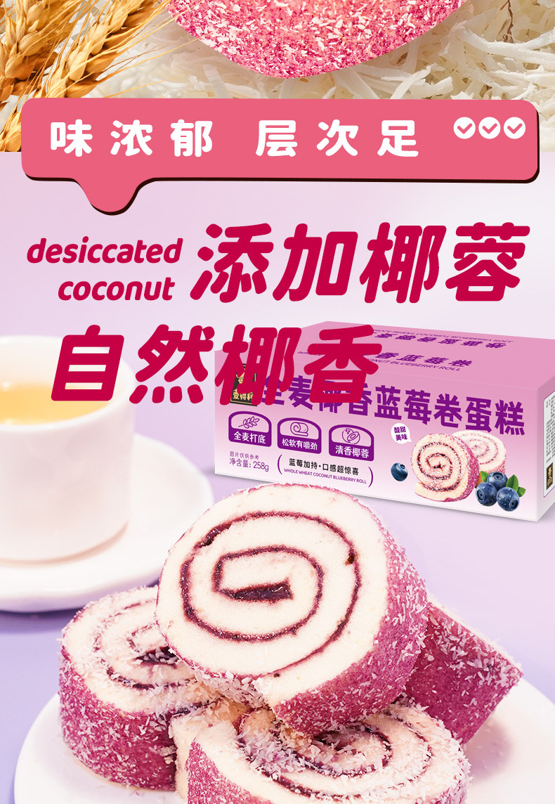 【全麦椰香蓝莓卷】一口解锁果香与椰香的双重惊喜,酸甜内陷柔软清香,绵润松软口感,蛋糕早餐代餐面包瑞士卷饱腹零食品整箱QQ