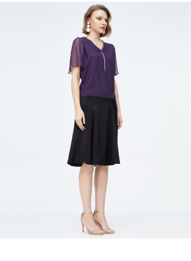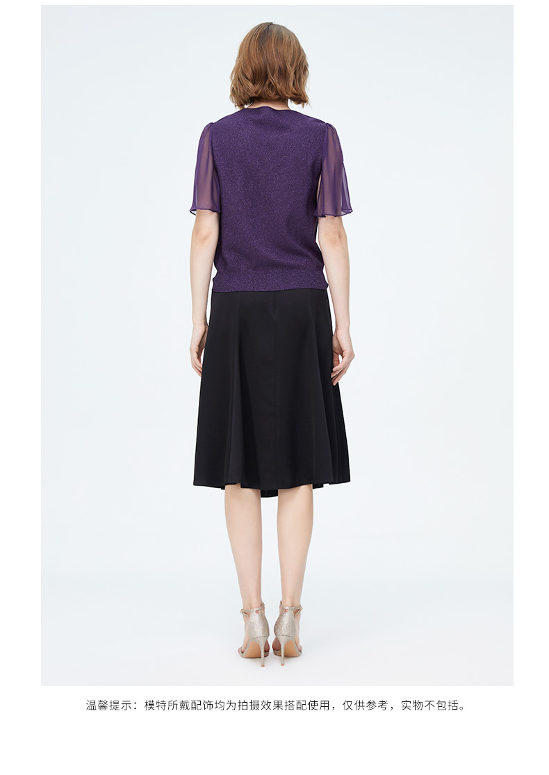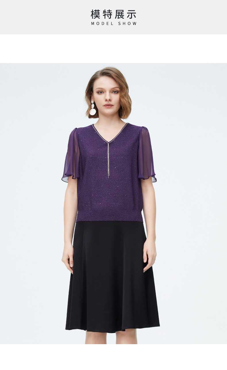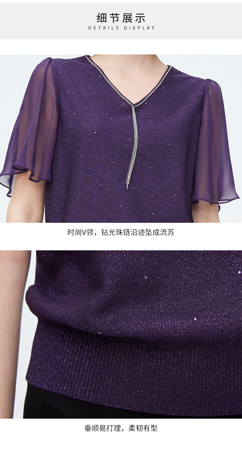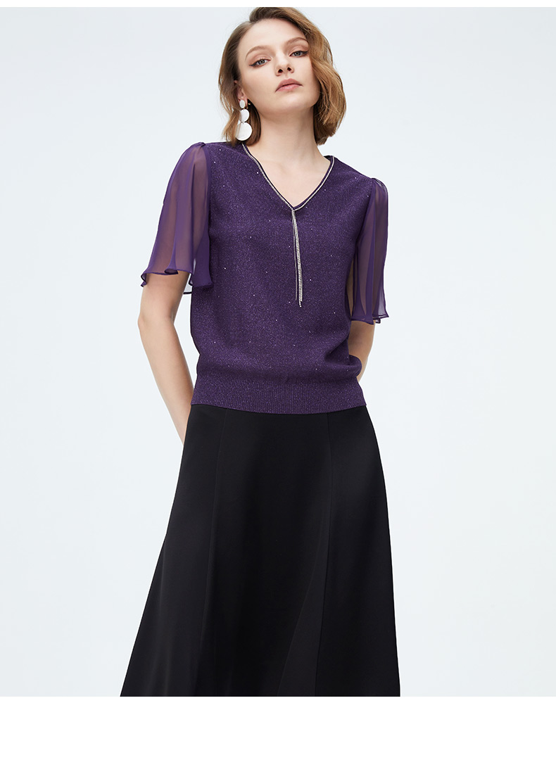 迪安诺女装毛针织衫淑女性感飘逸纱袖通勤短袖针织衫N4299K4227Z2