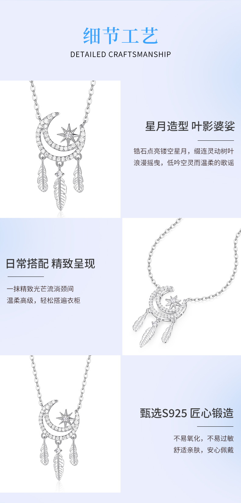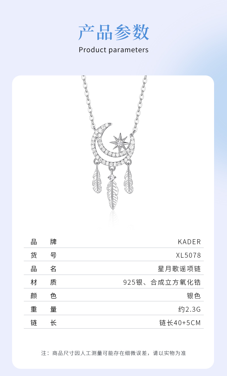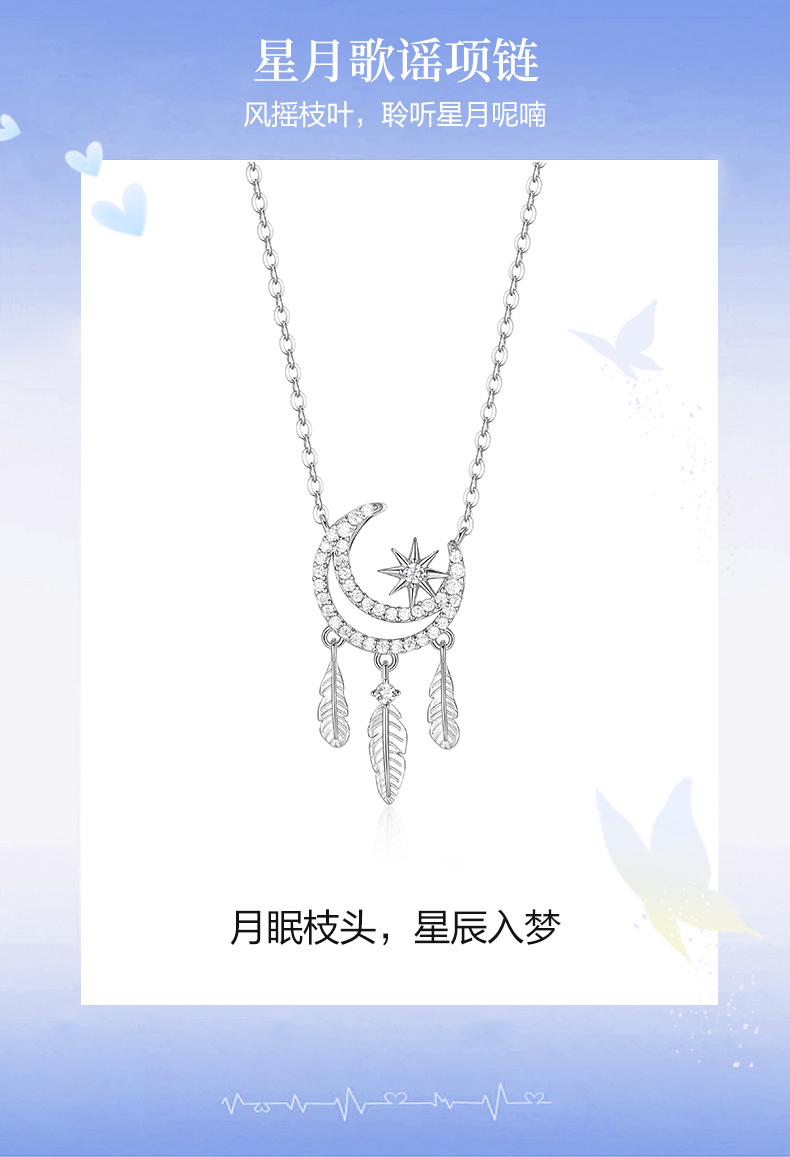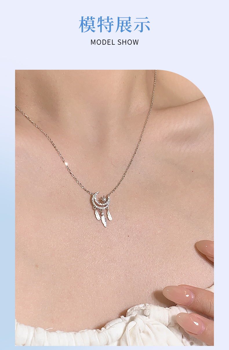 卡蒂罗/KADER 星月歌谣项链 月伴星辰幻梦心月轻奢时尚满钻镶嵌可调节拼接链 月半弯羽毛流苏风铃设计梦幻吊坠