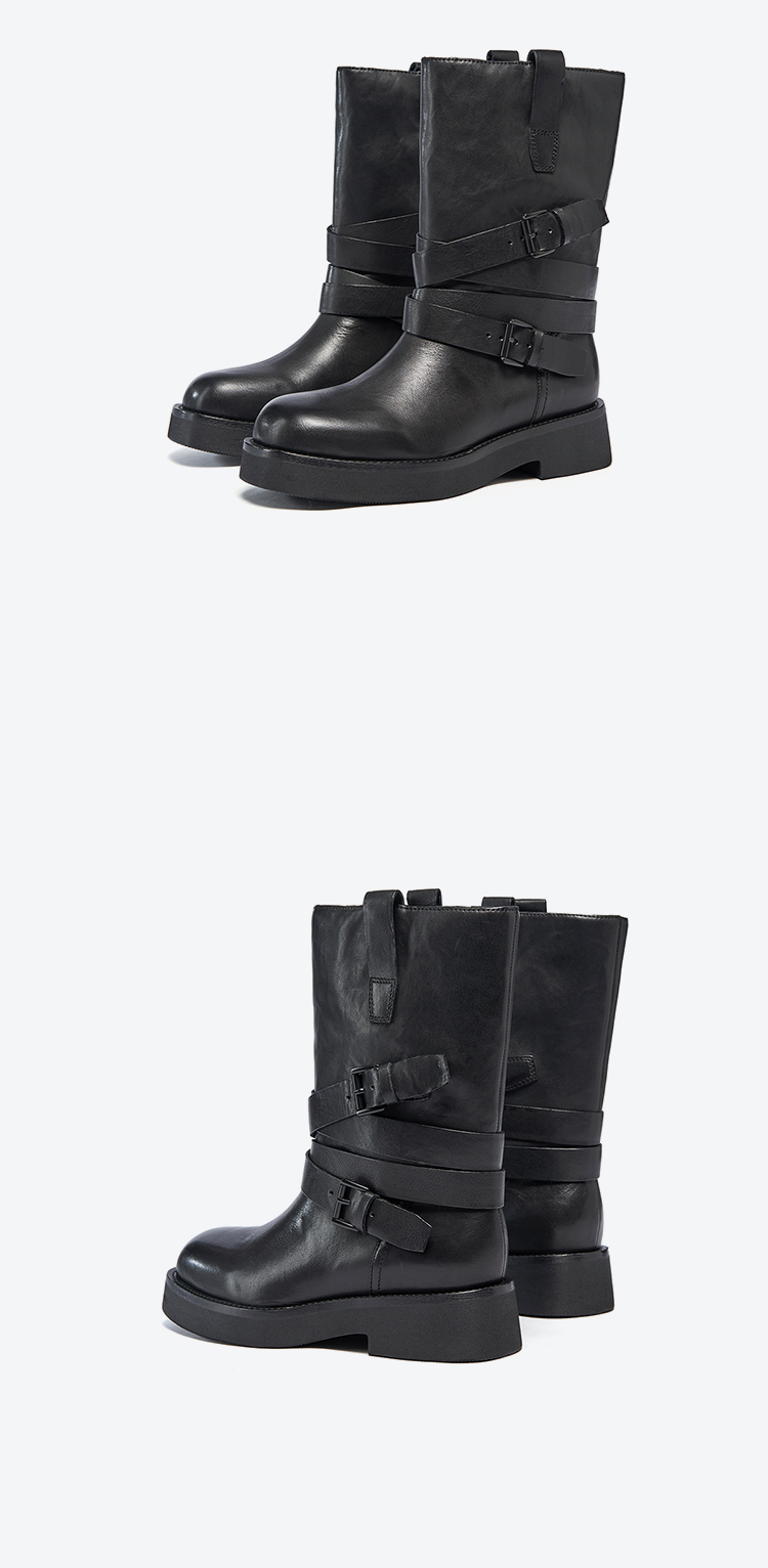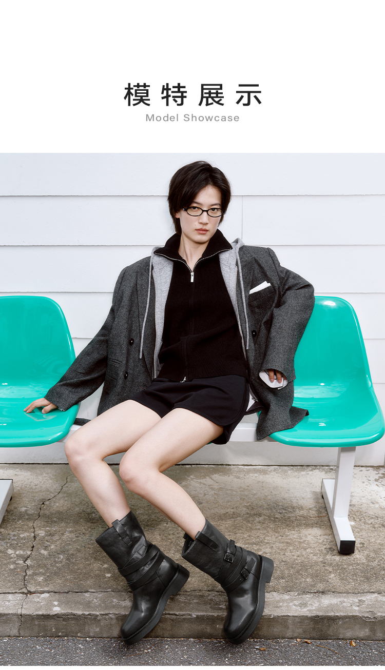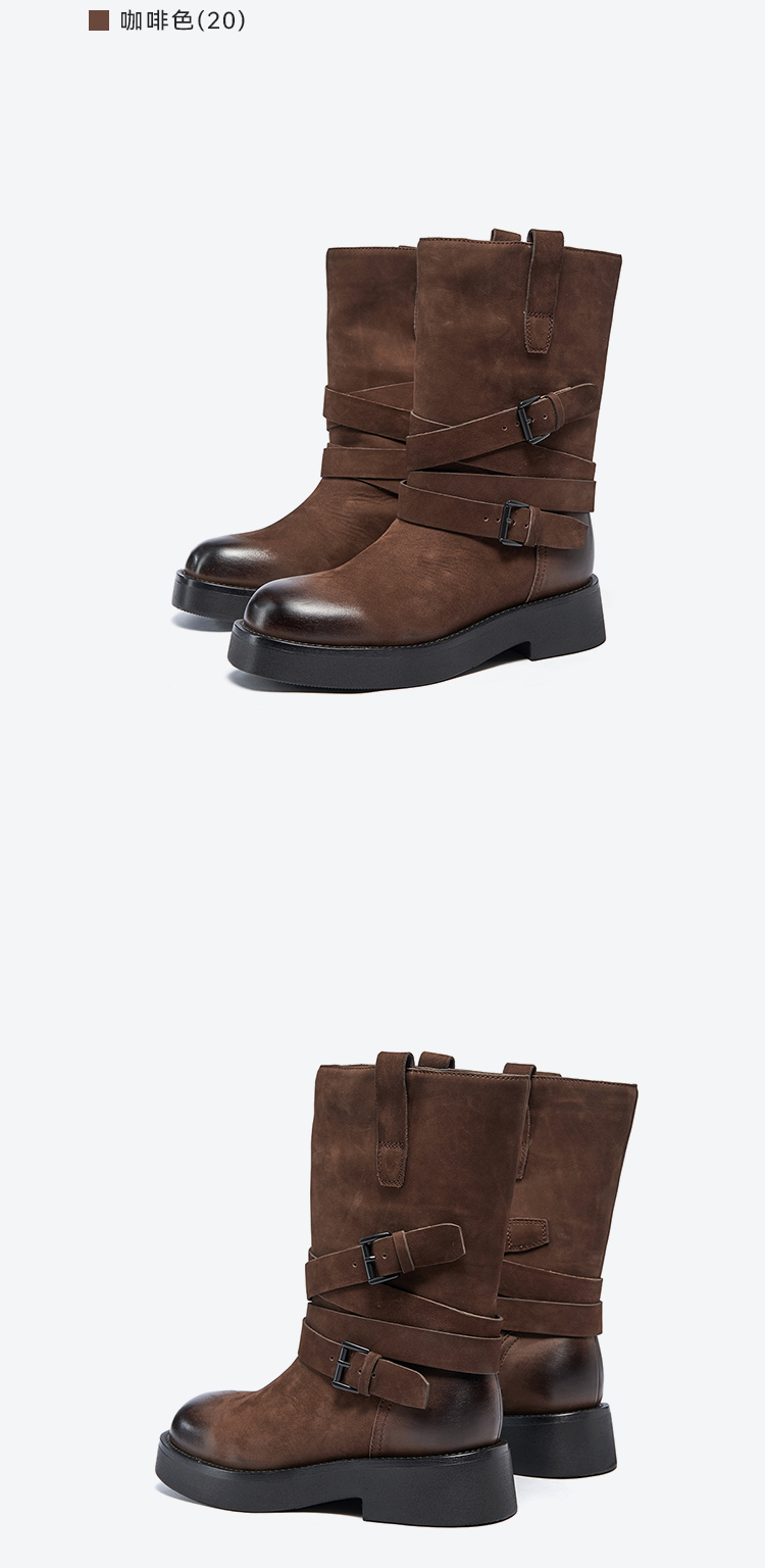星期六复古时髦条带扣饰短靴SSC4116393