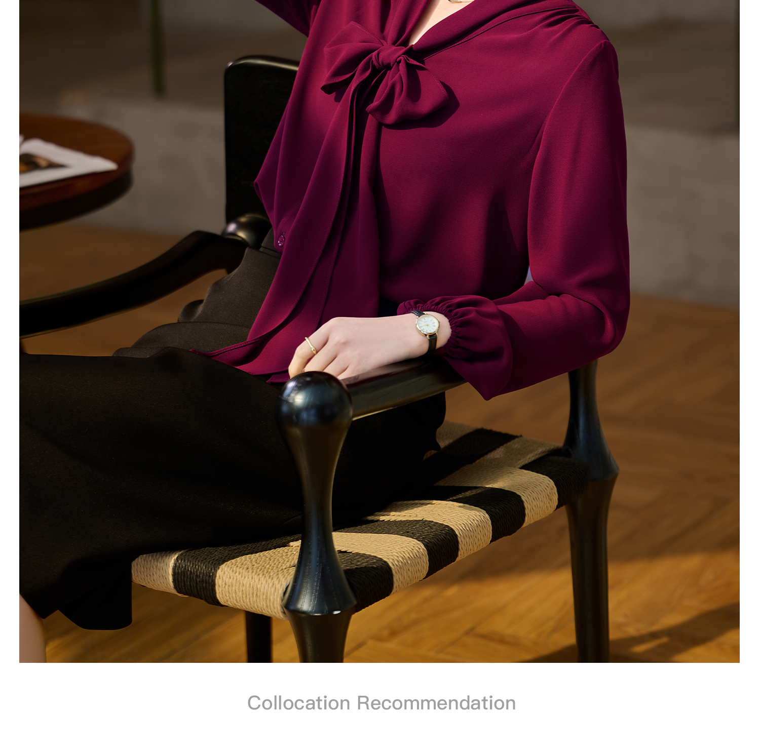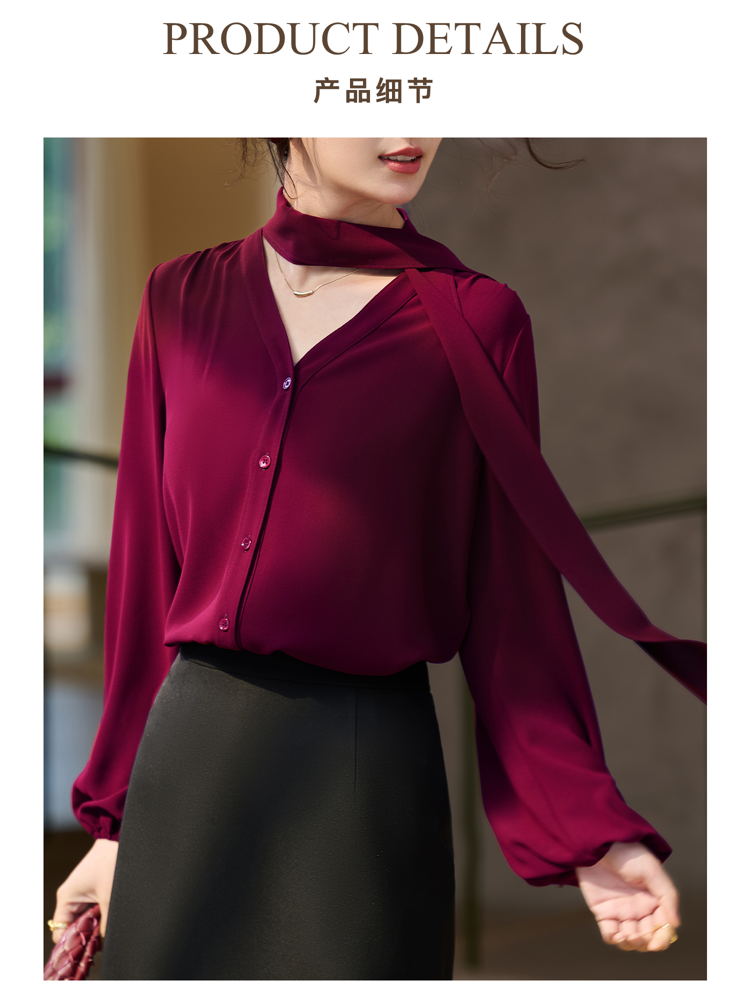 氛围飘带衬衫 高级感安可拉红 米思阳2026春季新款洋气独特超好看小衫飘带衬衫女轻奢减龄上衣女6014