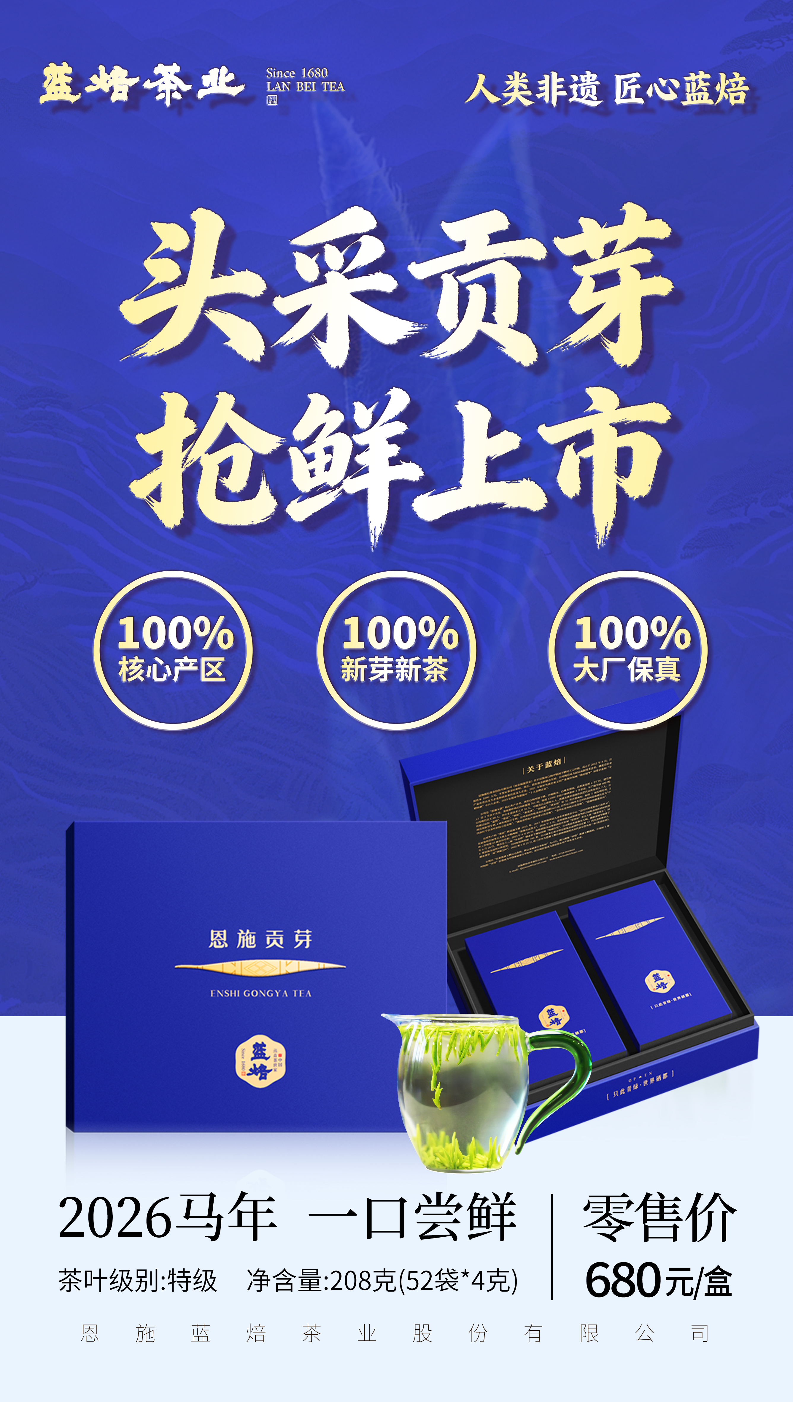 2026年 蓝焙·恩施贡芽炒青绿茶 蓝款208g/盒