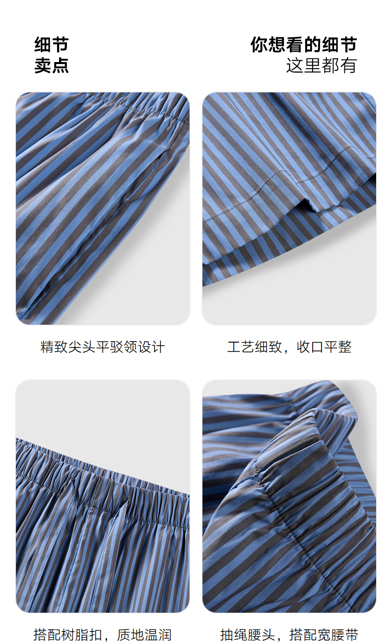 GXG男士细条纹棉质家居服高级感春秋北欧风睡裤单短裤