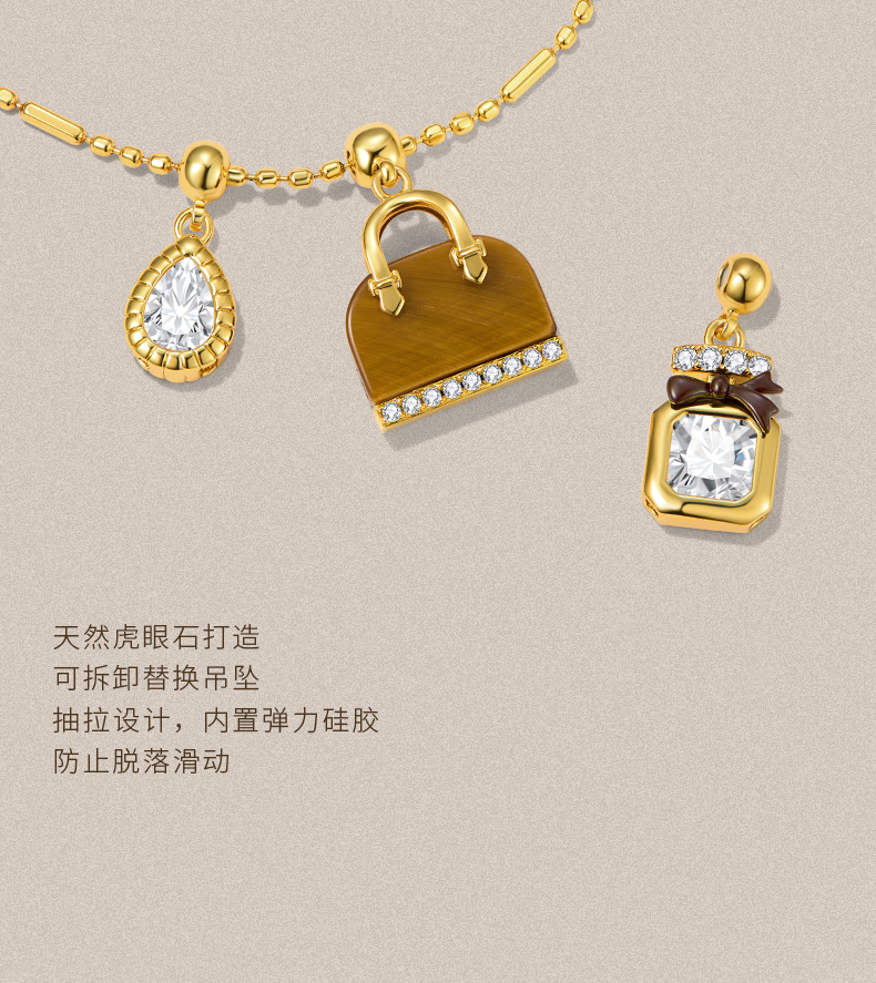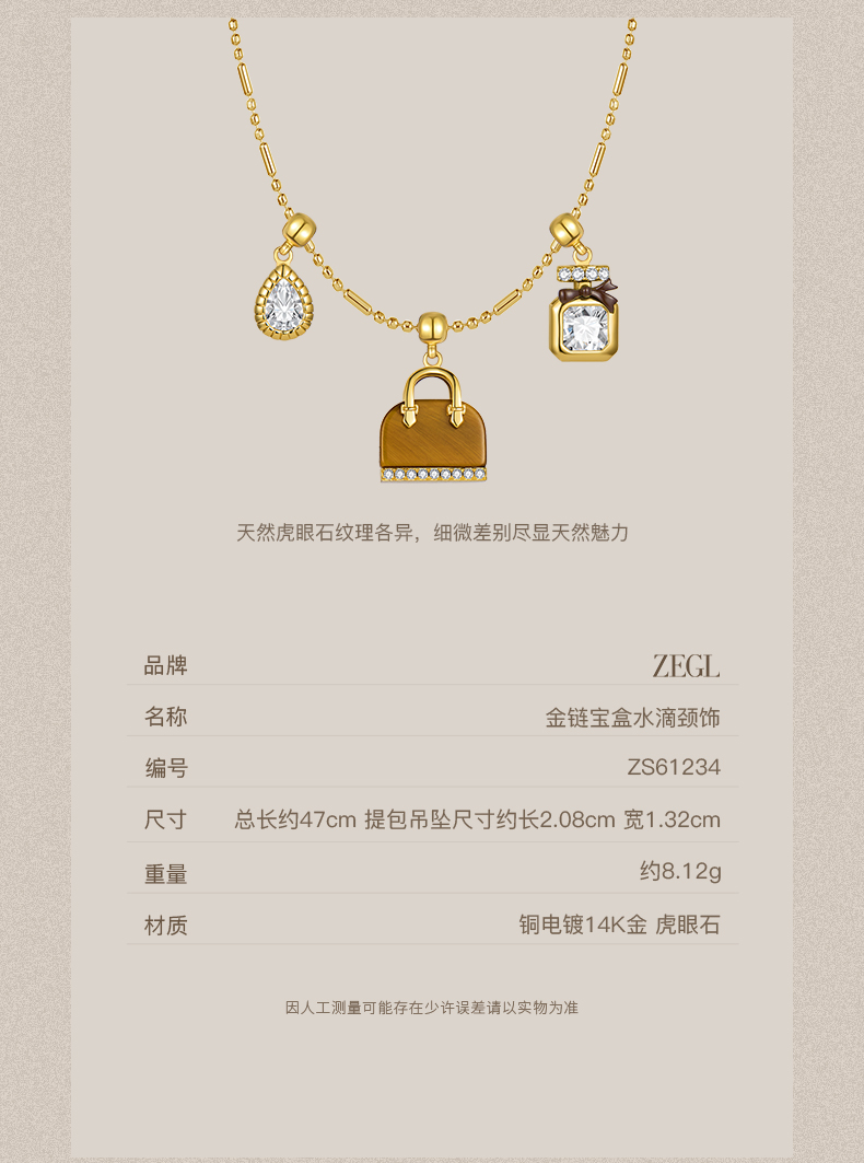 ZEGL设计师系列虎眼石项链美拉德风包包锁骨链高级感轻奢小众颈链