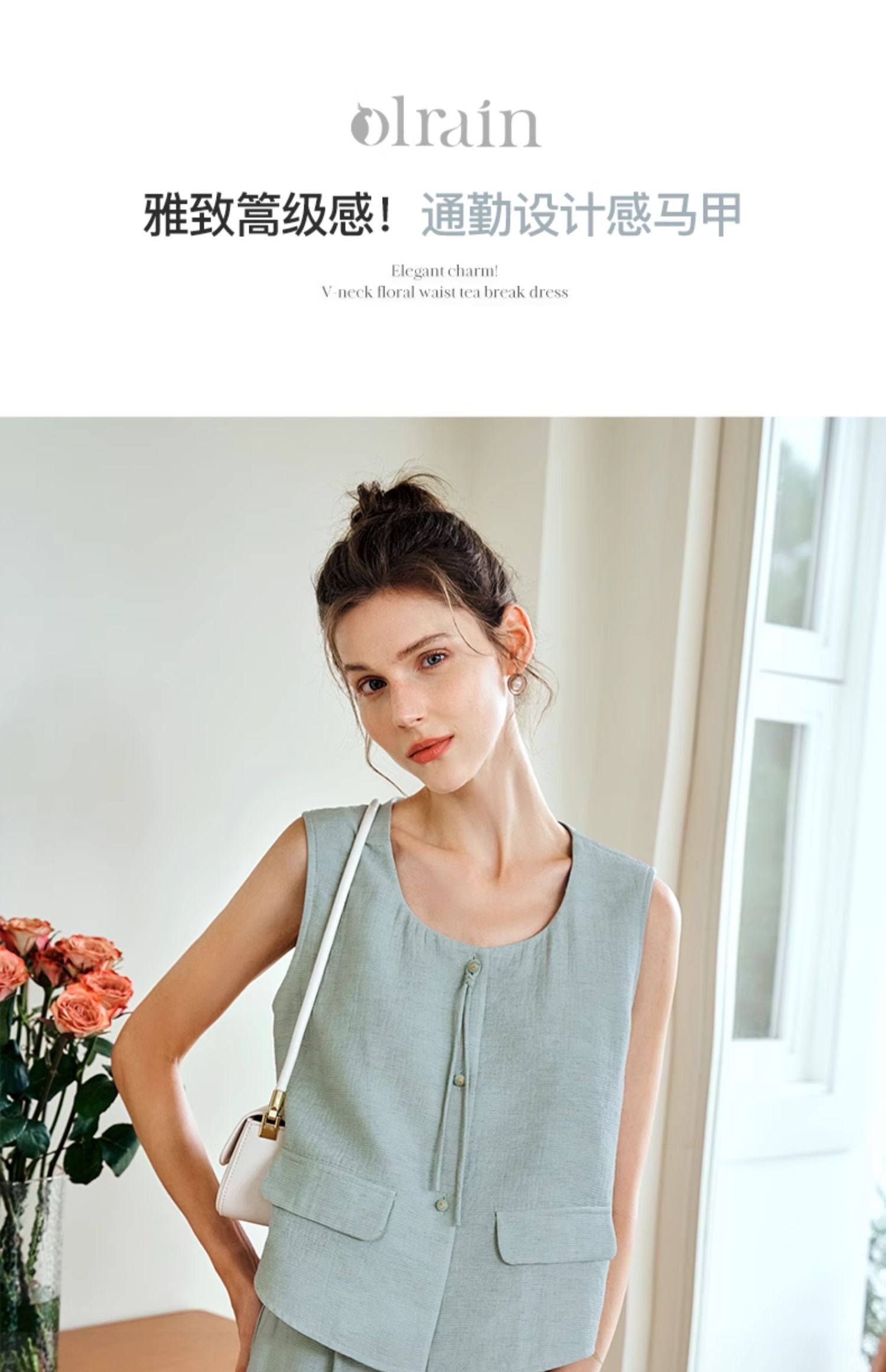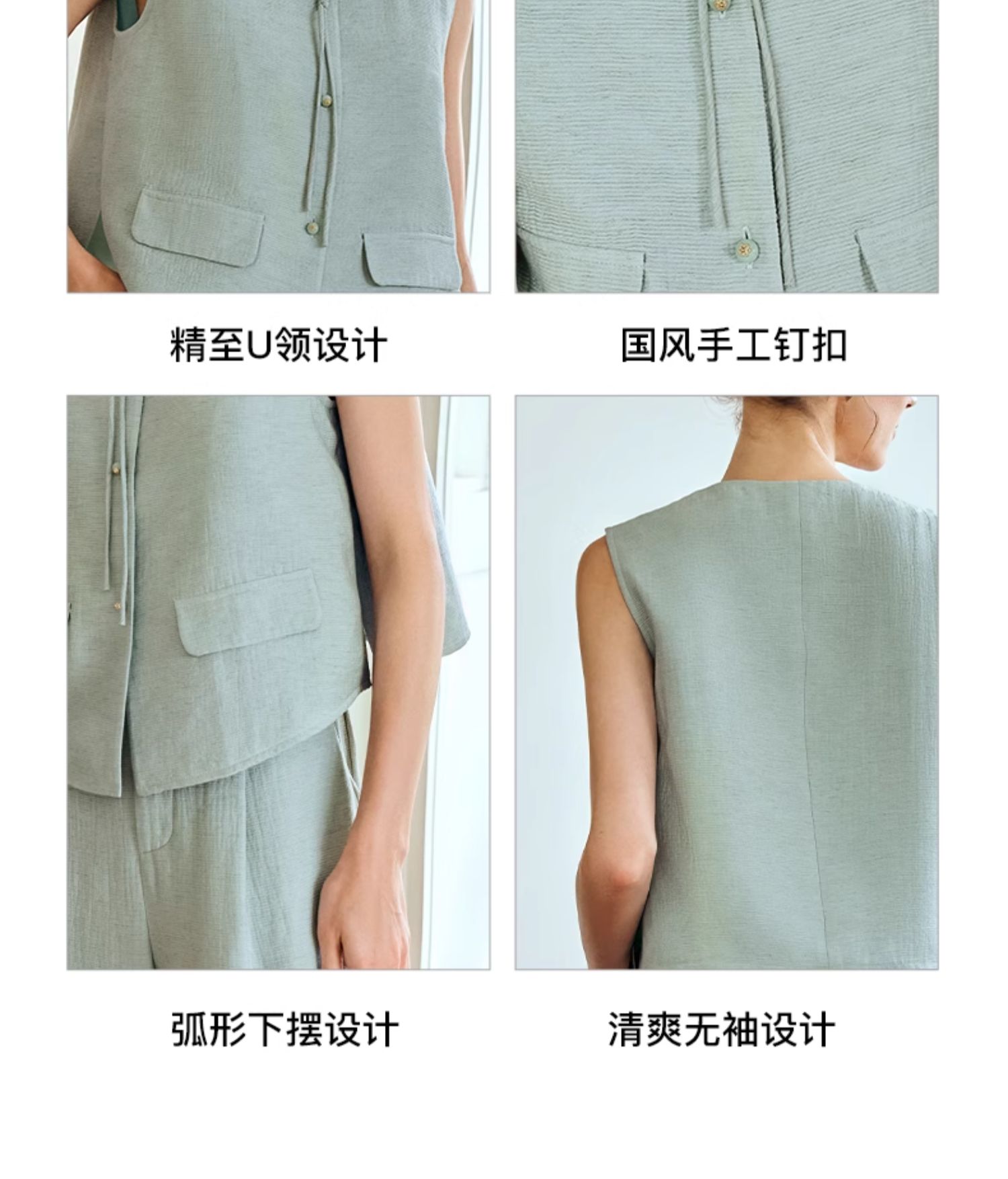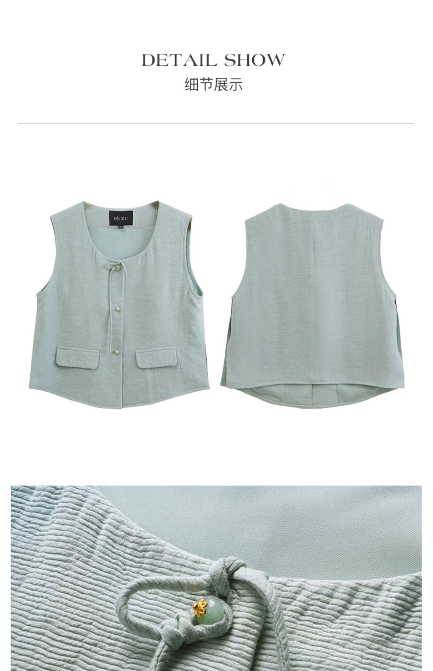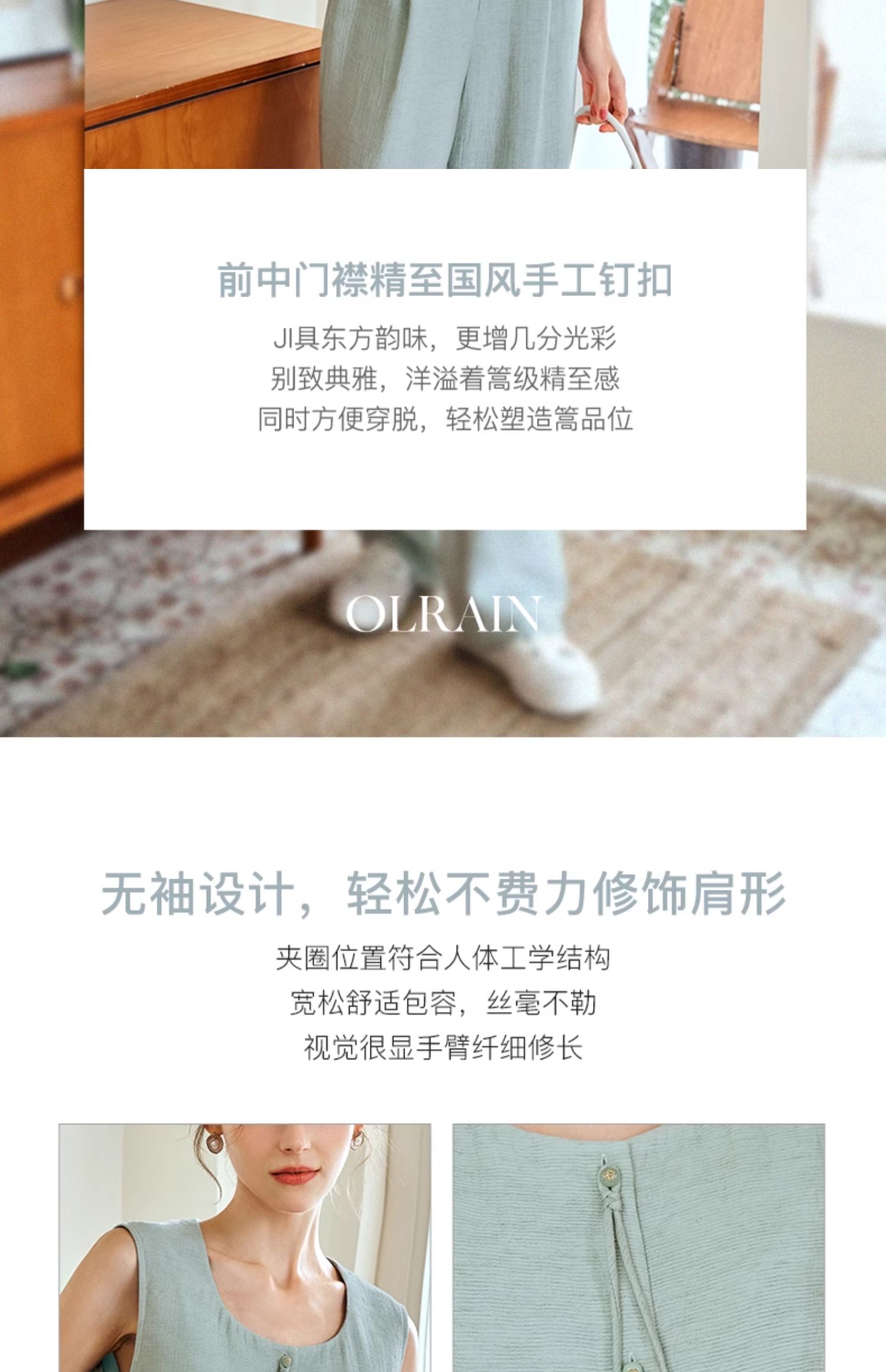 OLrain欧芮儿国风U领马甲女夏季2024年新款通勤设计感气质上衣