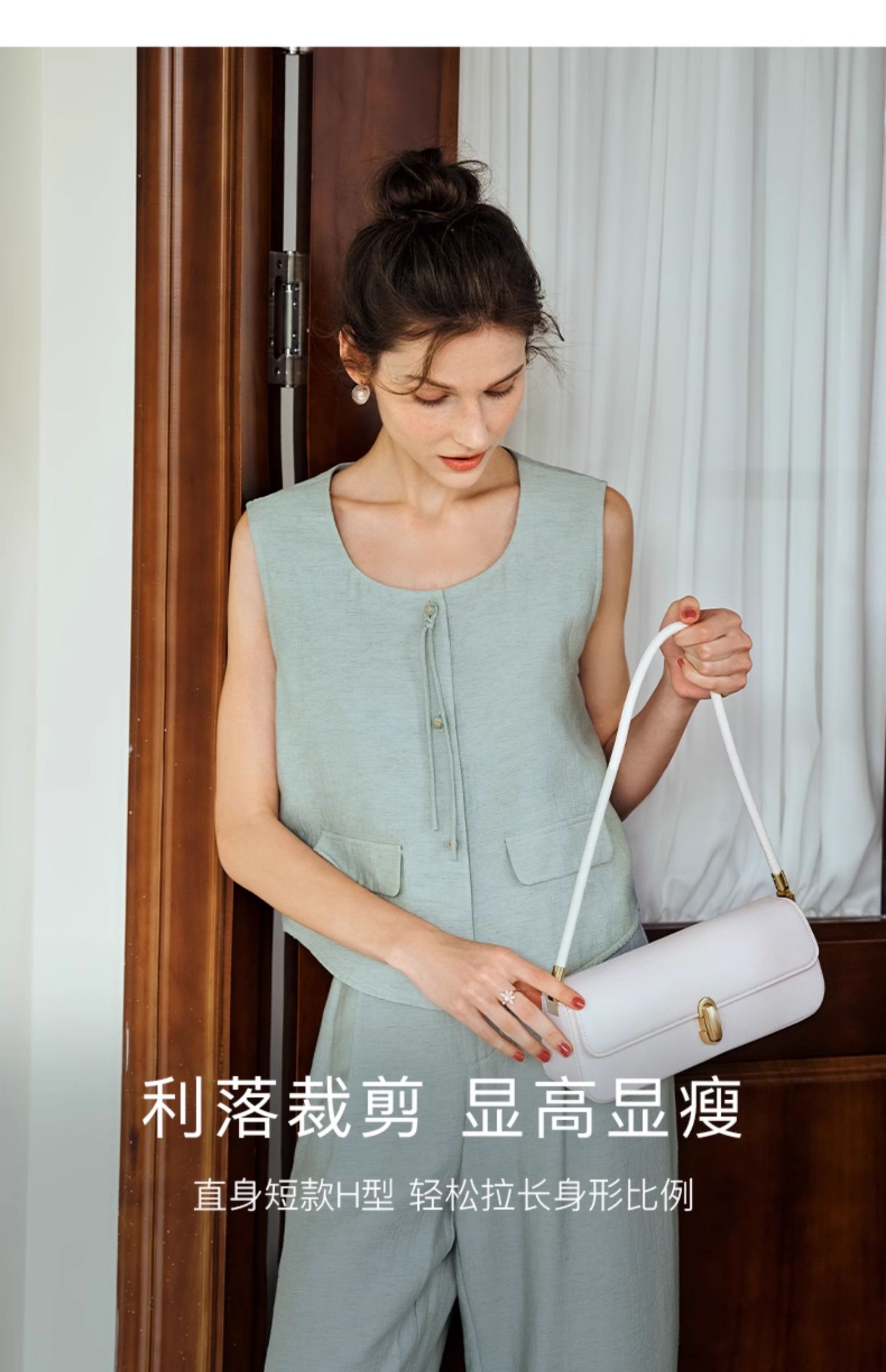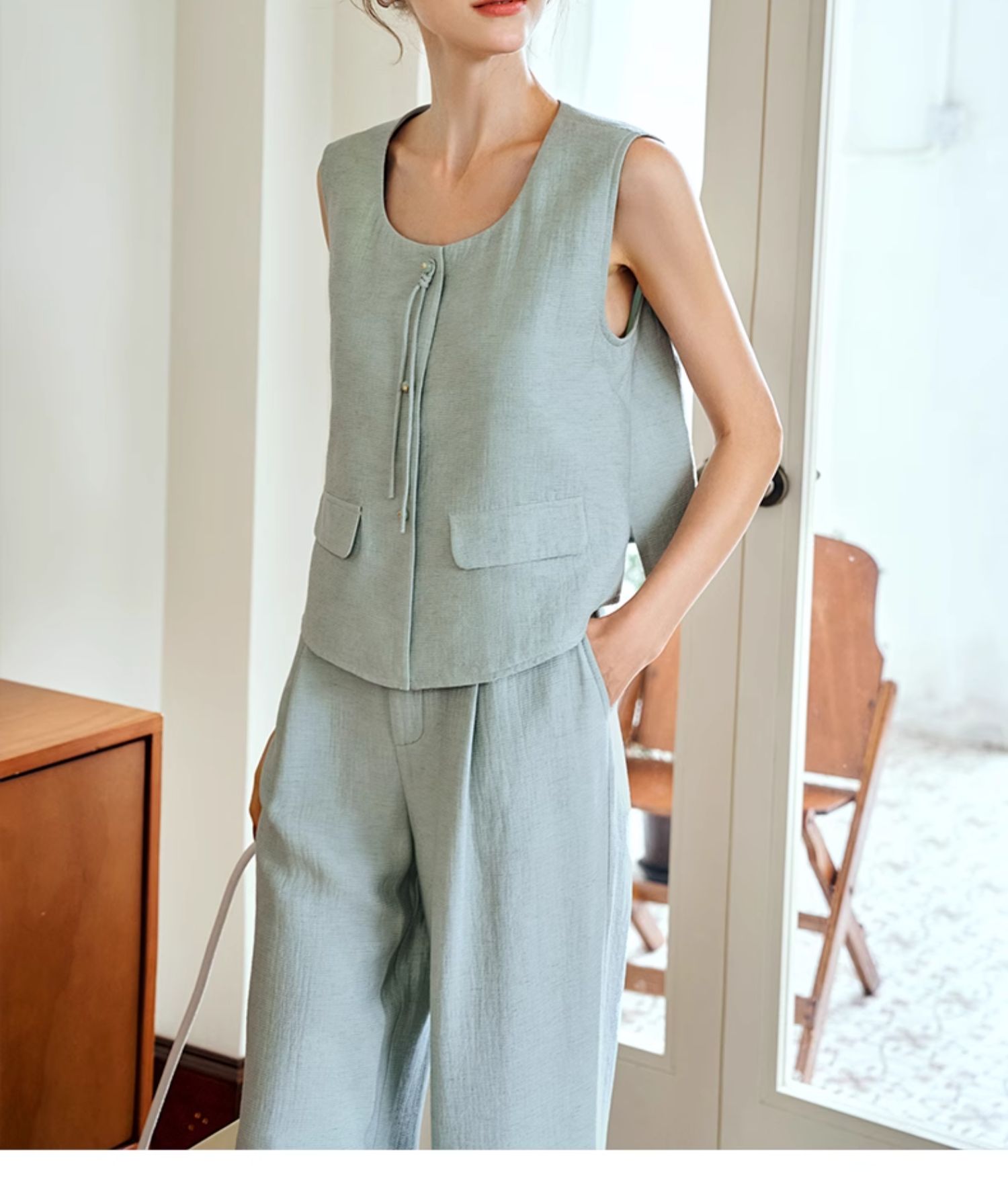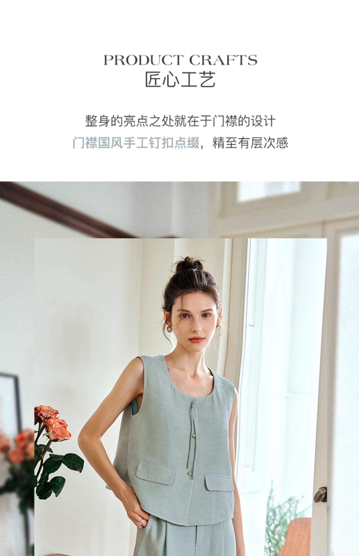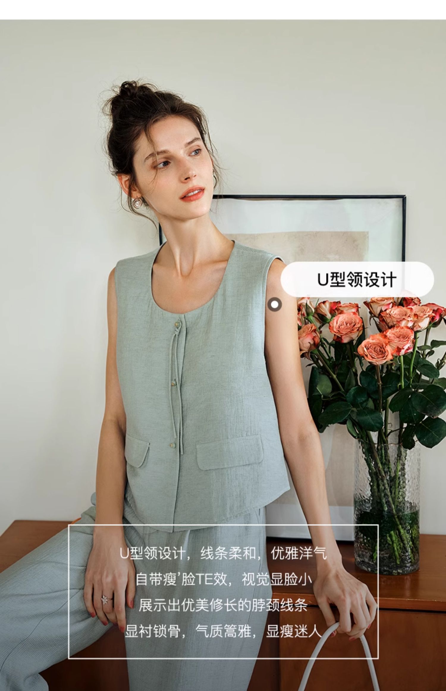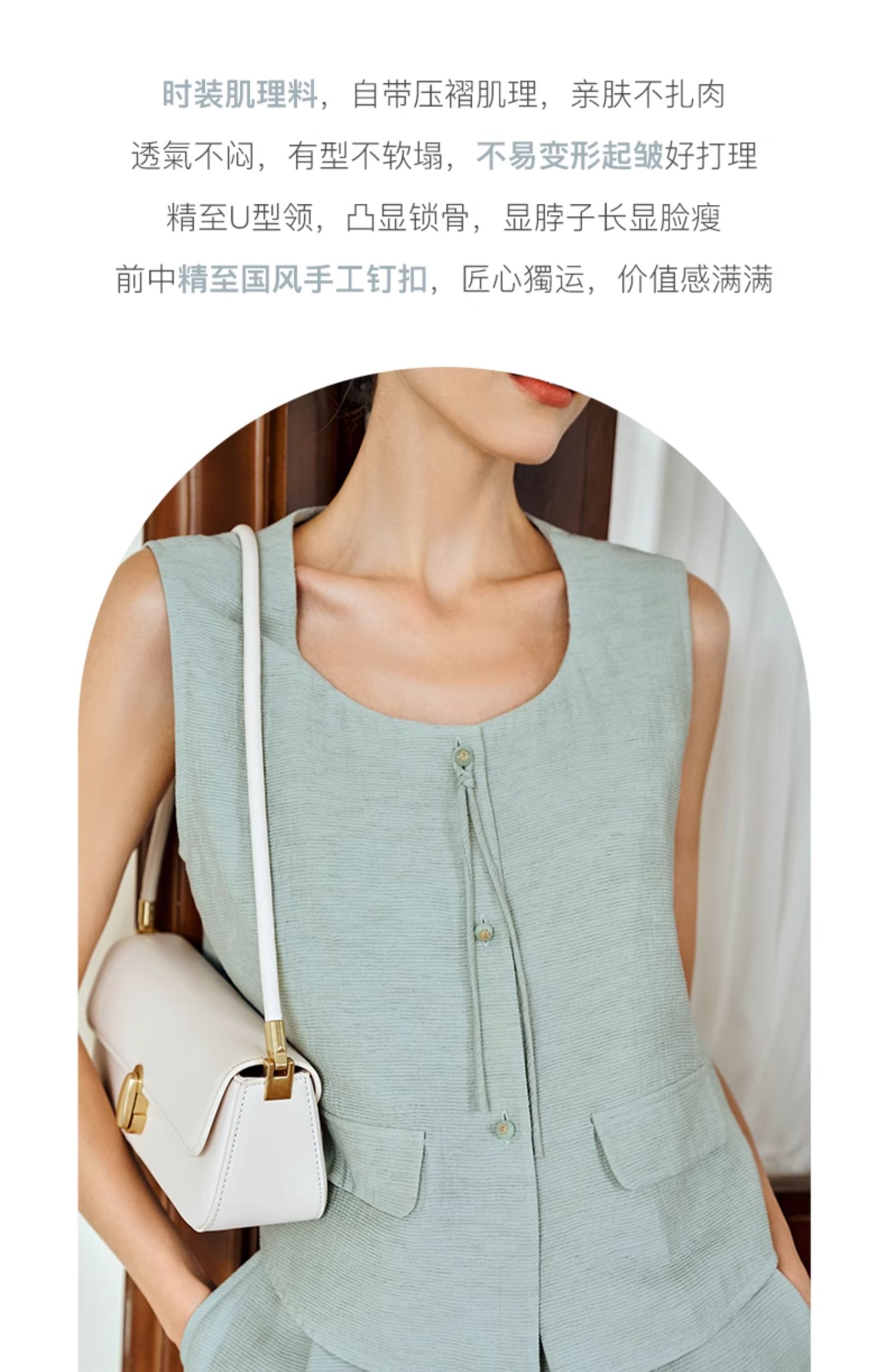 OLrain欧芮儿国风U领马甲女夏季2024年新款通勤设计感气质上衣