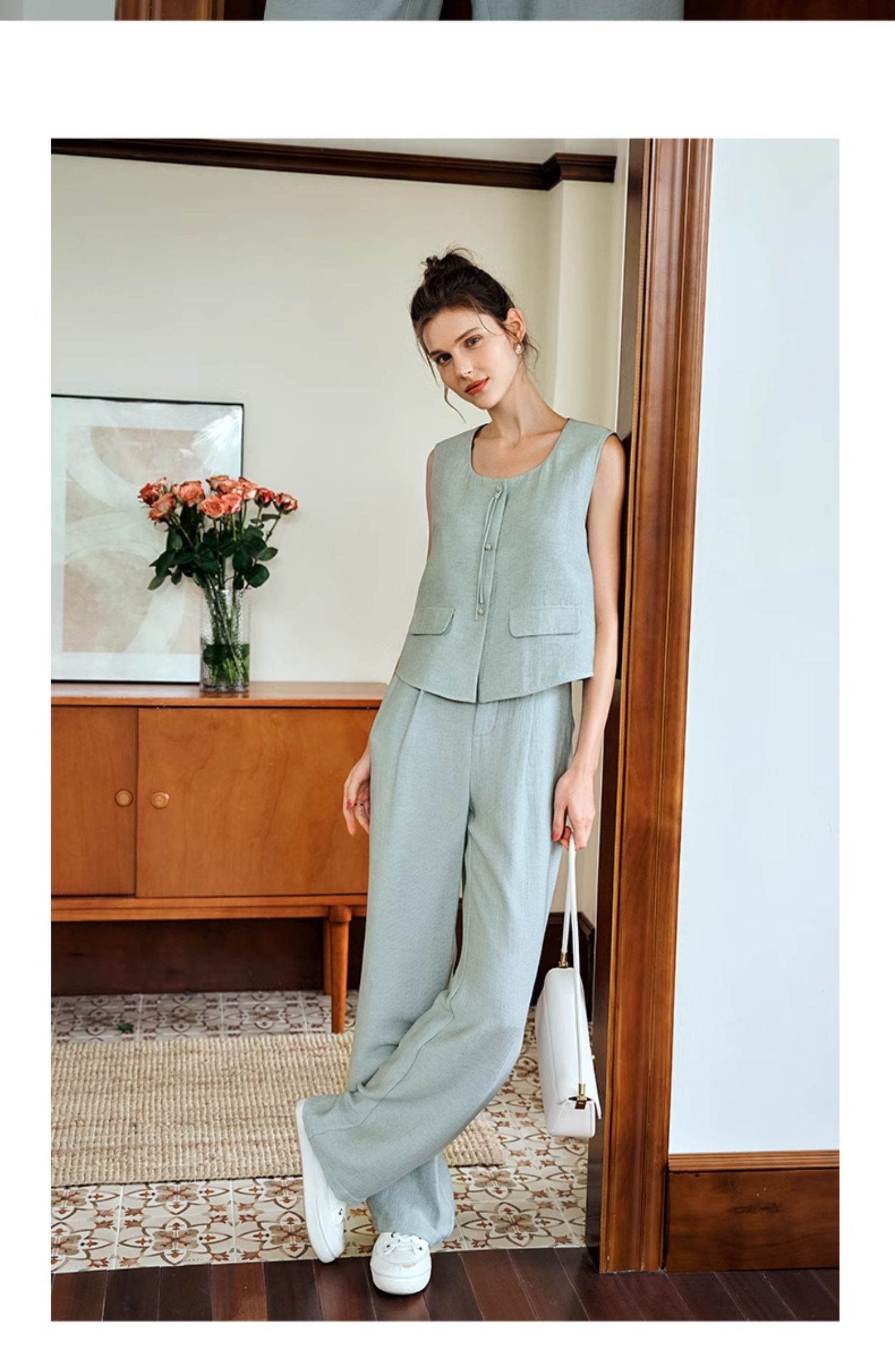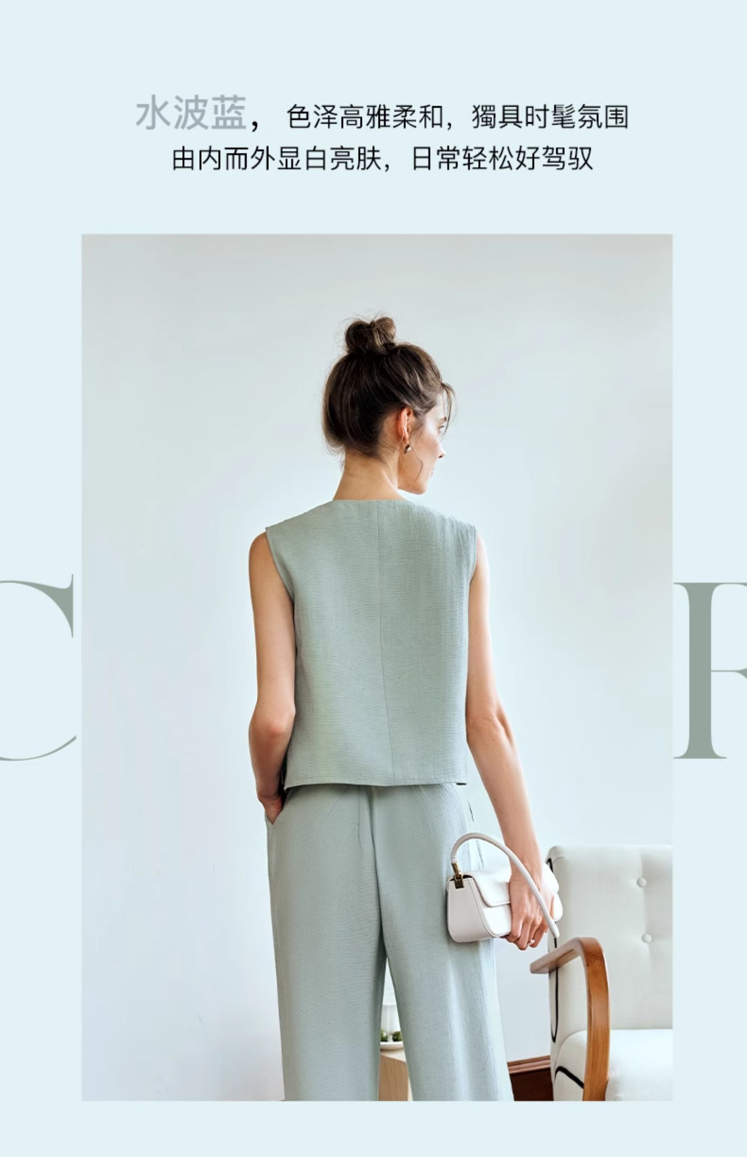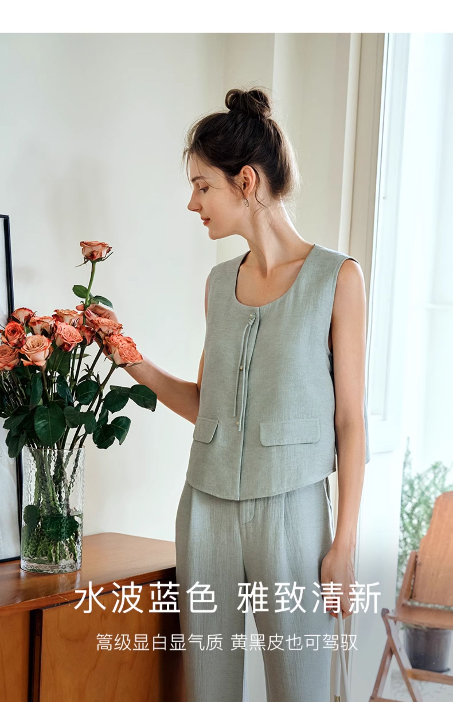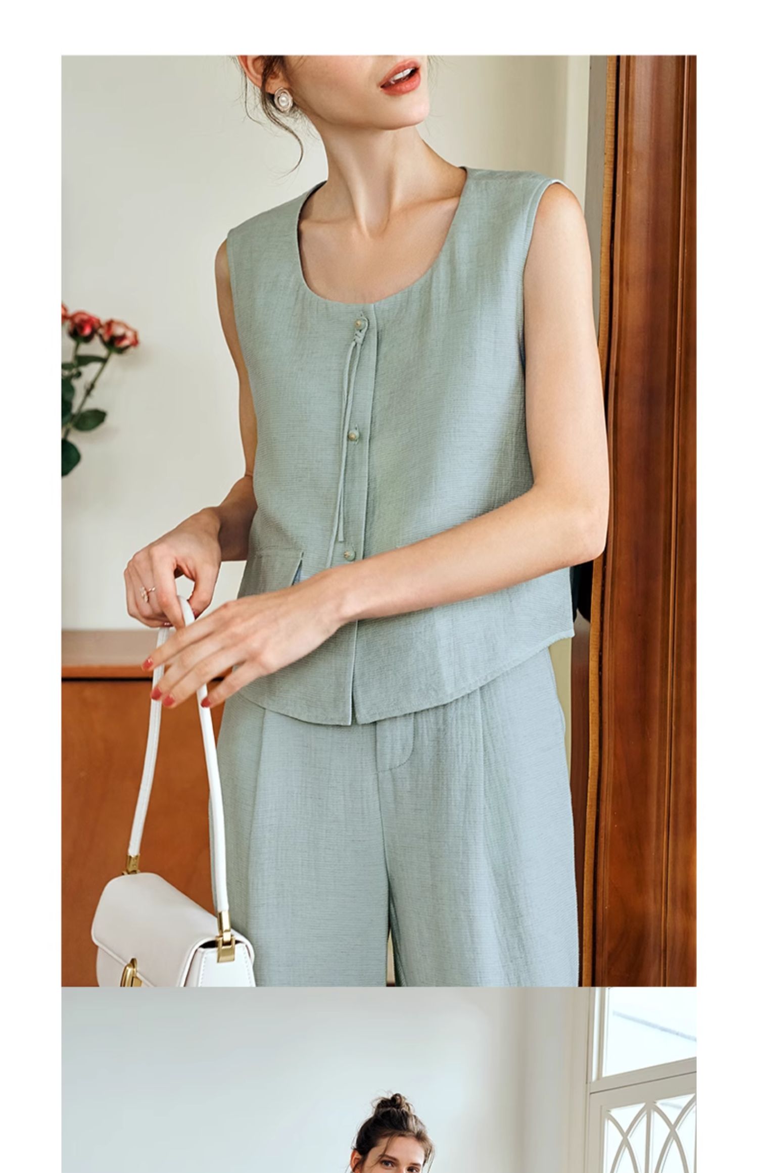 OLrain欧芮儿国风U领马甲女夏季2024年新款通勤设计感气质上衣