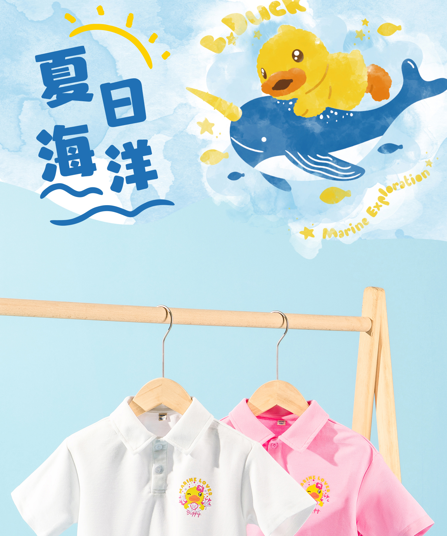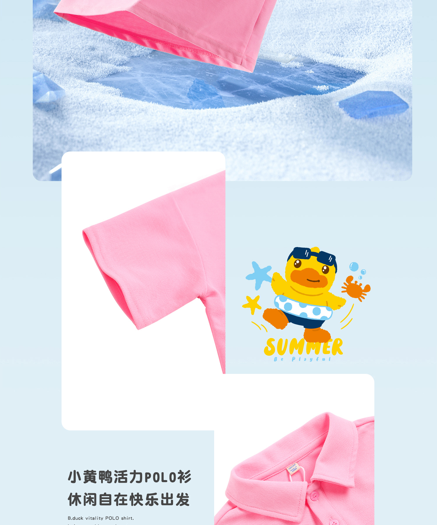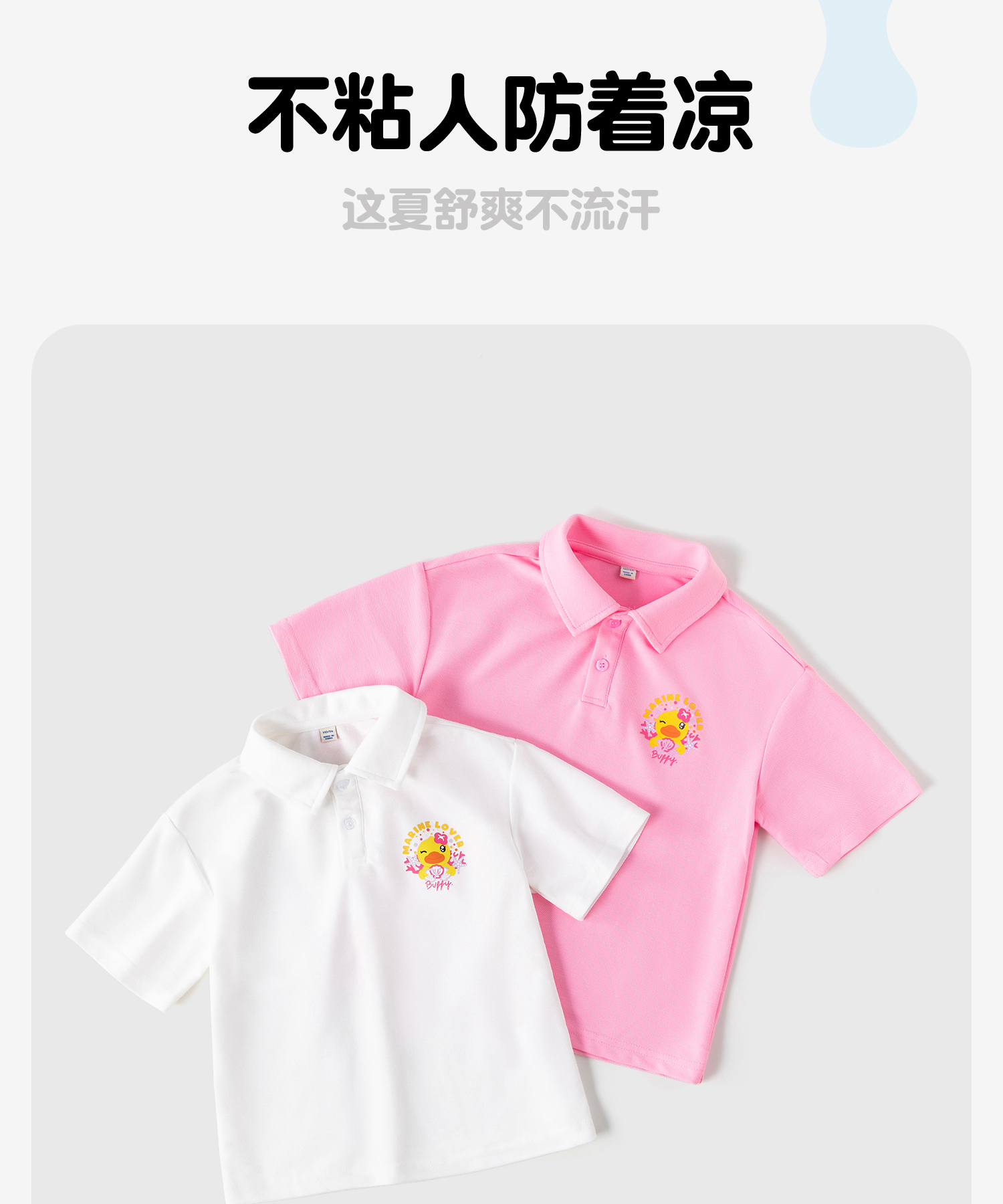 bduck小黄鸭童装夏季女童短袖T恤宝宝上衣儿童夏装纯棉半袖上衣薄90-130 FF2601068