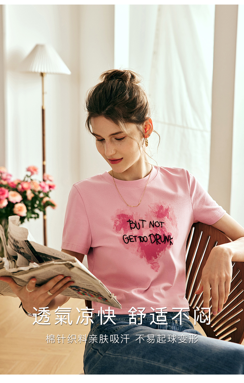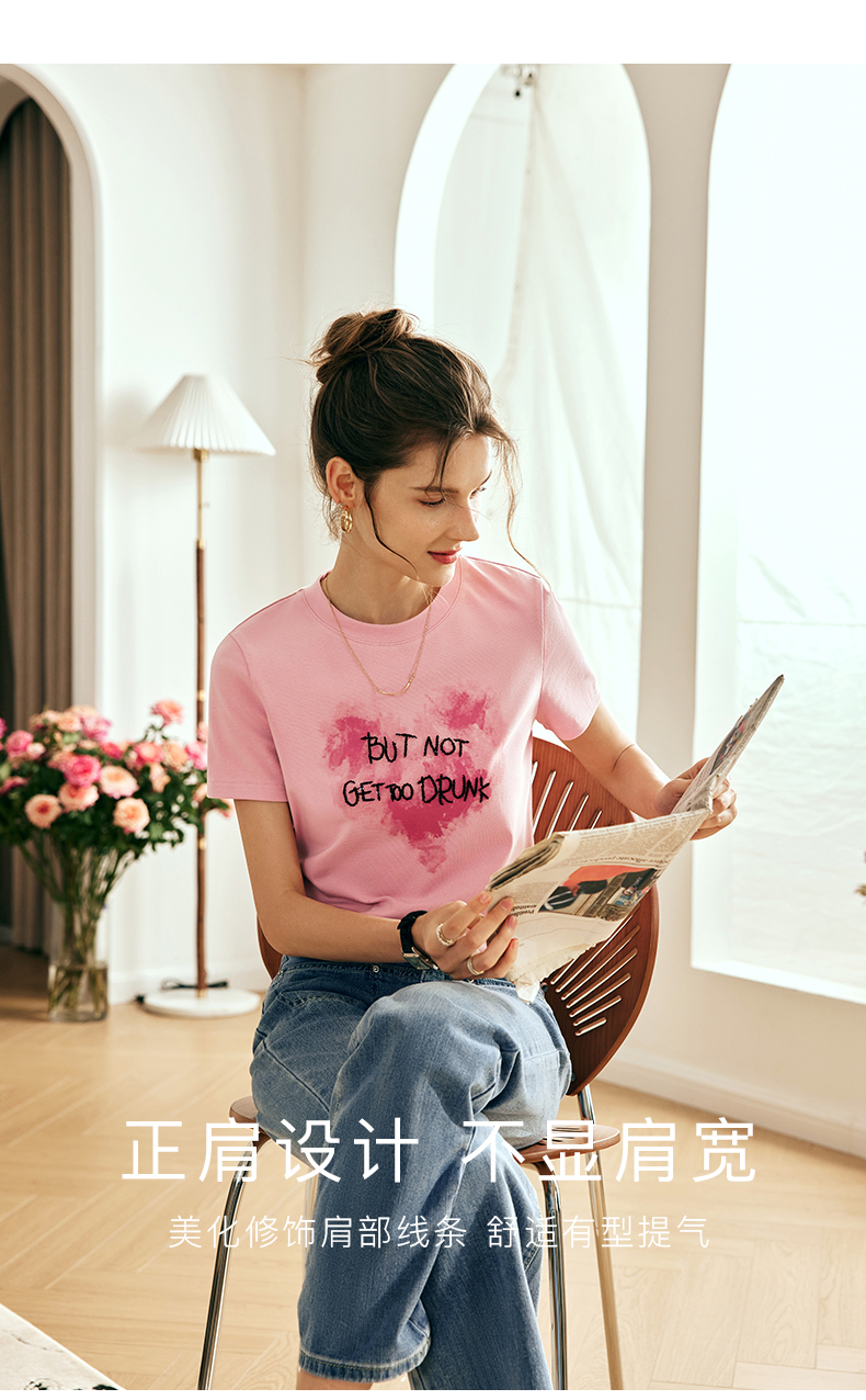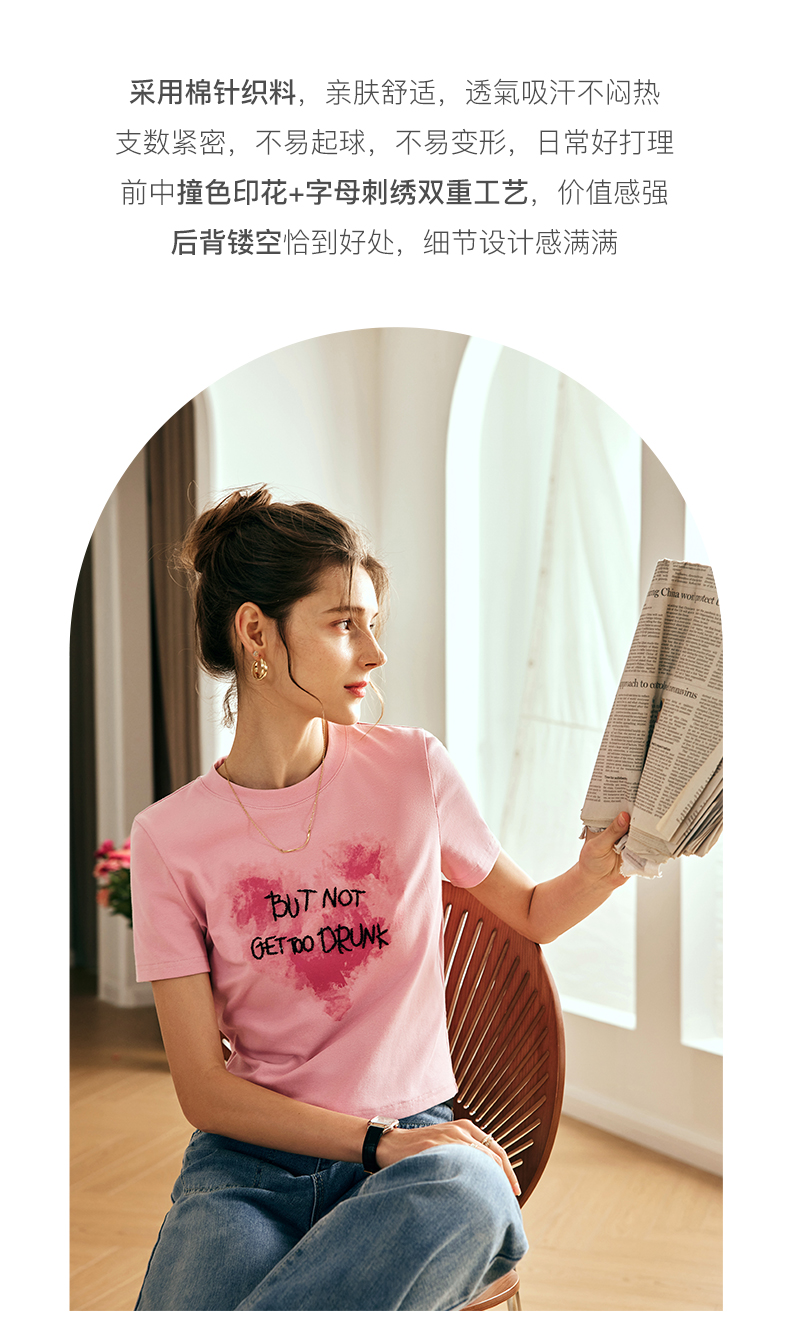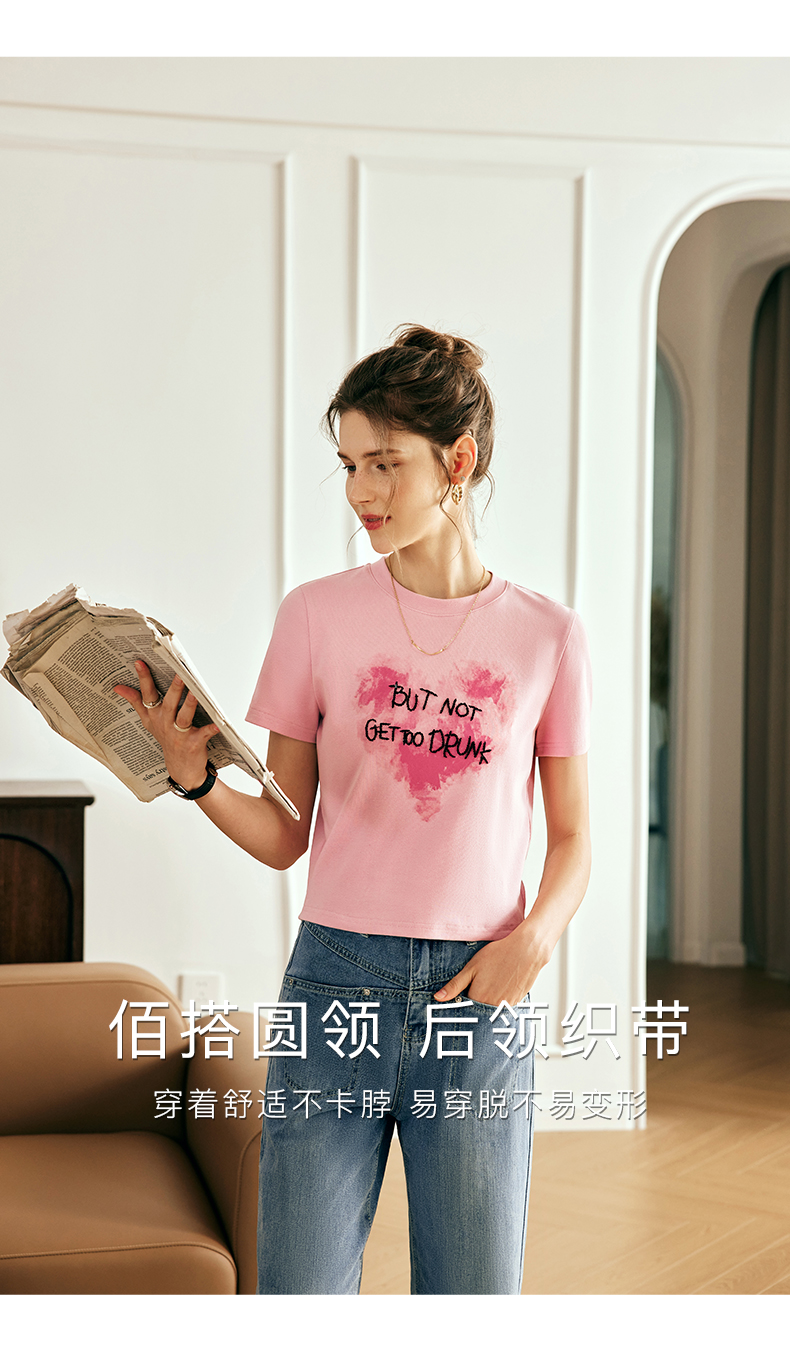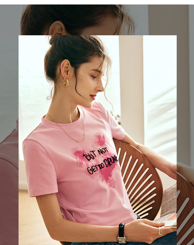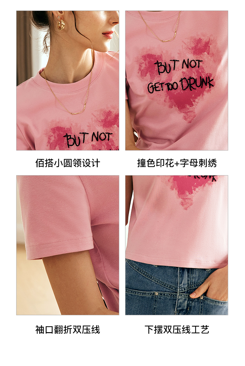 OLrain欧芮儿法式粉色短袖T恤女夏季2023新款设计感刺绣印花上衣