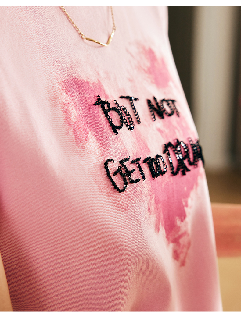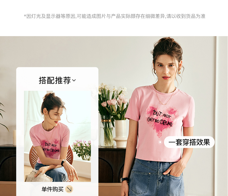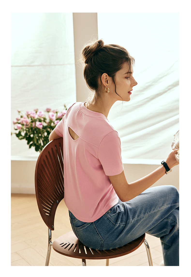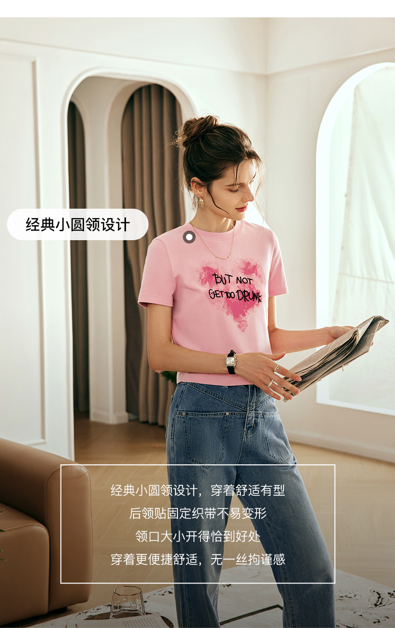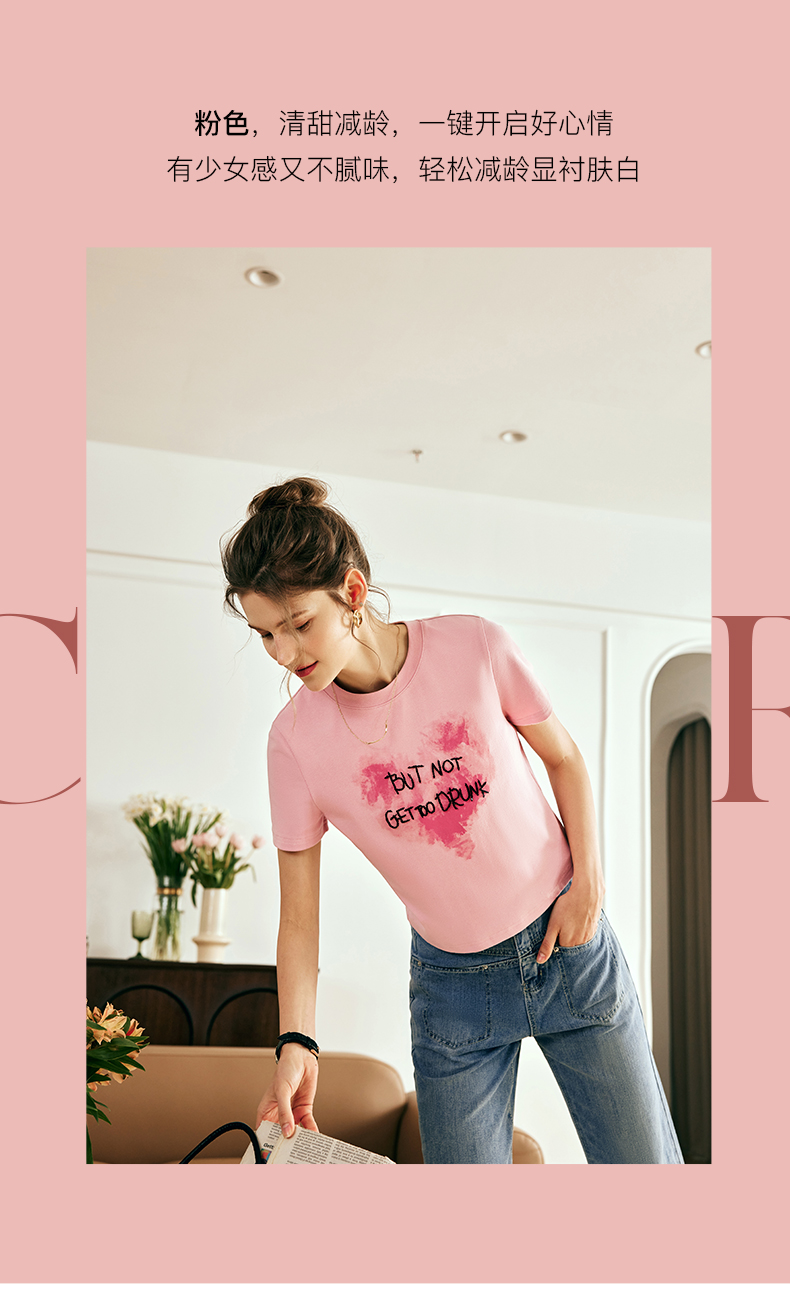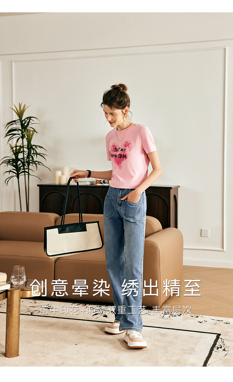 OLrain欧芮儿法式粉色短袖T恤女夏季2023新款设计感刺绣印花上衣