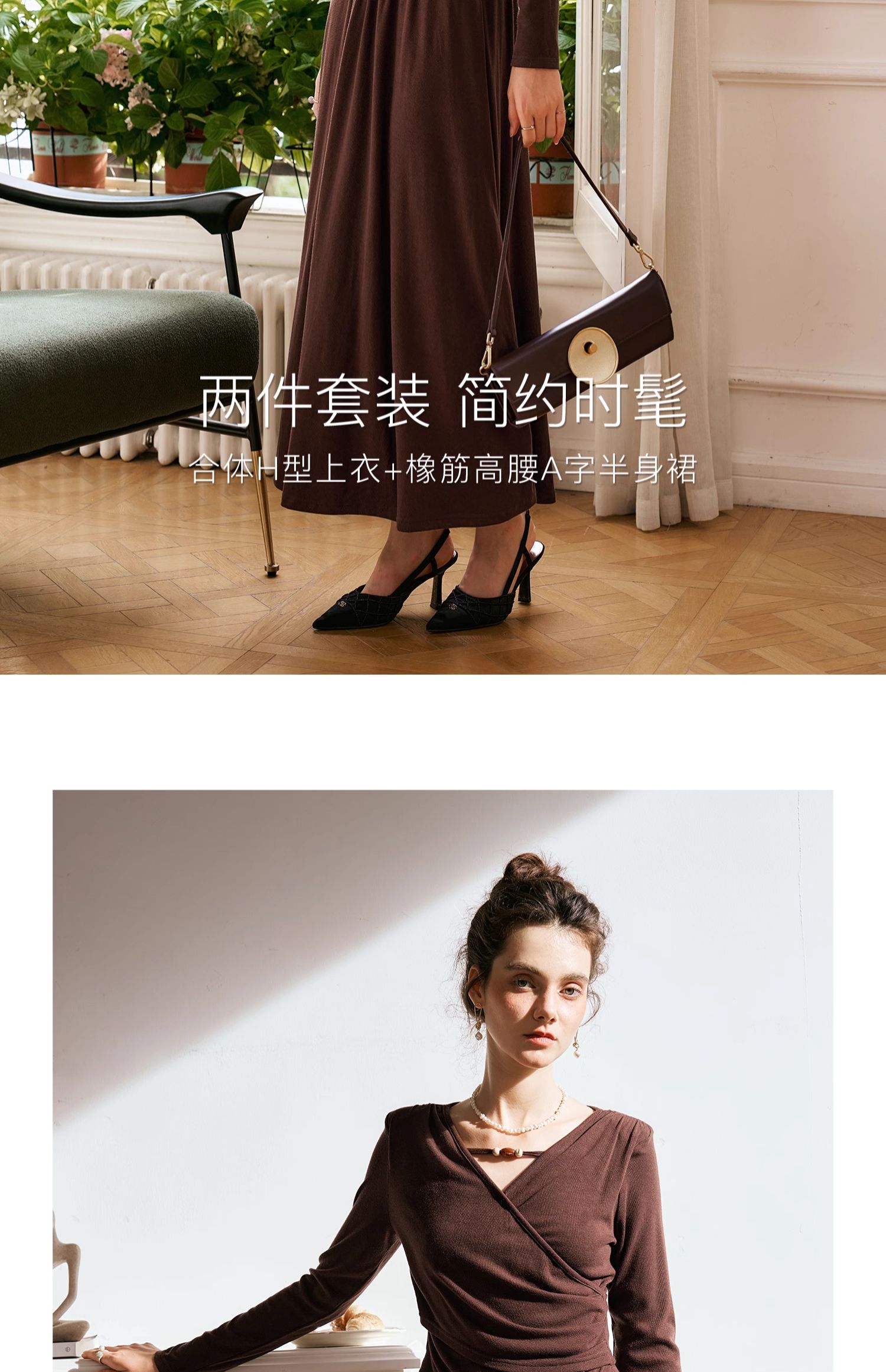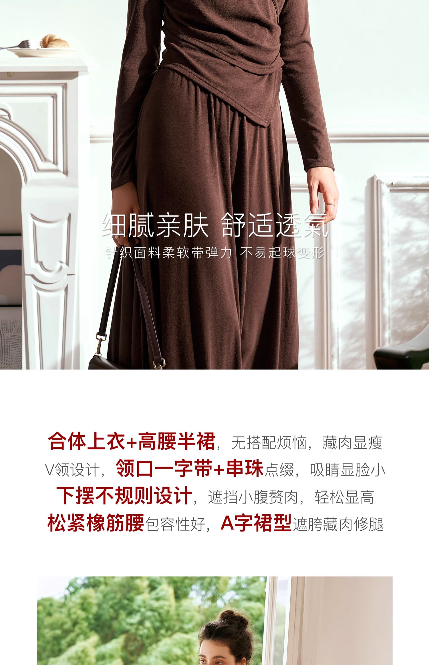 OLrain欧芮儿法式V领针织套装女秋季2024新款修身收腰显瘦两件套