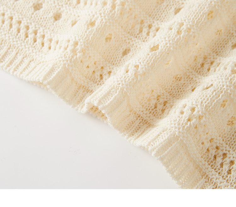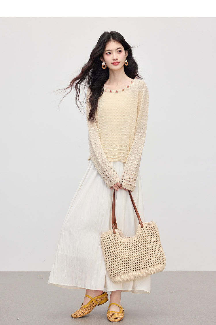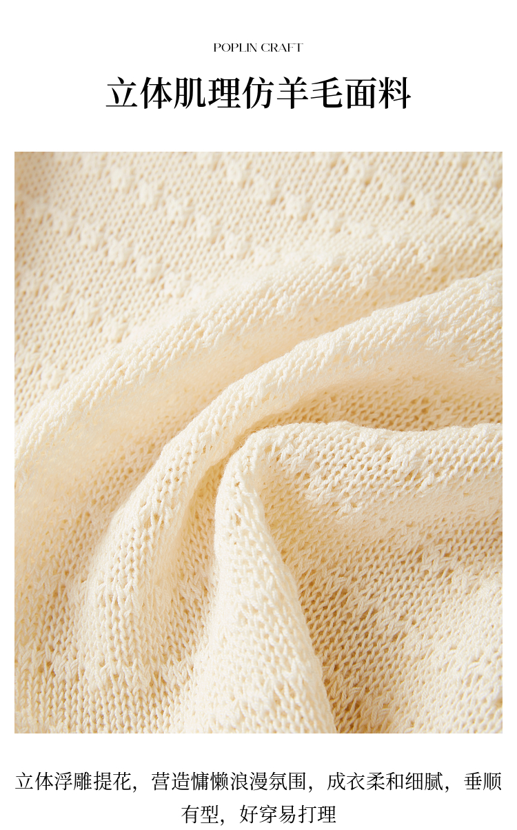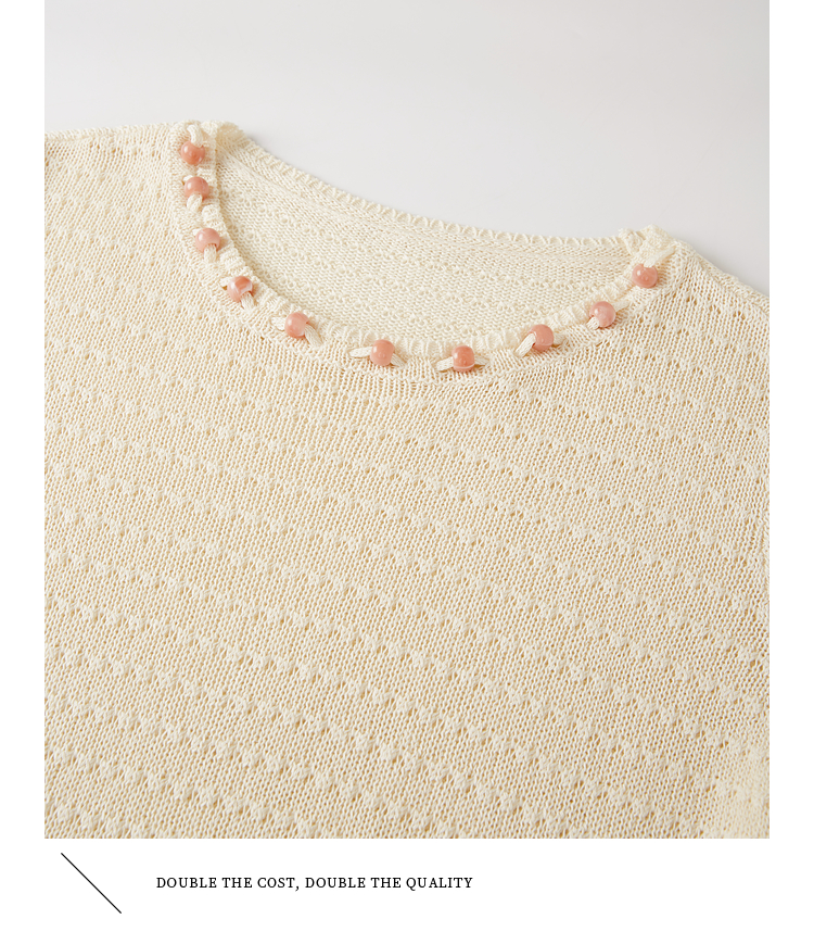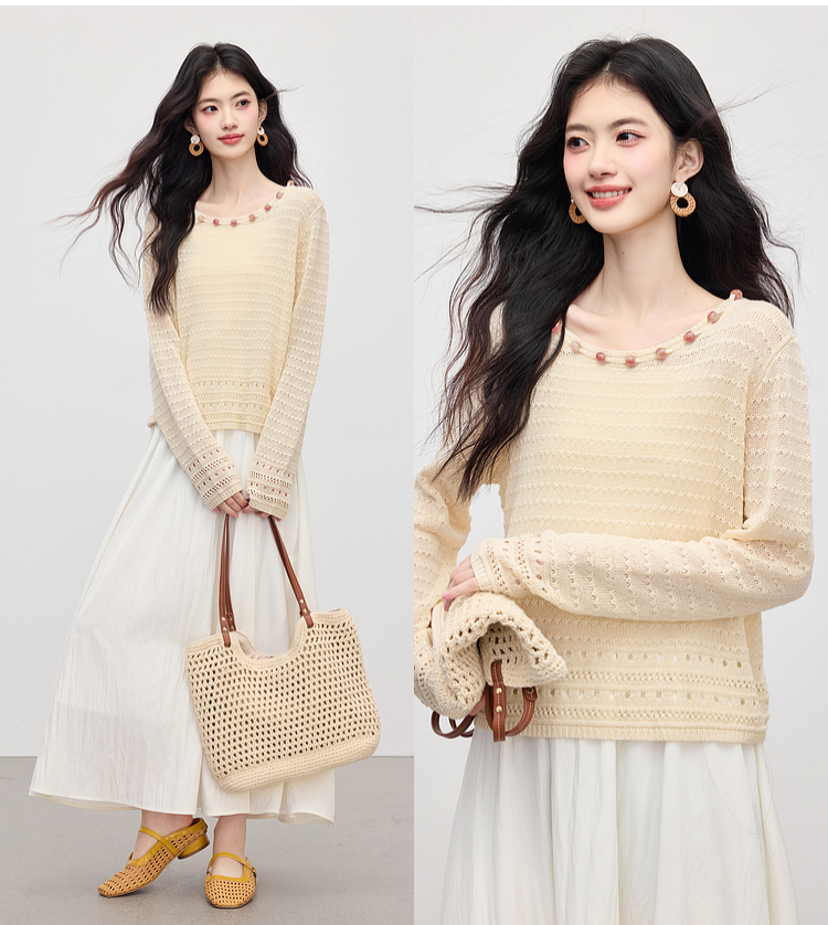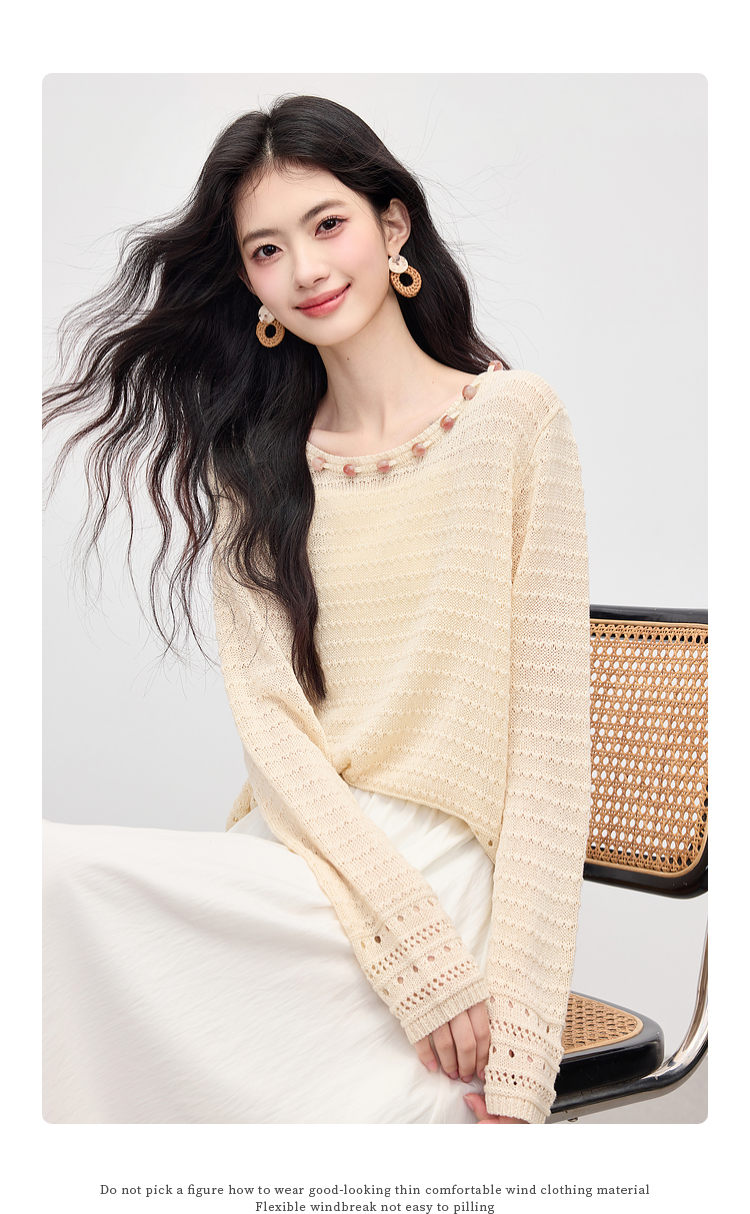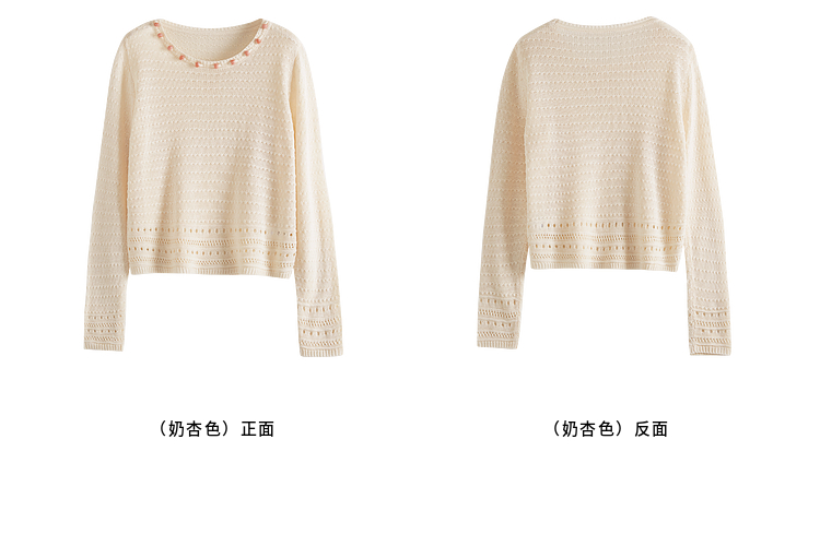 【08/12新品】熙世界法式提花镂空针织衫女2025年早秋新款气质串珠圆领罩衫上衣