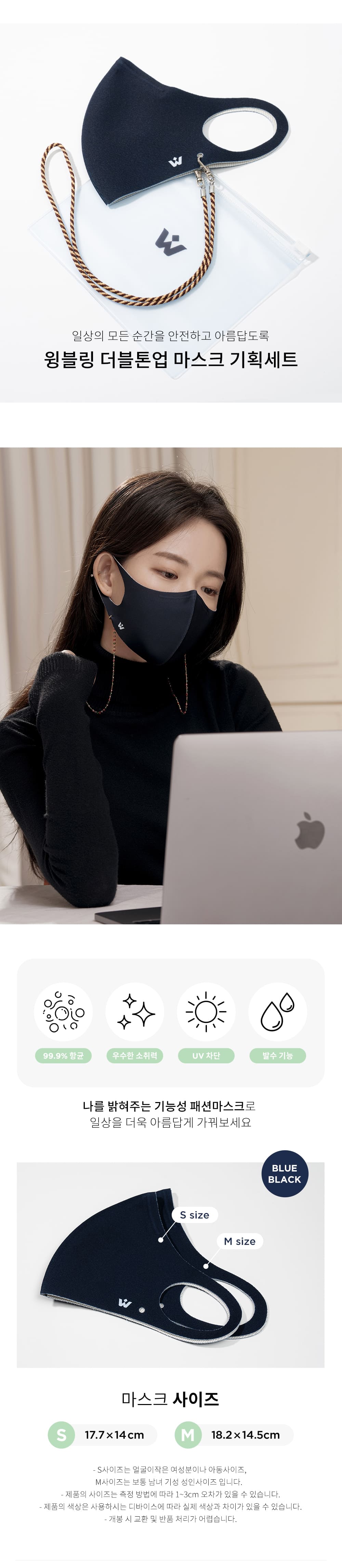 韩国wing bling时尚面罩可水洗+链子套装s/m号Olive YoungJPY带授权招加盟代理