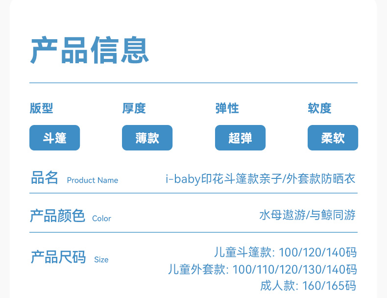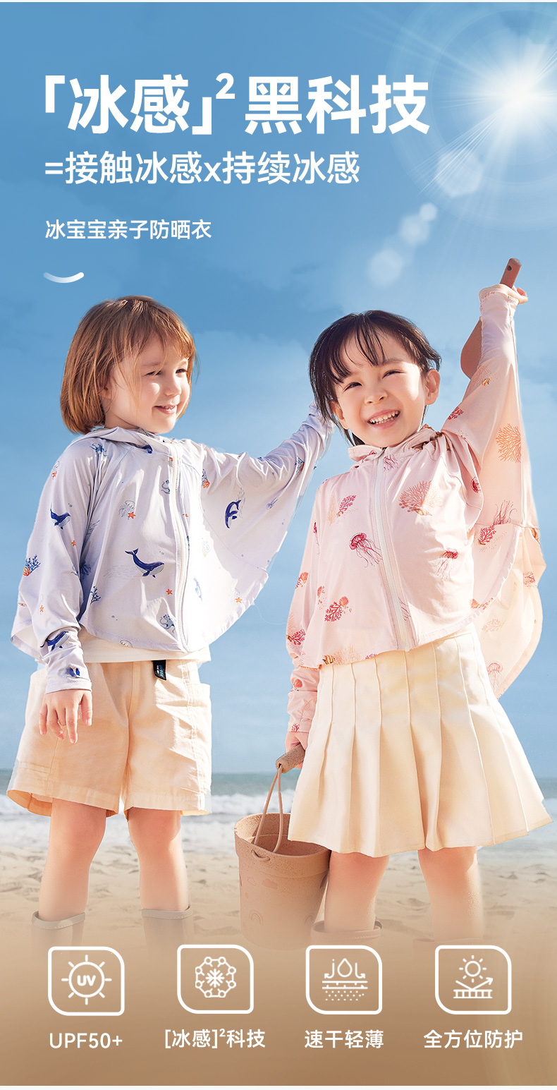 【秒杀】ibaby×outlast太空科技恒温夏季清爽冰感儿童印花斗篷款/中长款防晒衣防紫外线亲子款