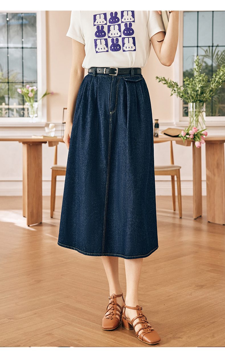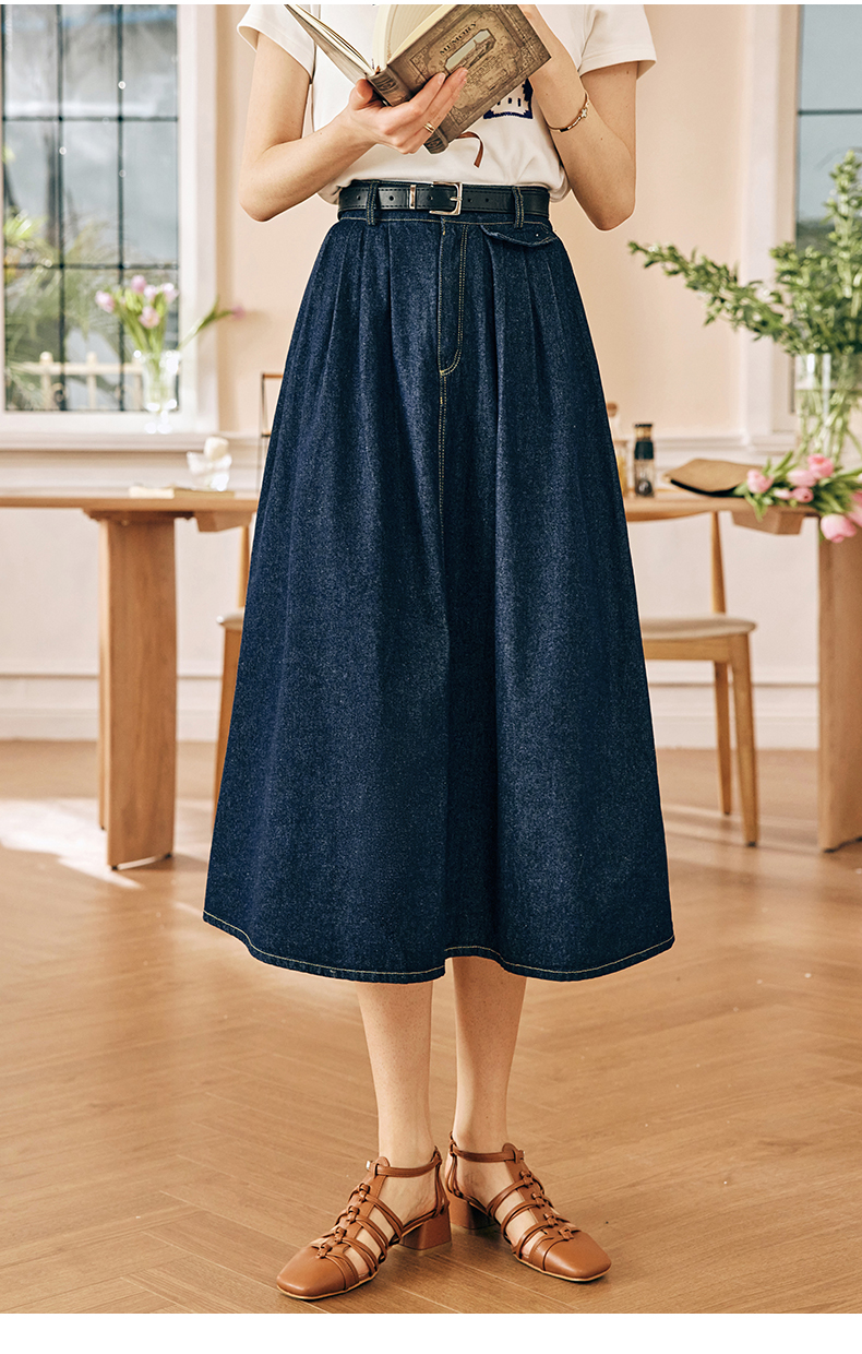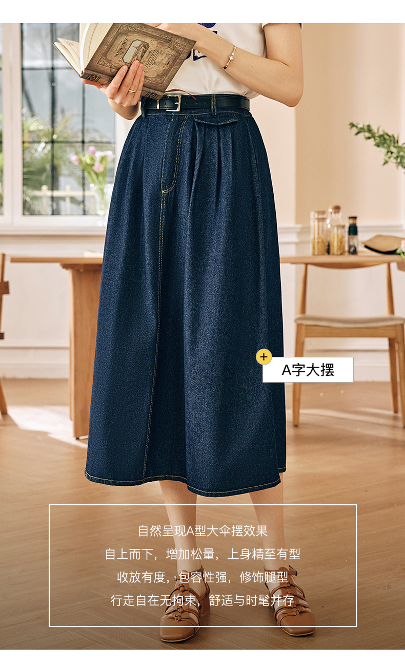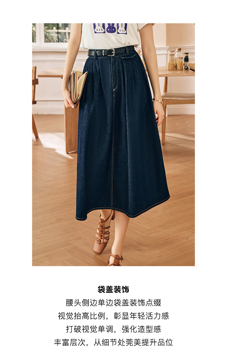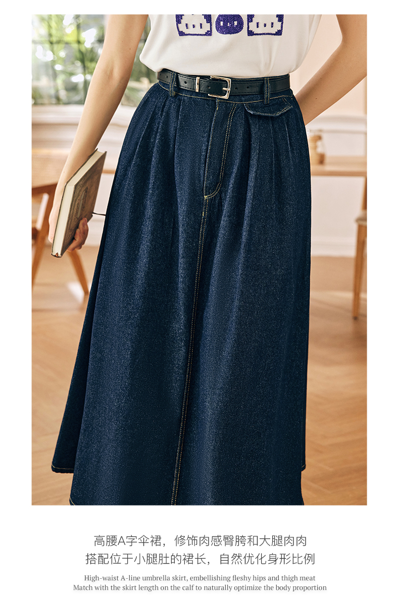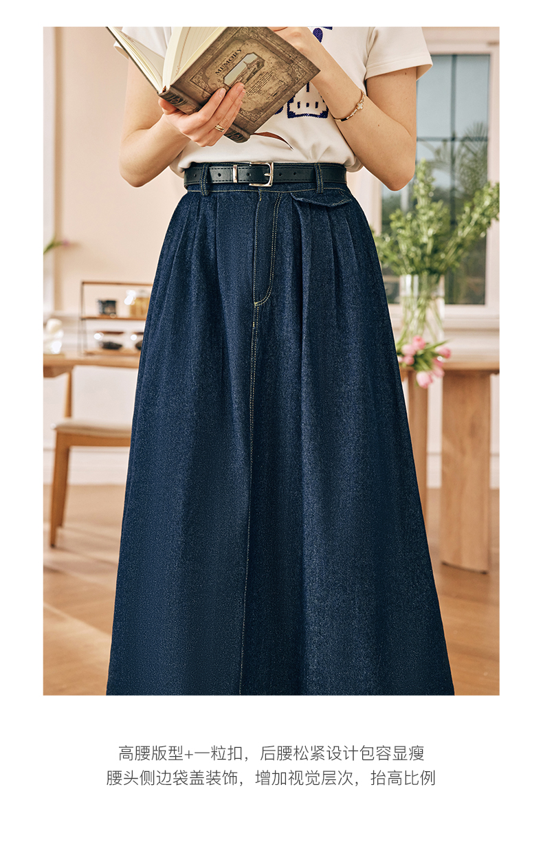 OLrain欧芮儿法式牛仔半身裙女春季2023新款高腰显瘦A字大摆伞裙