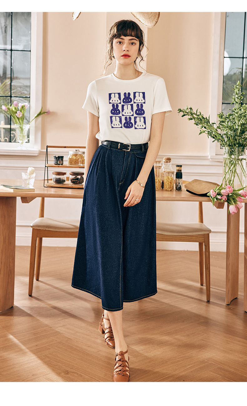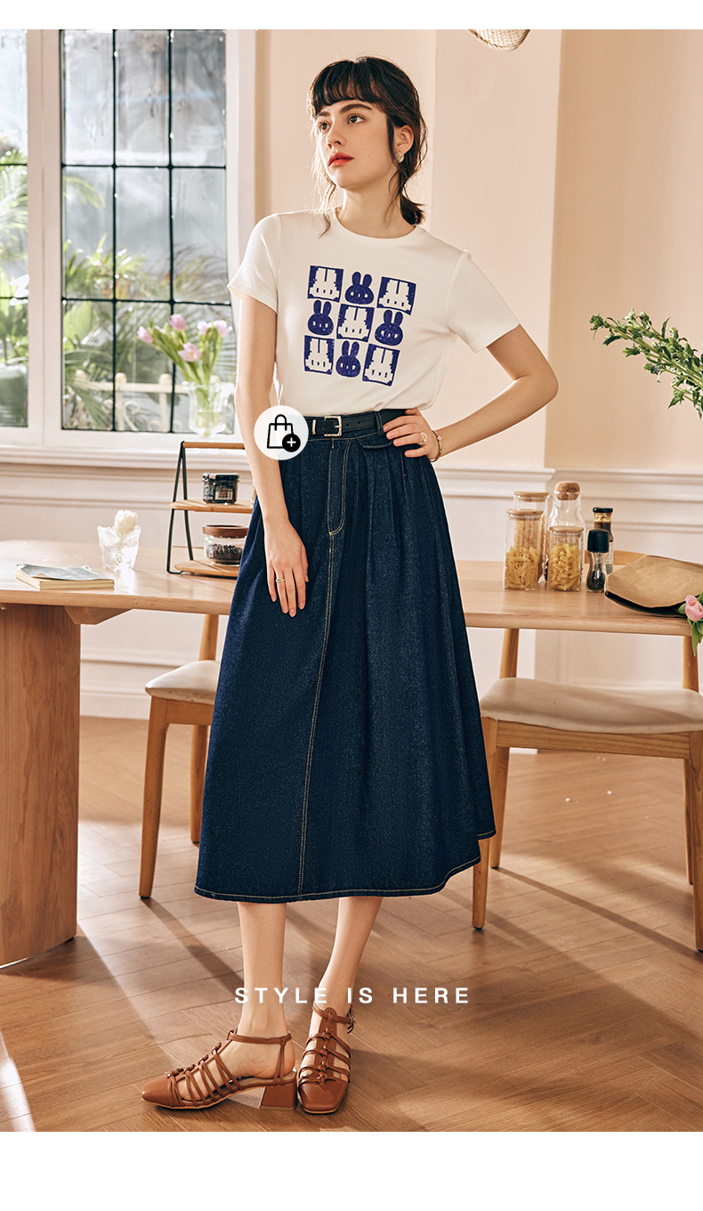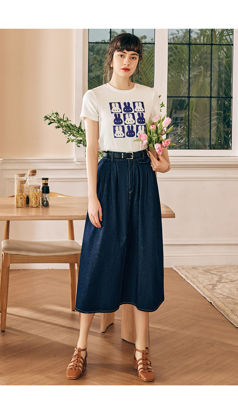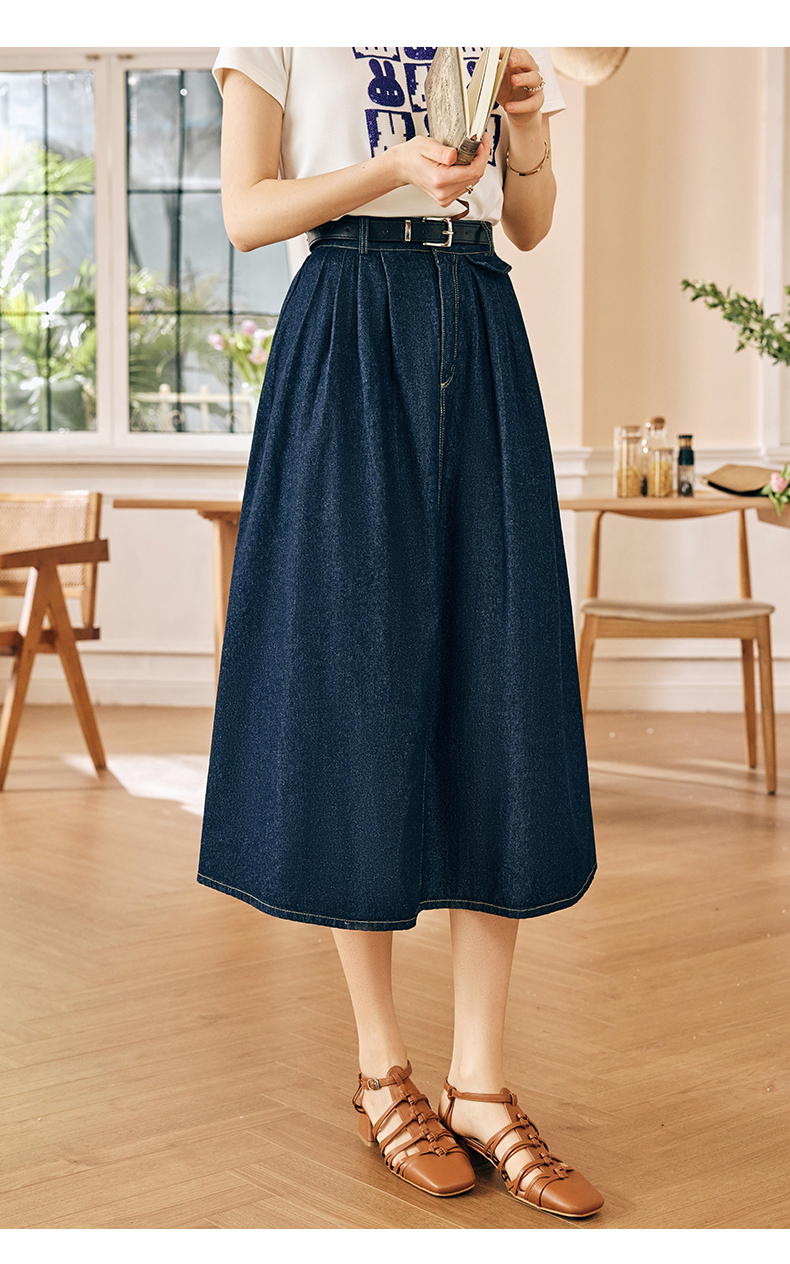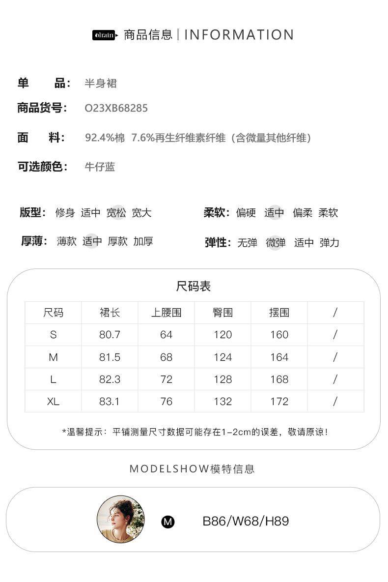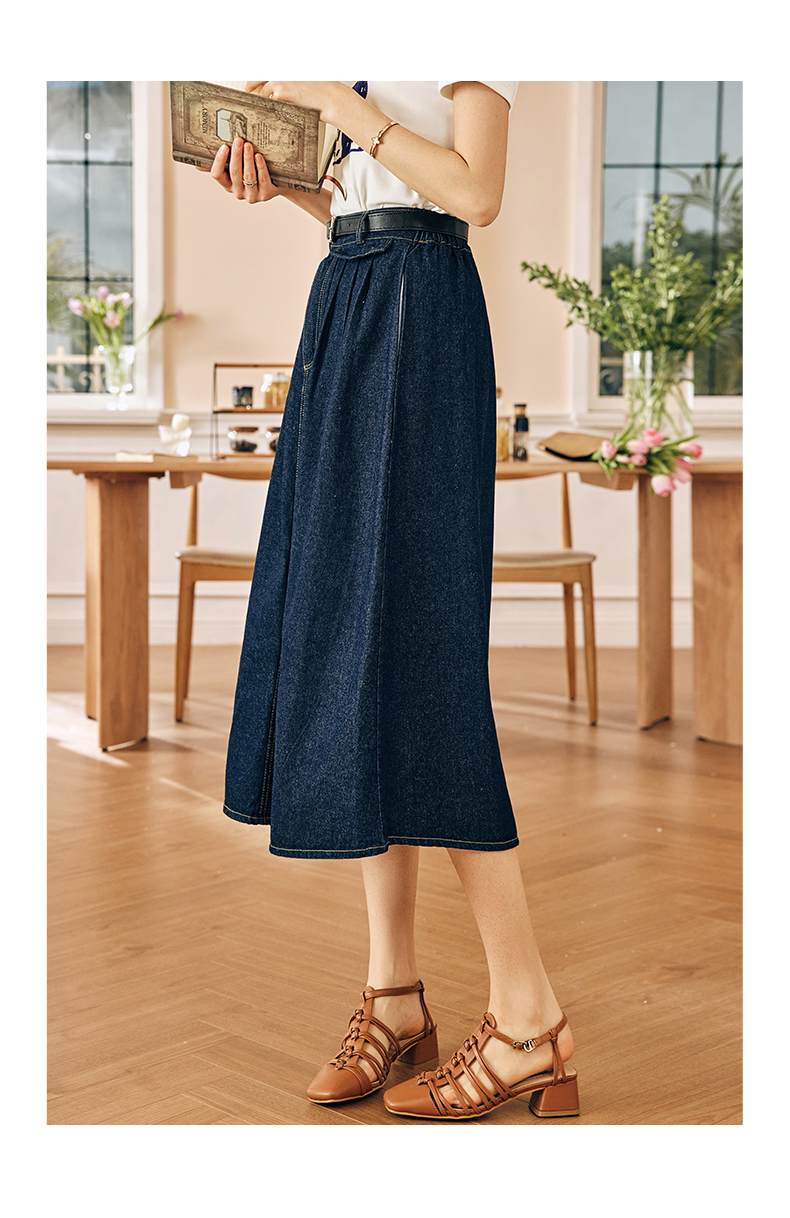 OLrain欧芮儿法式牛仔半身裙女春季2023新款高腰显瘦A字大摆伞裙