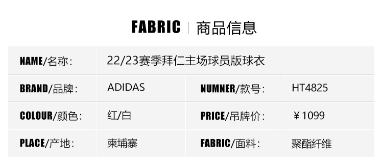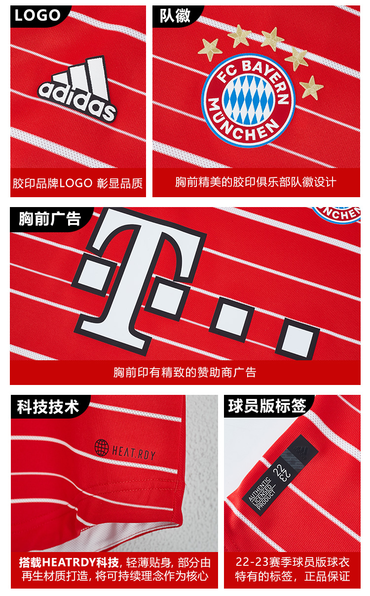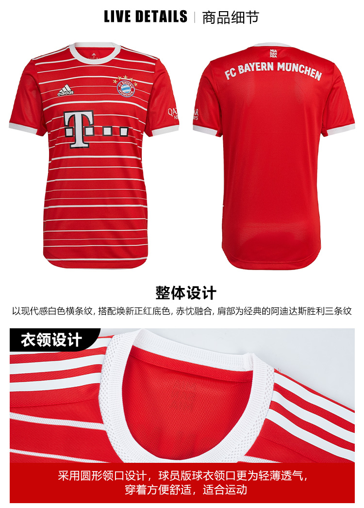 【连球员印号】SFS阿迪达斯Adidas 22-23拜仁慕尼黑主场球员版球衣短袖HT4825