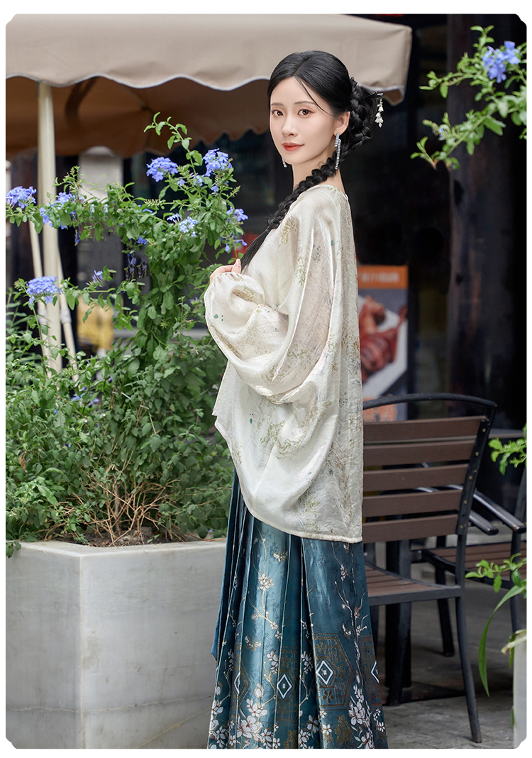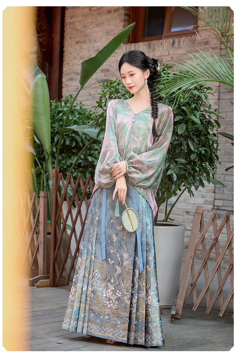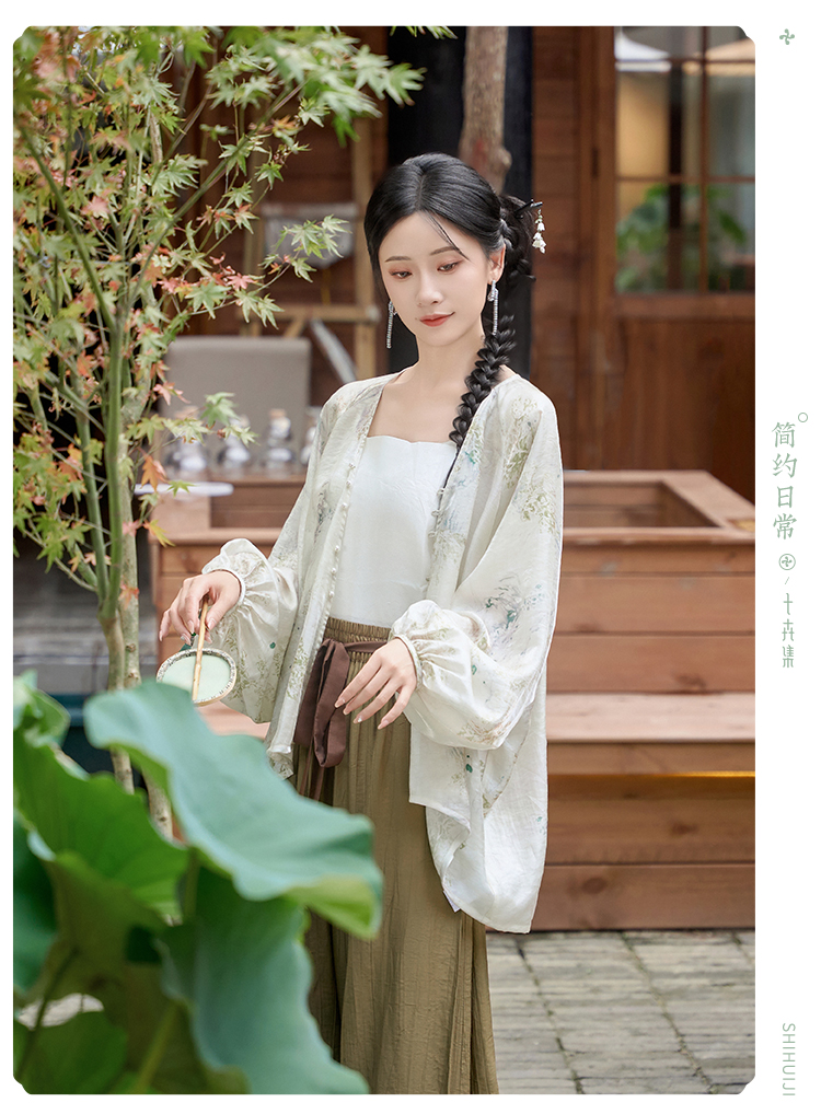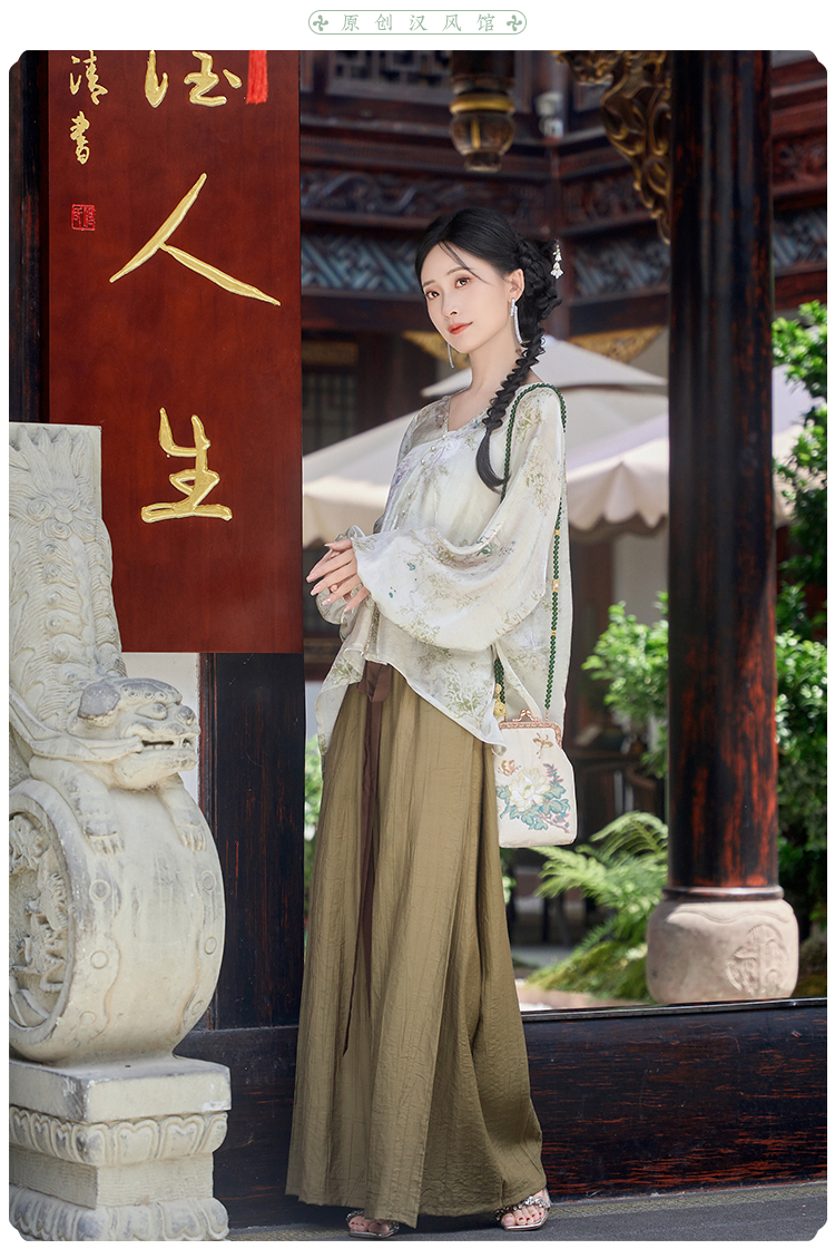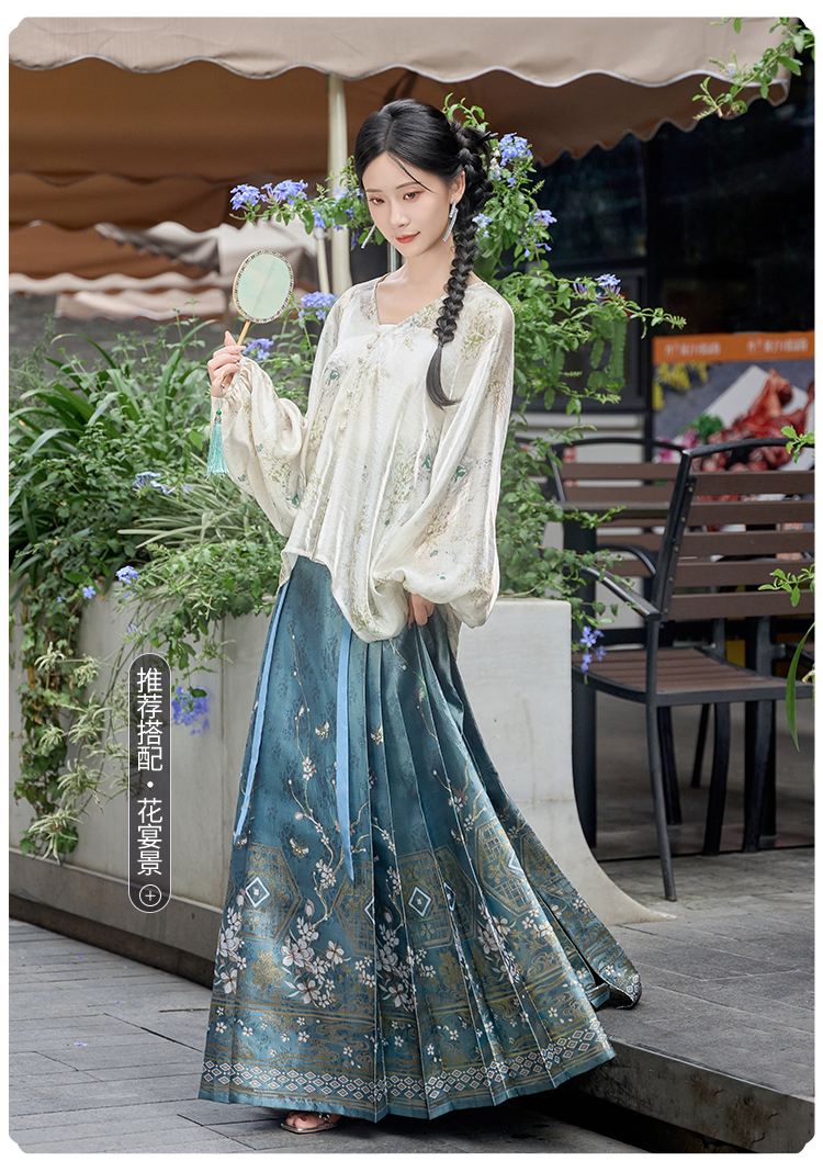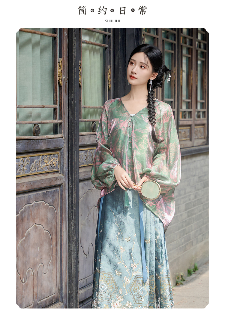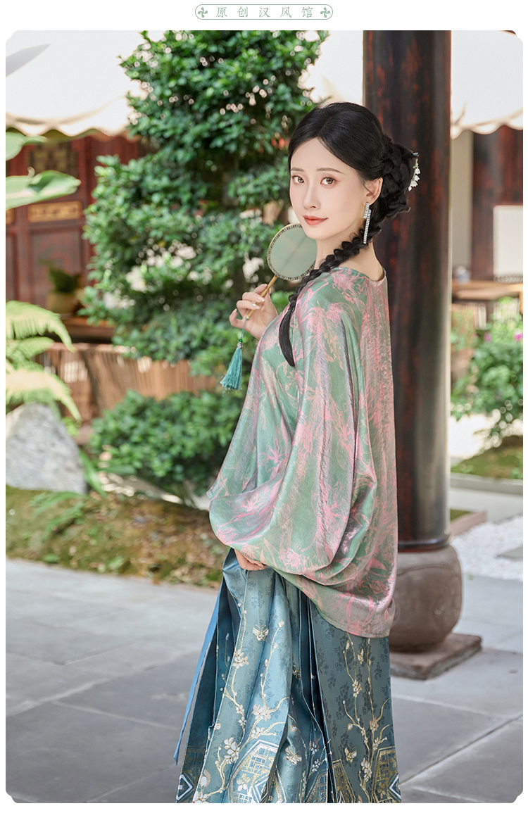 【重回汉唐清瑶】原创圆领对襟衫一片式褶裙套装明制改良汉服女装