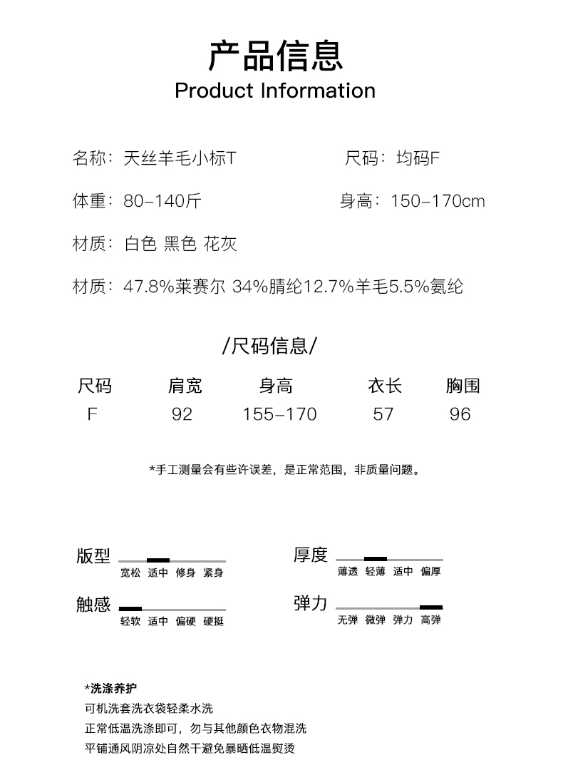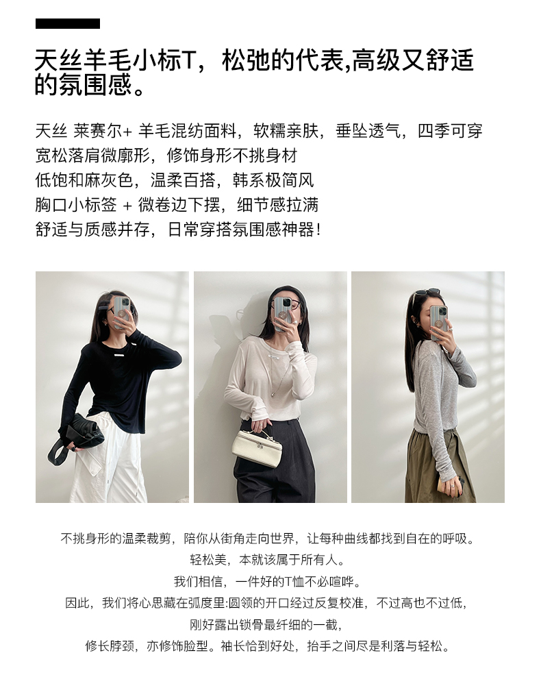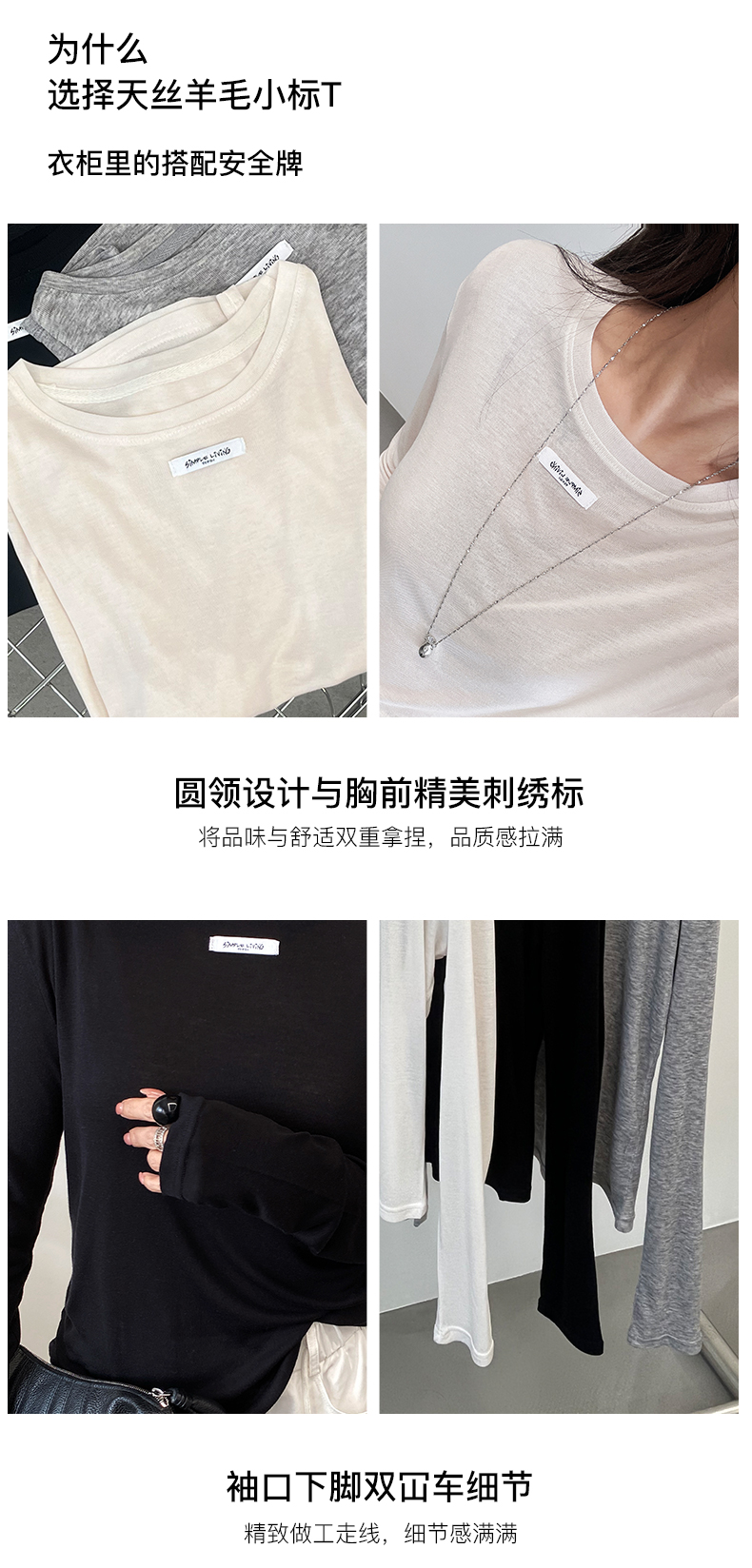 【春夏百搭天丝羊毛小标T】万能打底,极致柔软细腻!一件搞定内搭外穿!经典净版款式,简约休闲!【Bimilie-X】