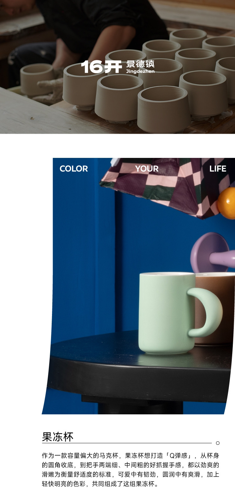 ◤果冻杯◢ 16开薄荷白桃色高级感水杯咖啡杯马克杯陶瓷杯子